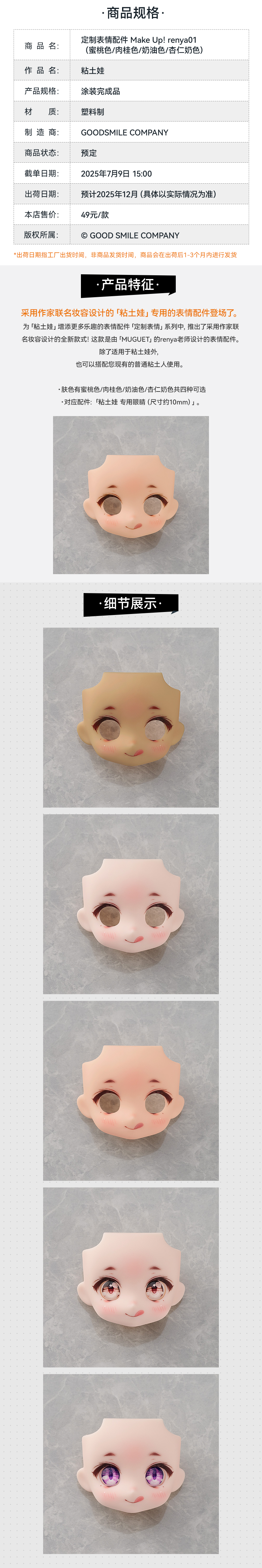 【GSC预售定金】定制表情配件 Make Up!renya01(蜜桃色/肉桂色/奶油色/杏仁奶色)