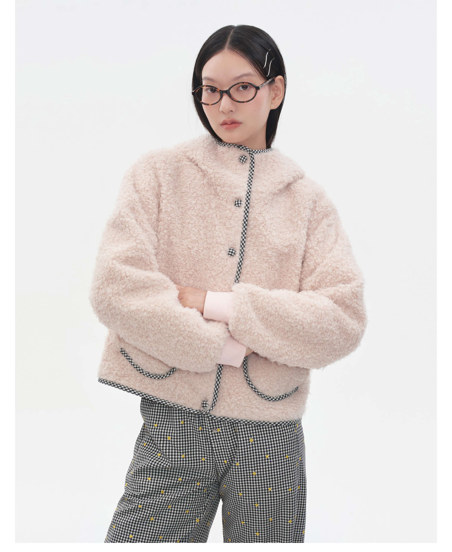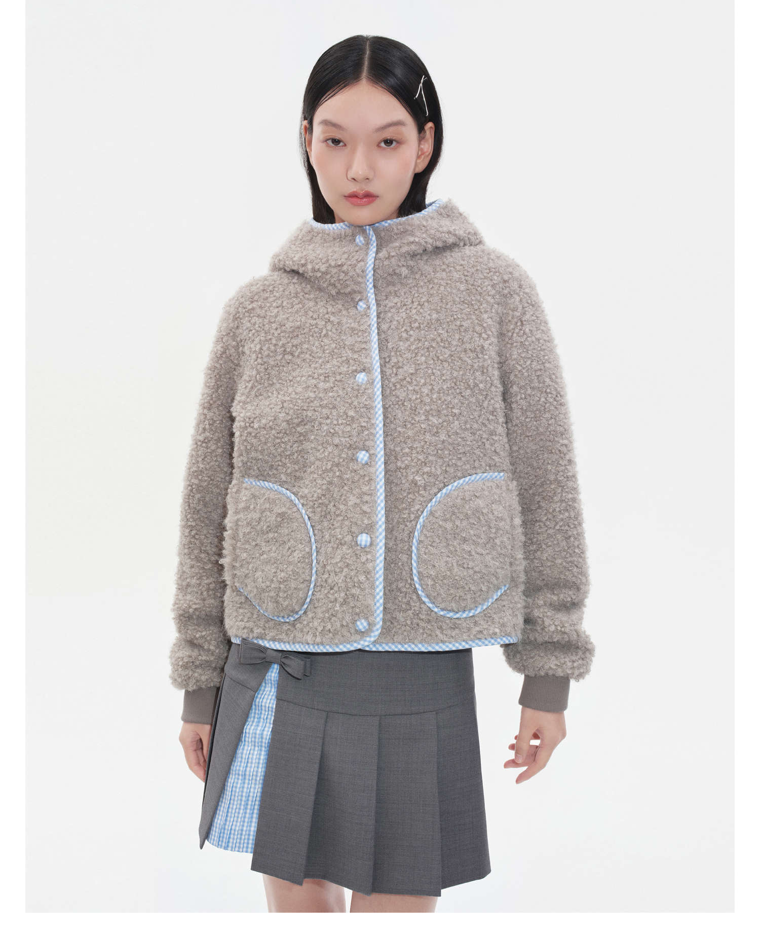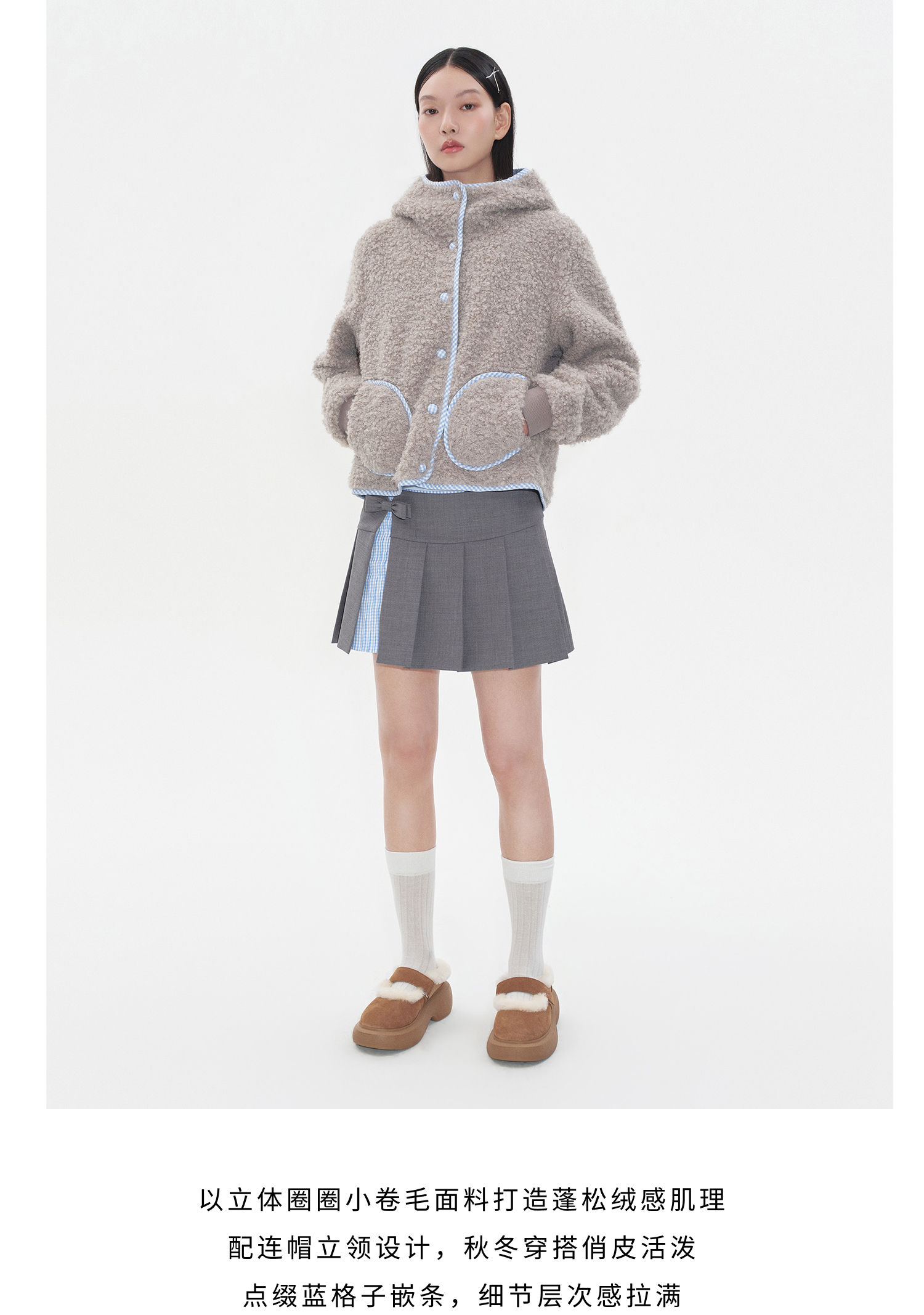 HERLIAN 2025秋季新品女士圈圈毛格纹拼接设计外套