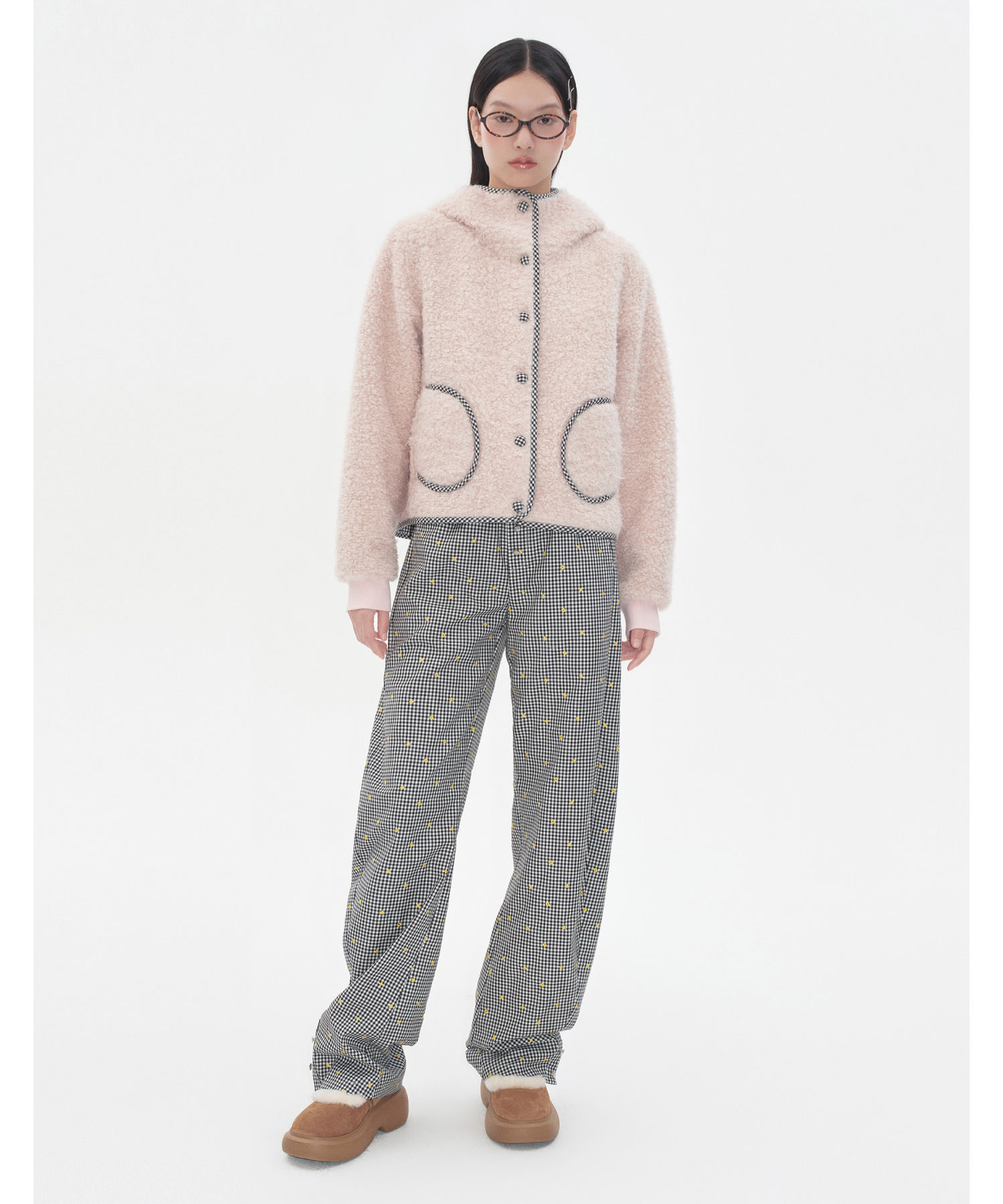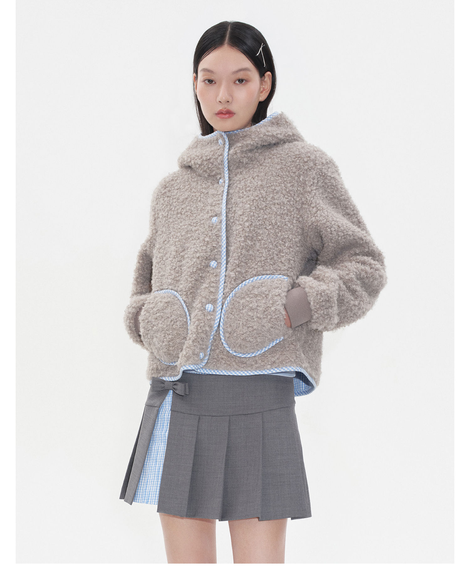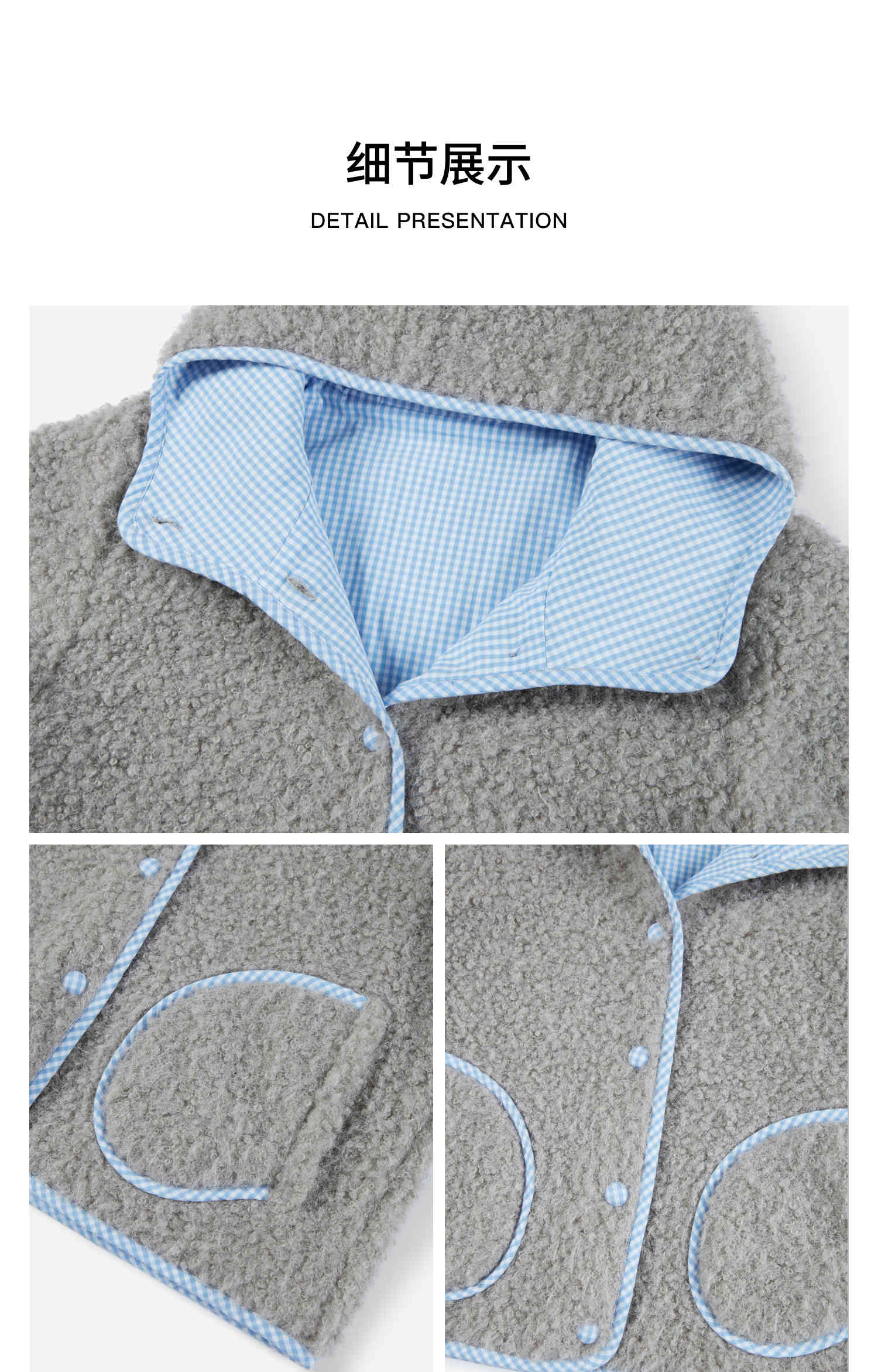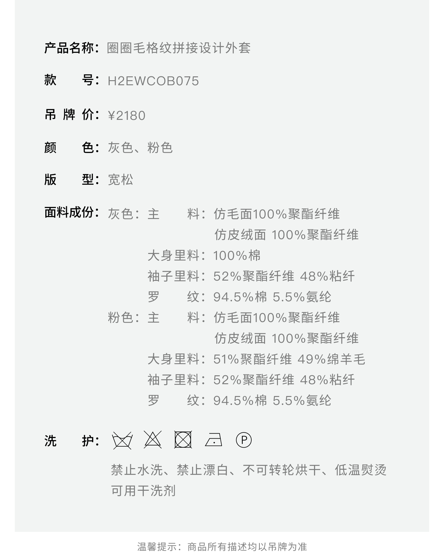 HERLIAN 2025秋季新品女士圈圈毛格纹拼接设计外套