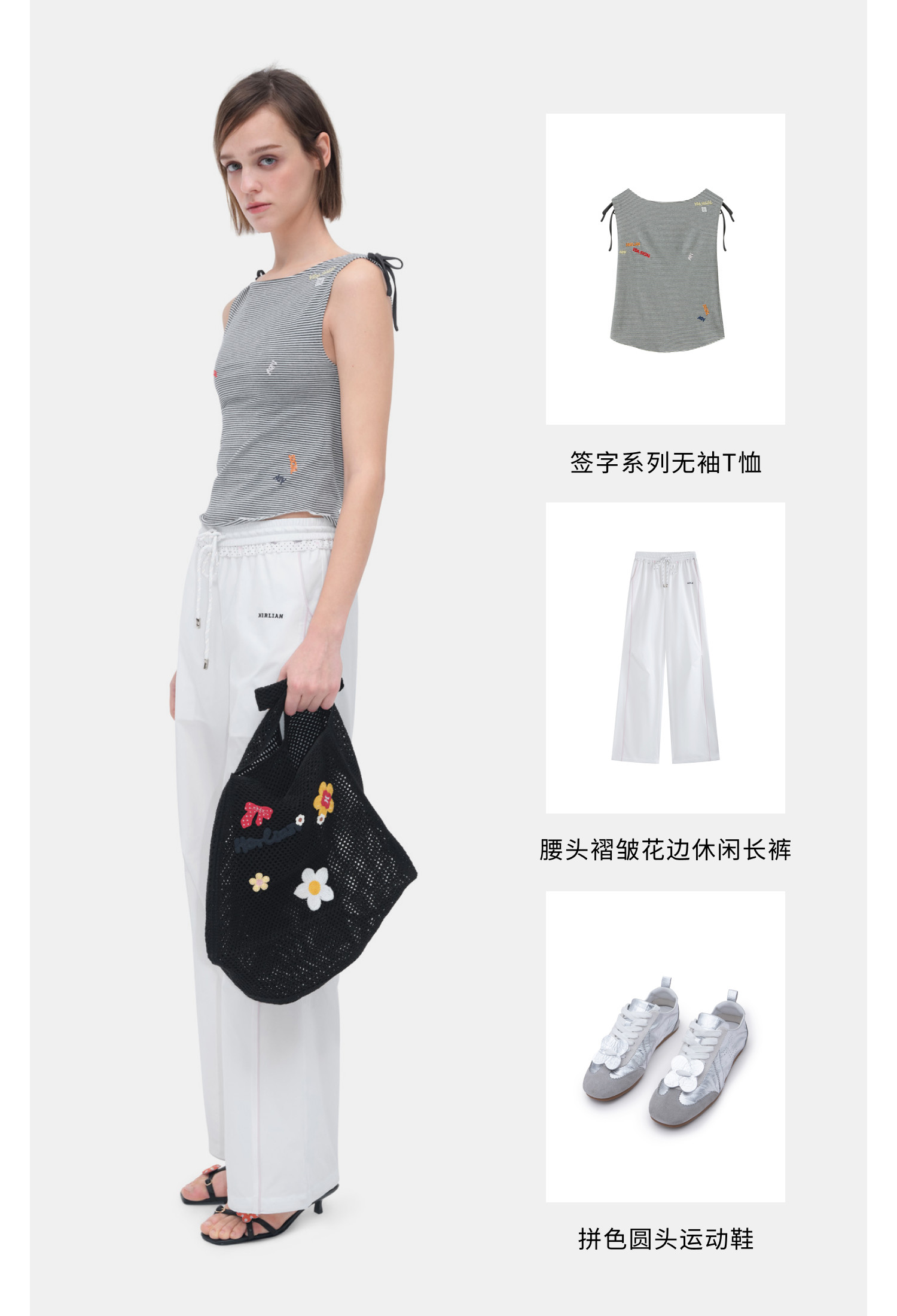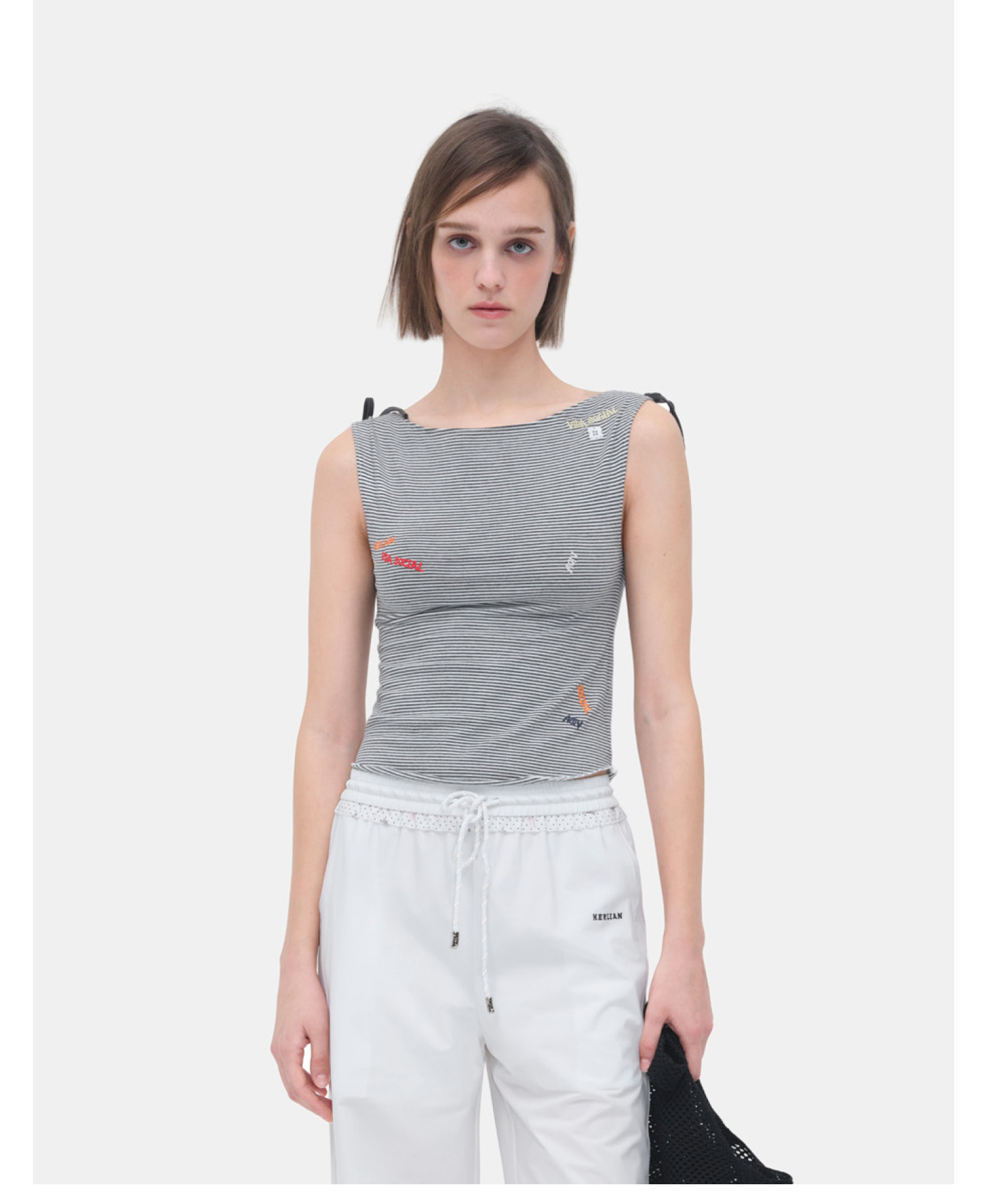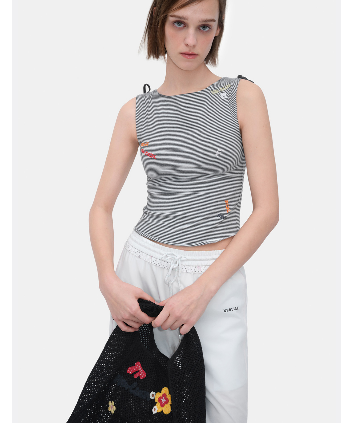 HERLIAN 2026年夏季新品签字系列条纹女士无袖绑带百搭时尚T恤