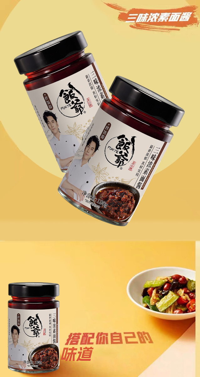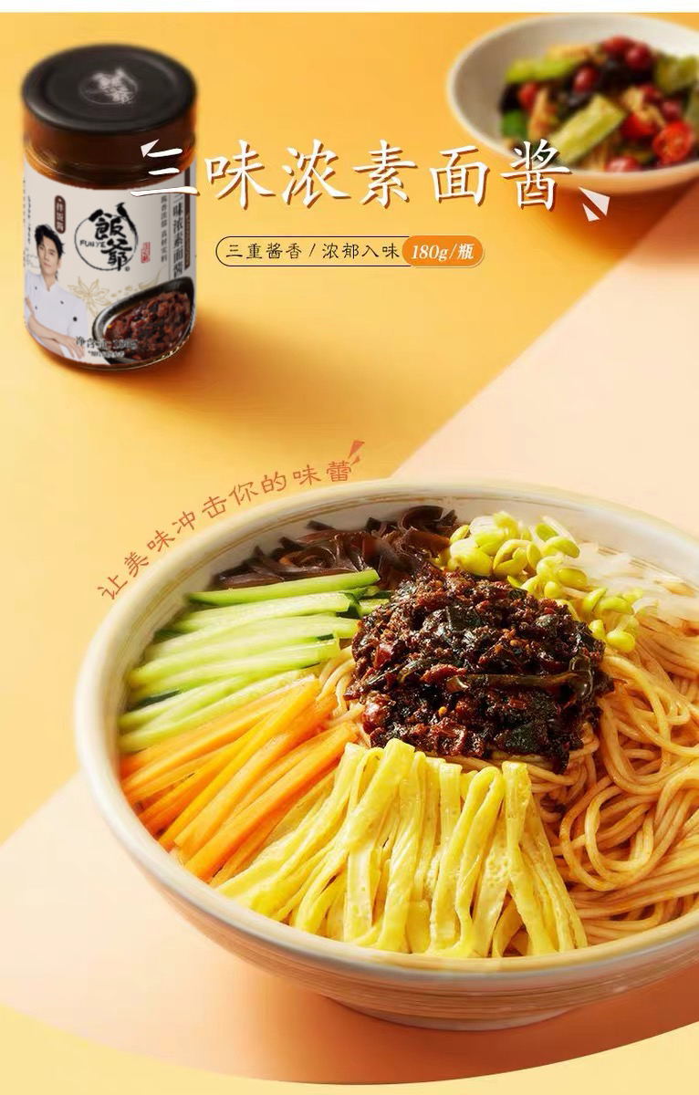 心选丨饭爷三味浓素面酱180g*3瓶拌饭拌面条 香辣调味佐餐美味食品瓶装