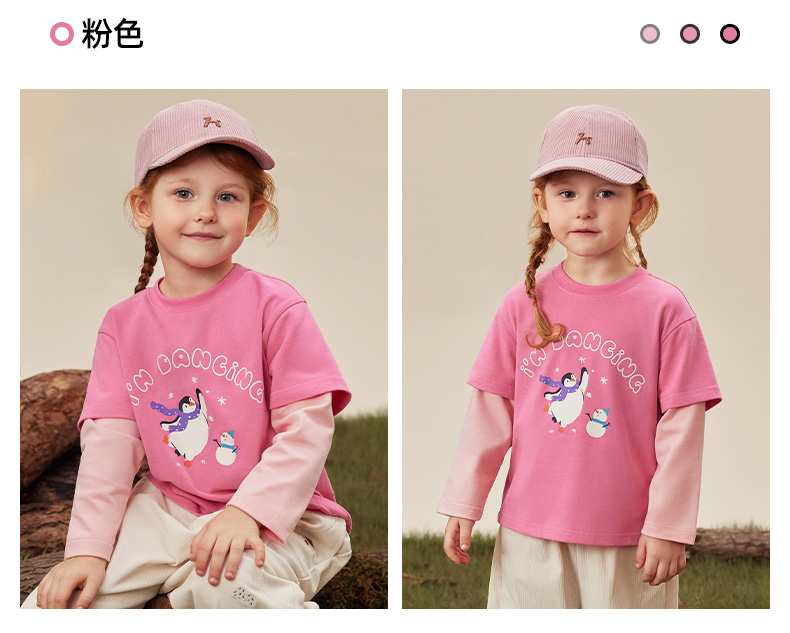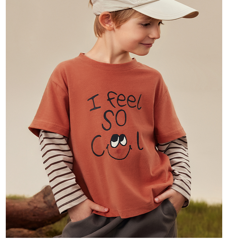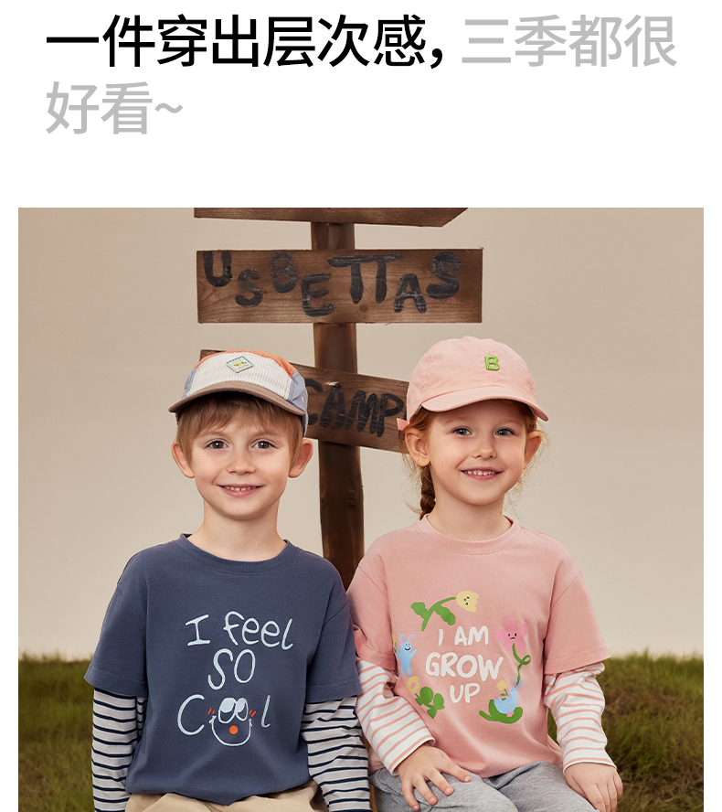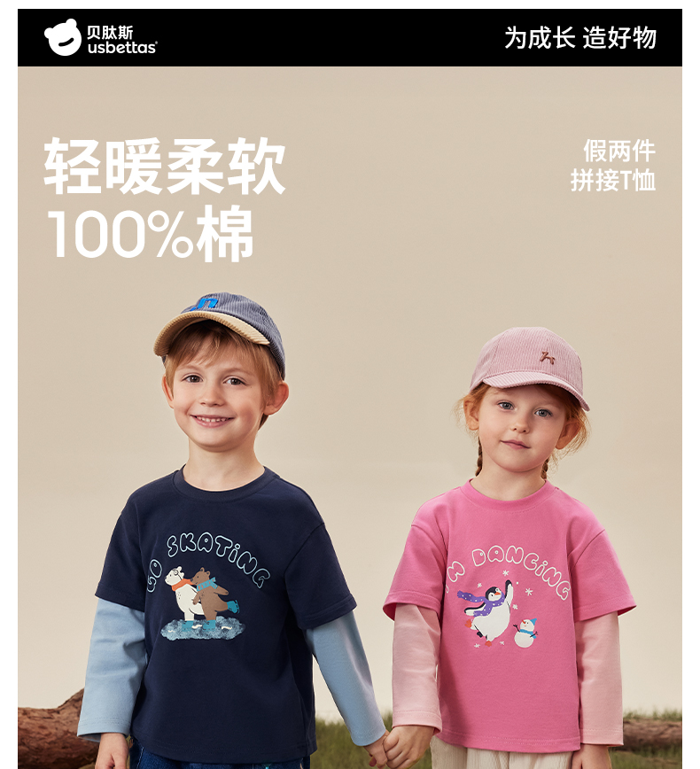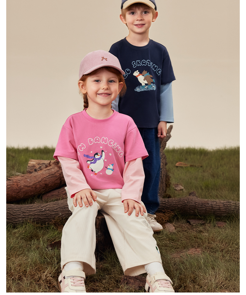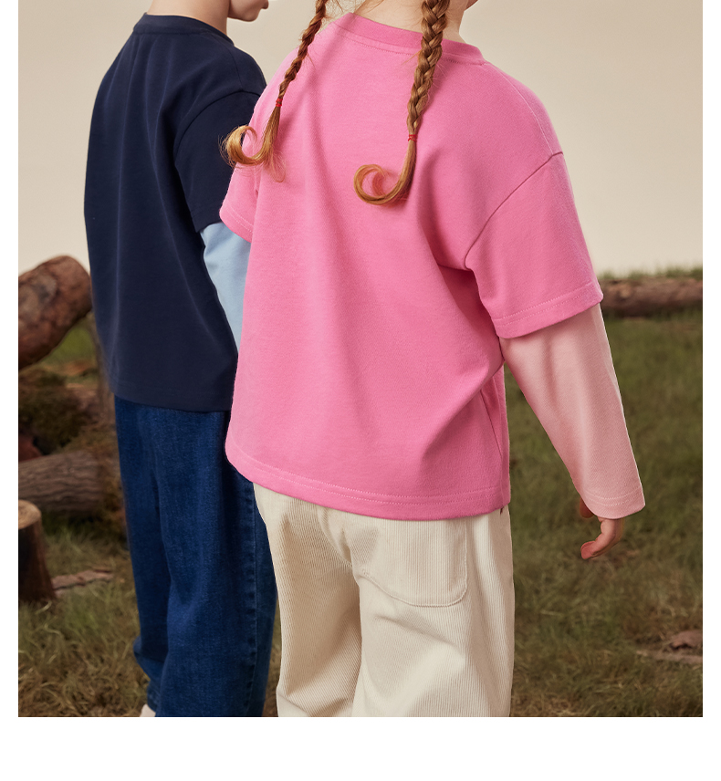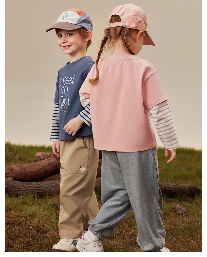 贝肽斯儿童长袖t恤2025秋季新款男女童假两件舒适纯棉宝宝上衣
