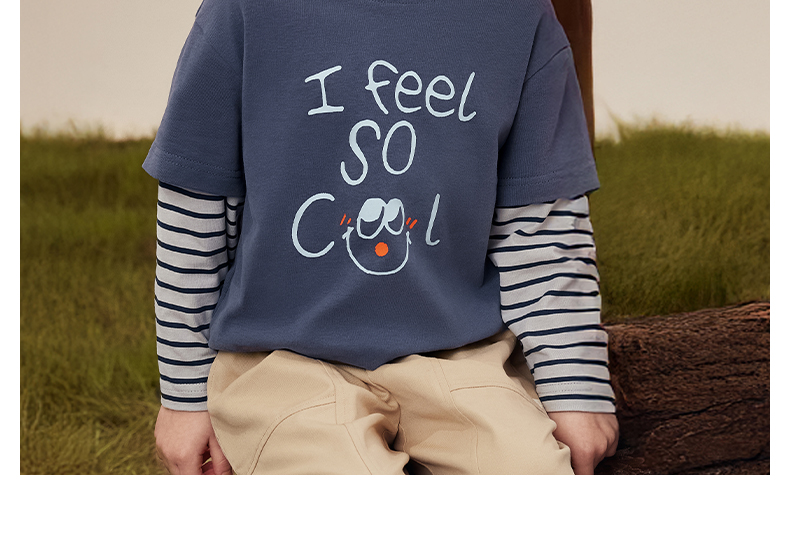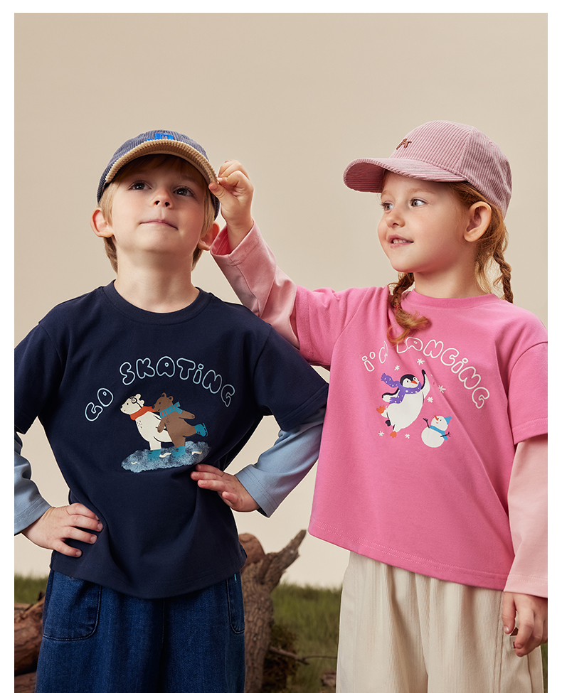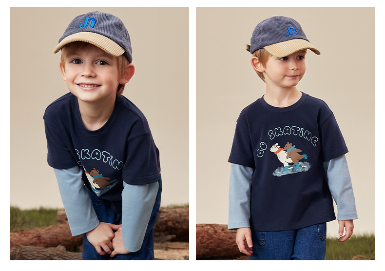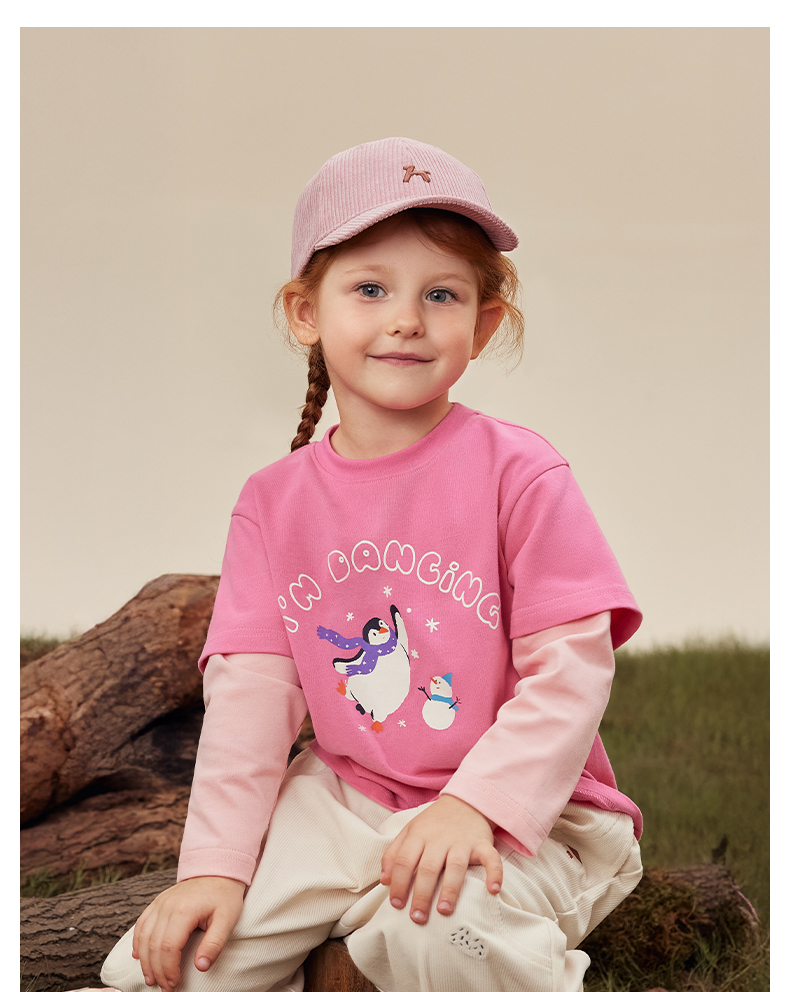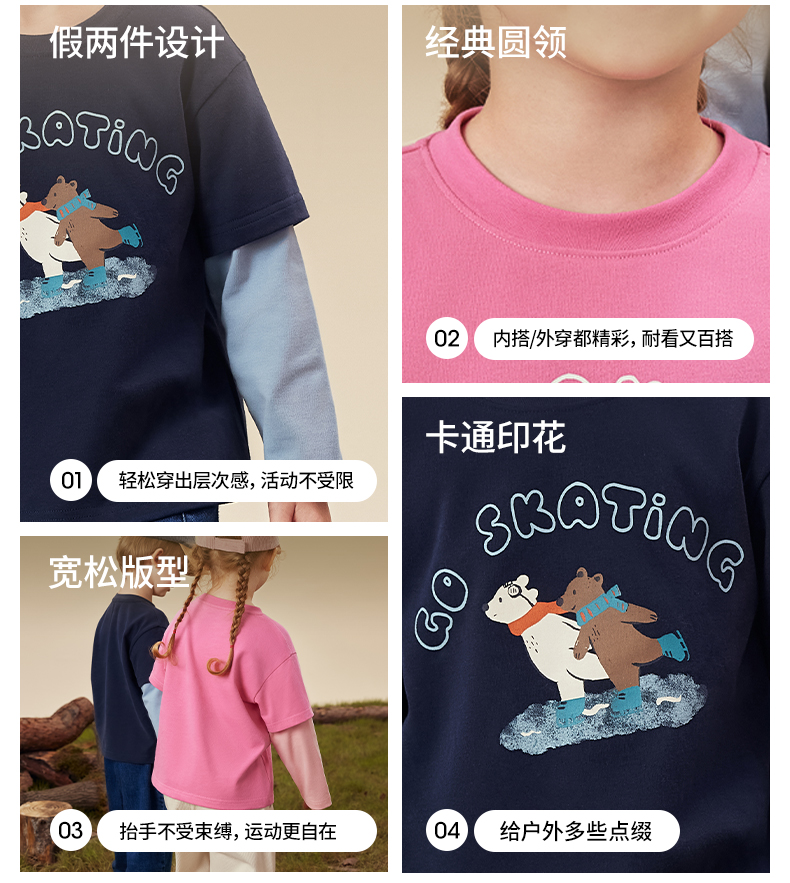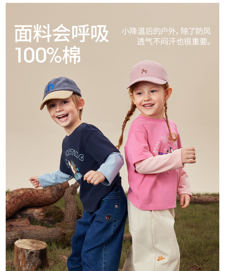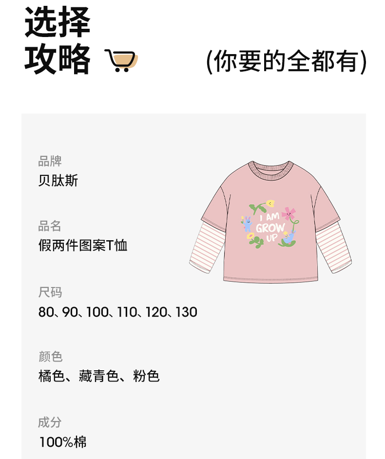 贝肽斯儿童长袖t恤2025秋季新款男女童假两件舒适纯棉宝宝上衣