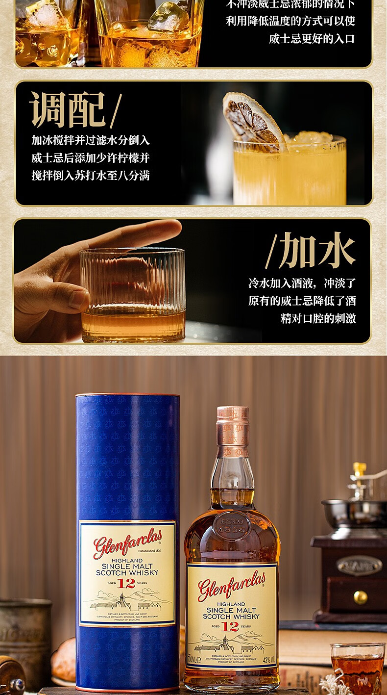 【单瓶】格兰花格12年单一麦芽威士忌 1000ml 43%vol