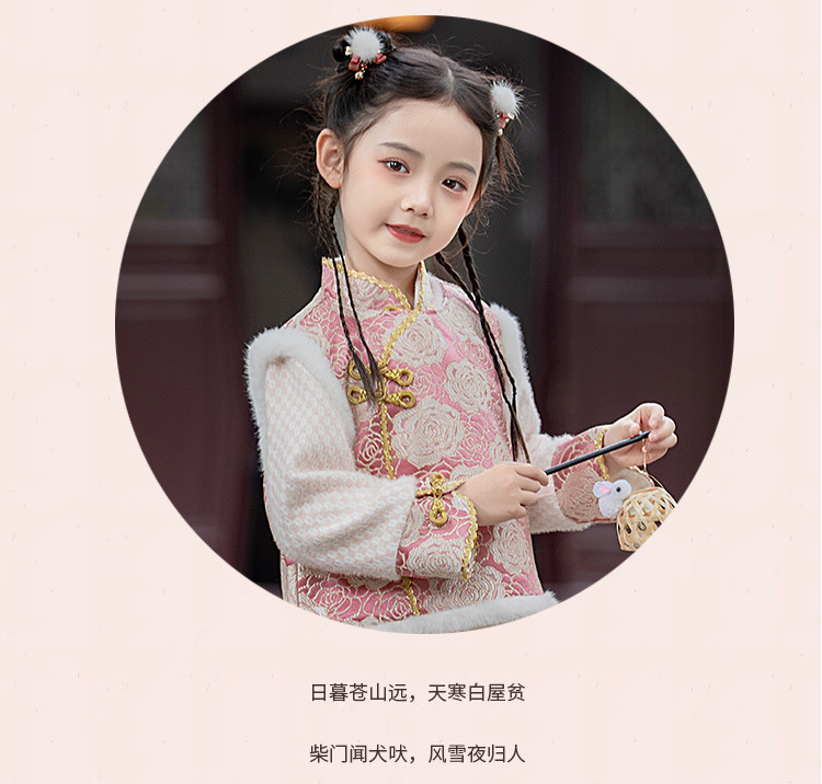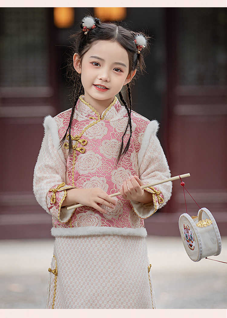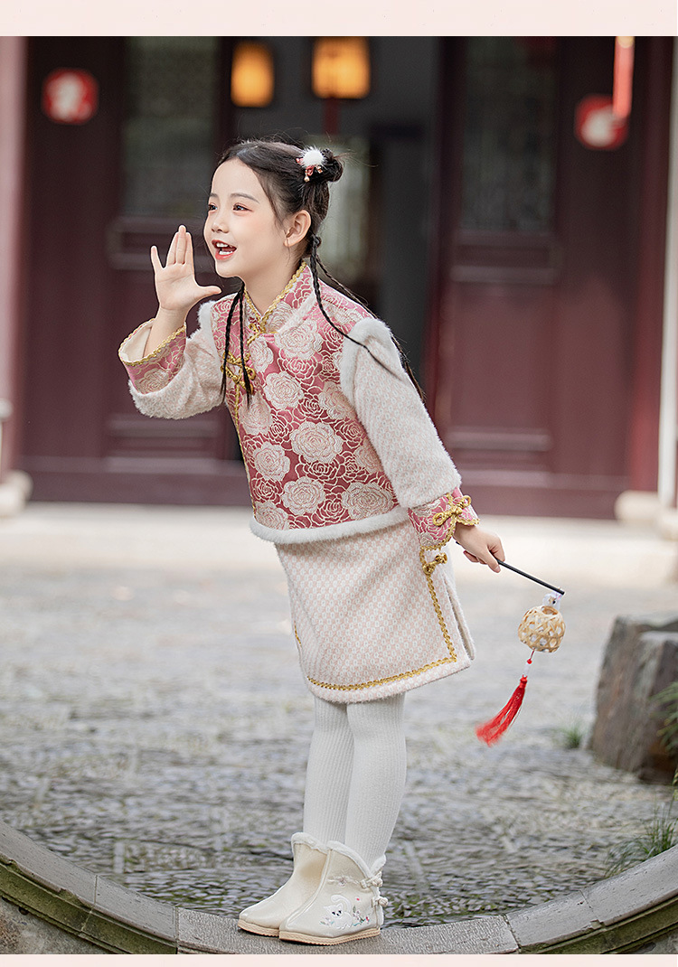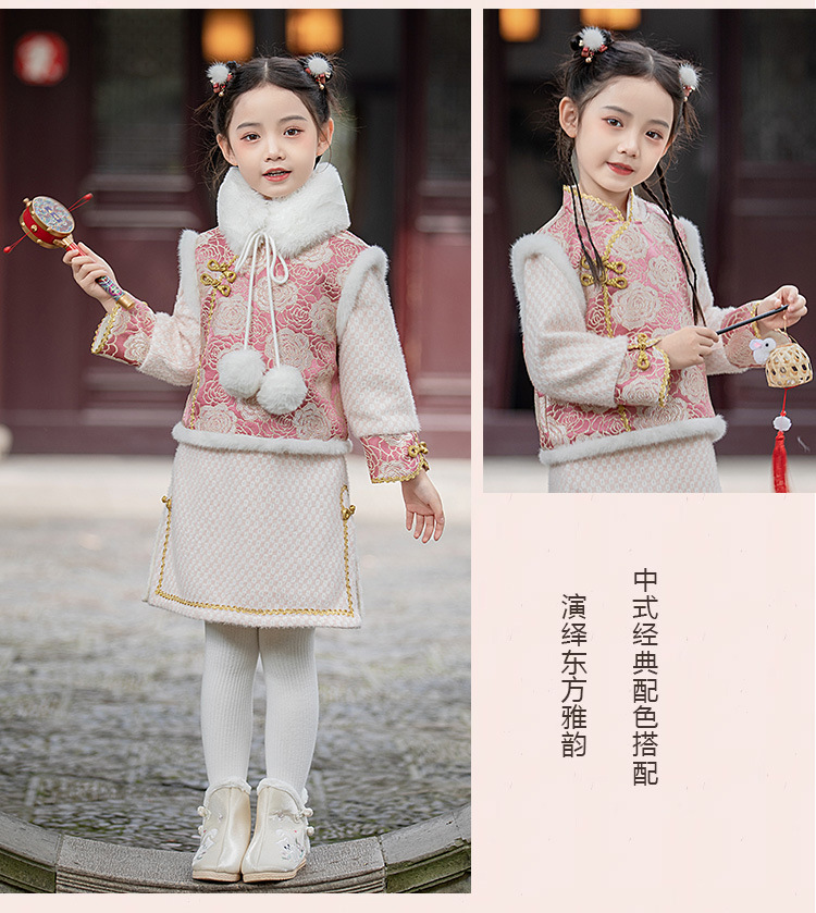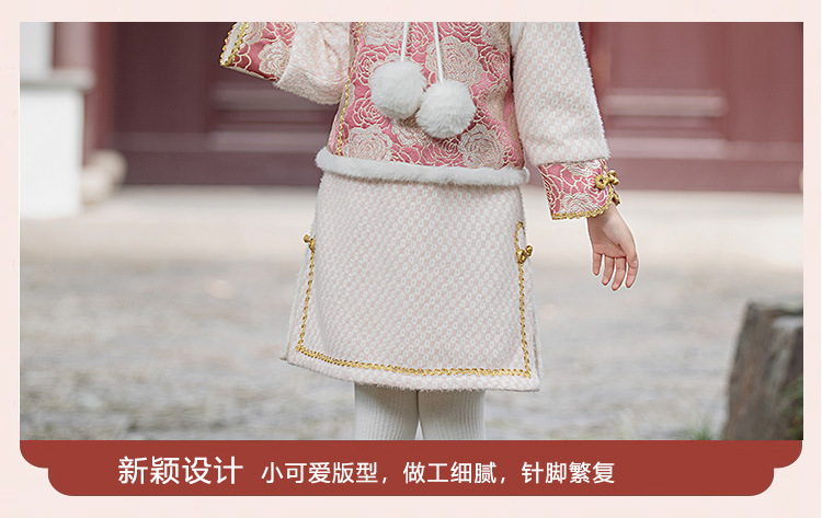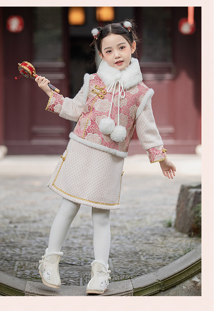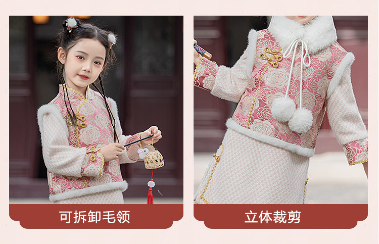 女童旗袍裙加厚汉服中国风,儿童过年唐装女孩拜年服宝宝新年装古风ZZ-DK002