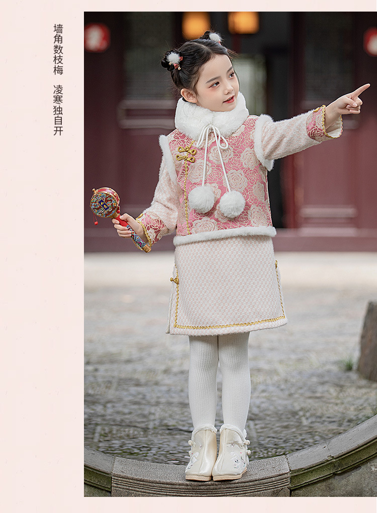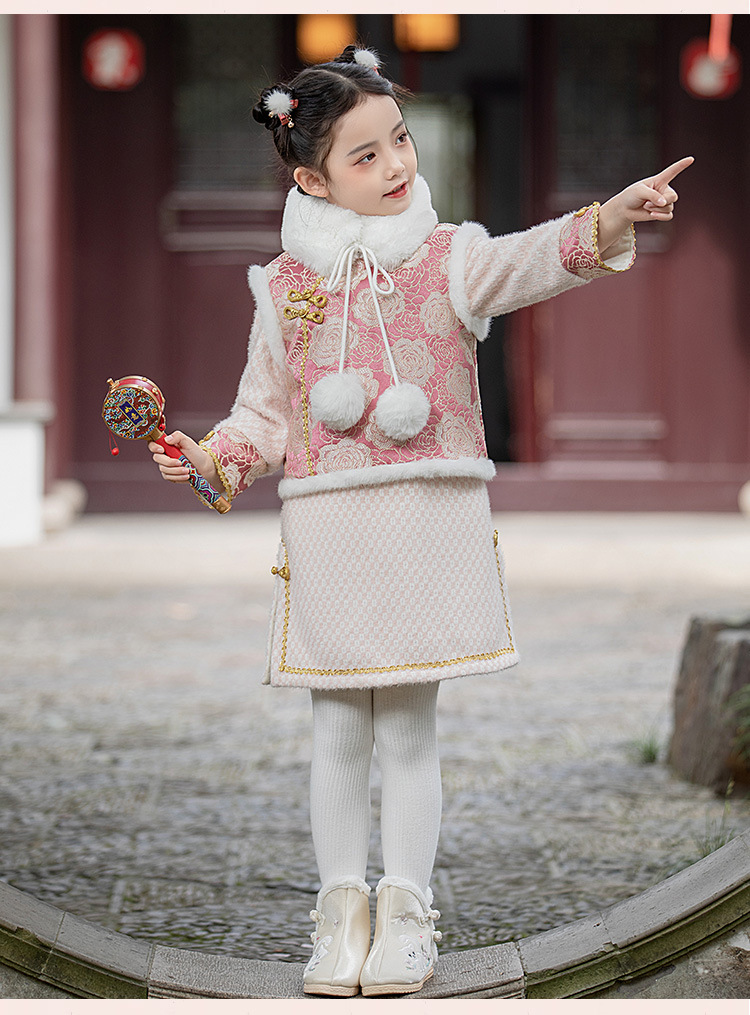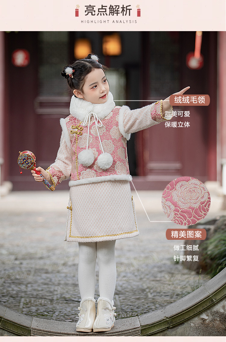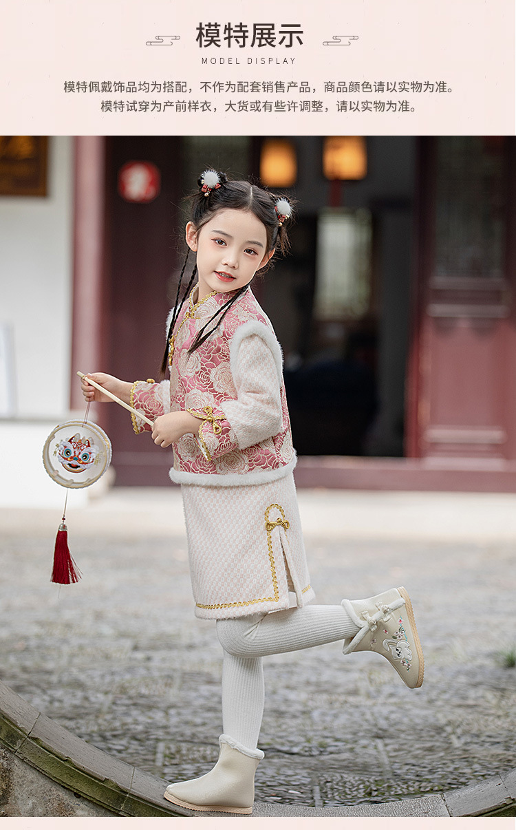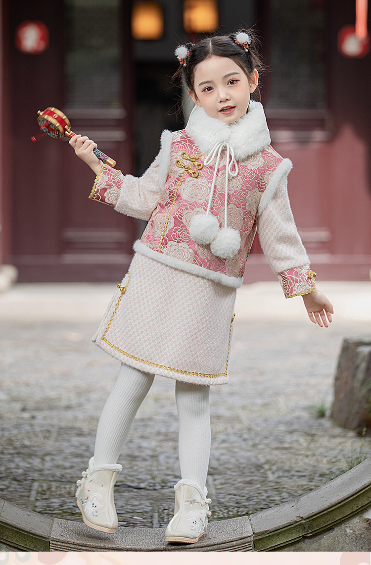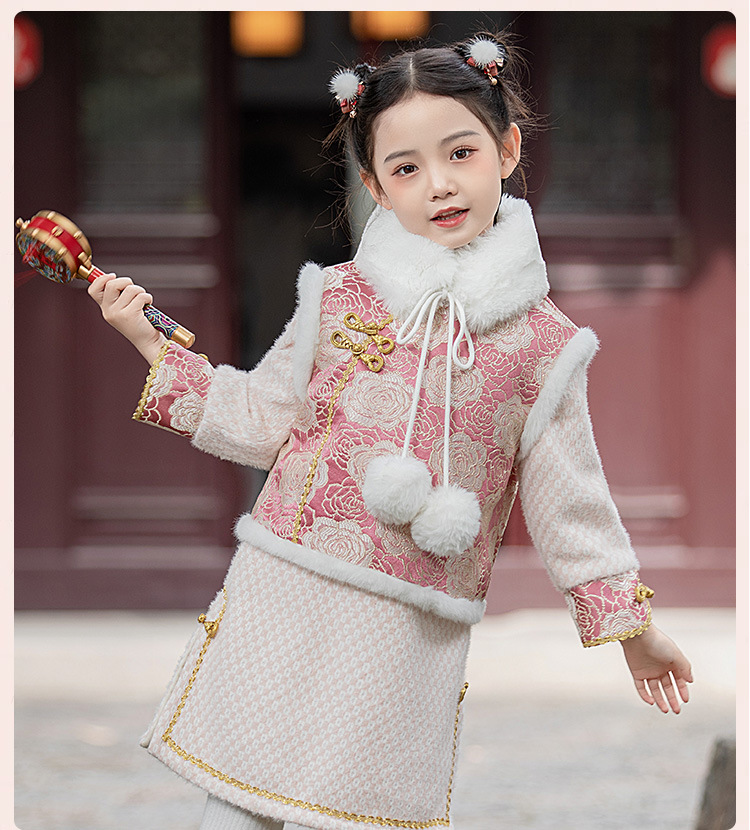 女童旗袍裙加厚汉服中国风,儿童过年唐装女孩拜年服宝宝新年装古风ZZ-DK002