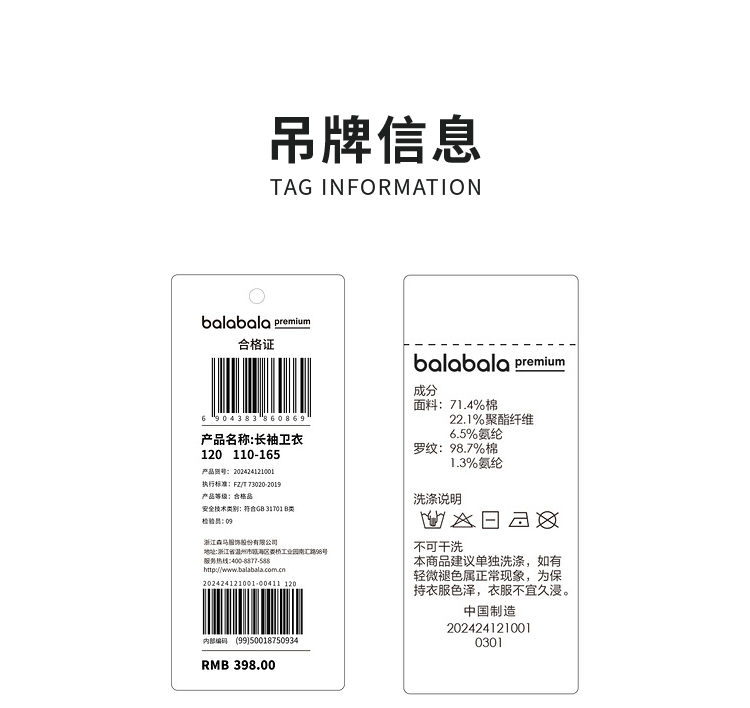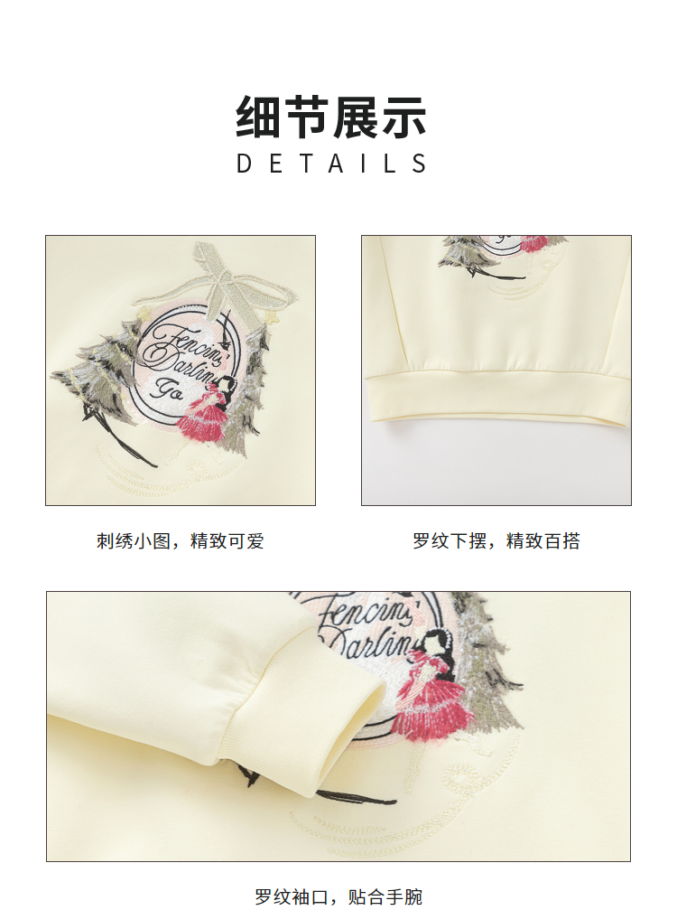 【premium】巴拉巴拉高端线冬季圆领卫衣落肩立体刺绣百搭上衣女