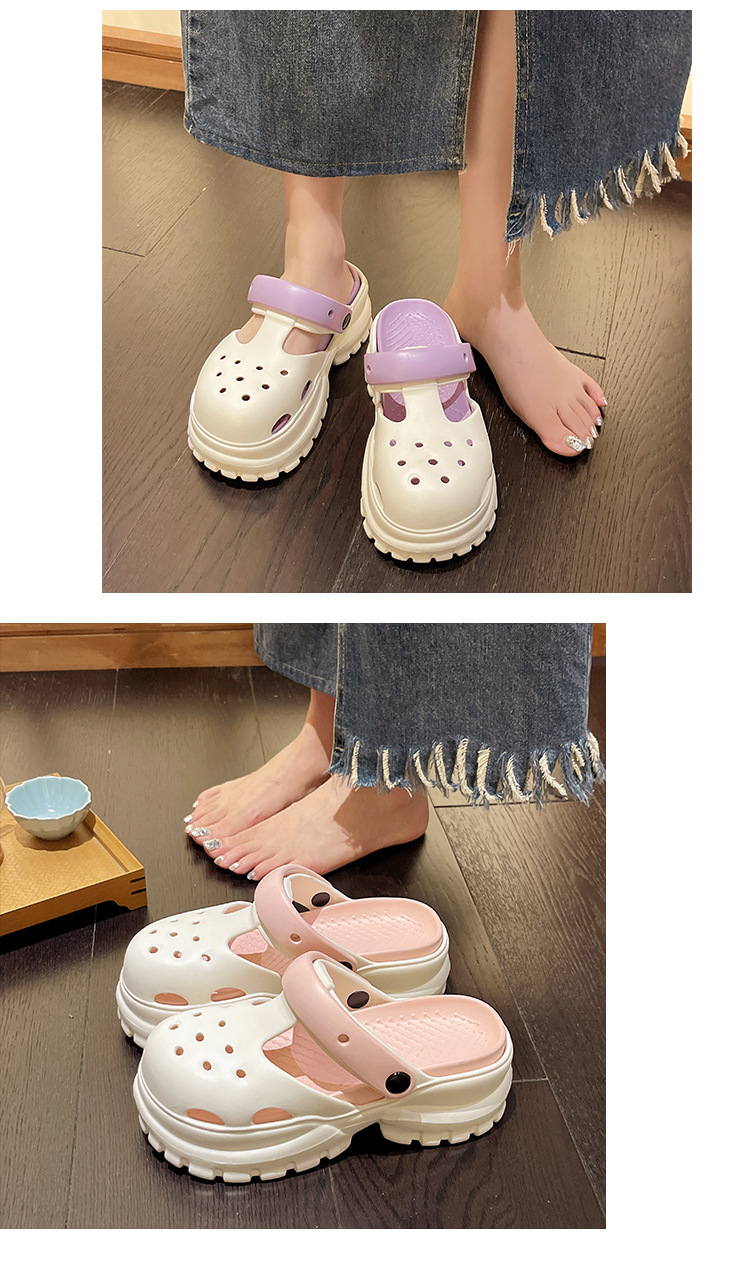 【可甜可酷!日常通勤】新款时尚洞洞鞋eva踩屎感女夏季清凉室内增高厚底外穿软底。ry 商品图6
