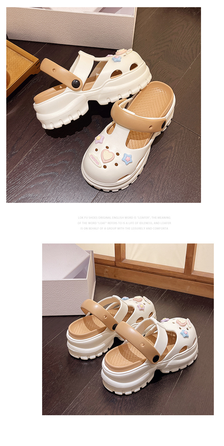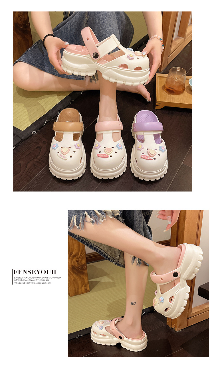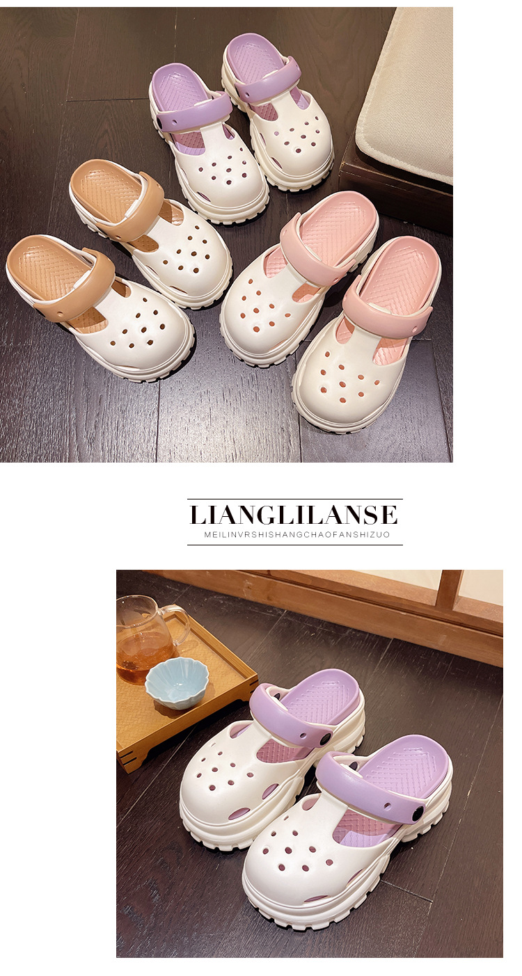 【可甜可酷!日常通勤】新款时尚洞洞鞋eva踩屎感女夏季清凉室内增高厚底外穿软底。ry 商品图0