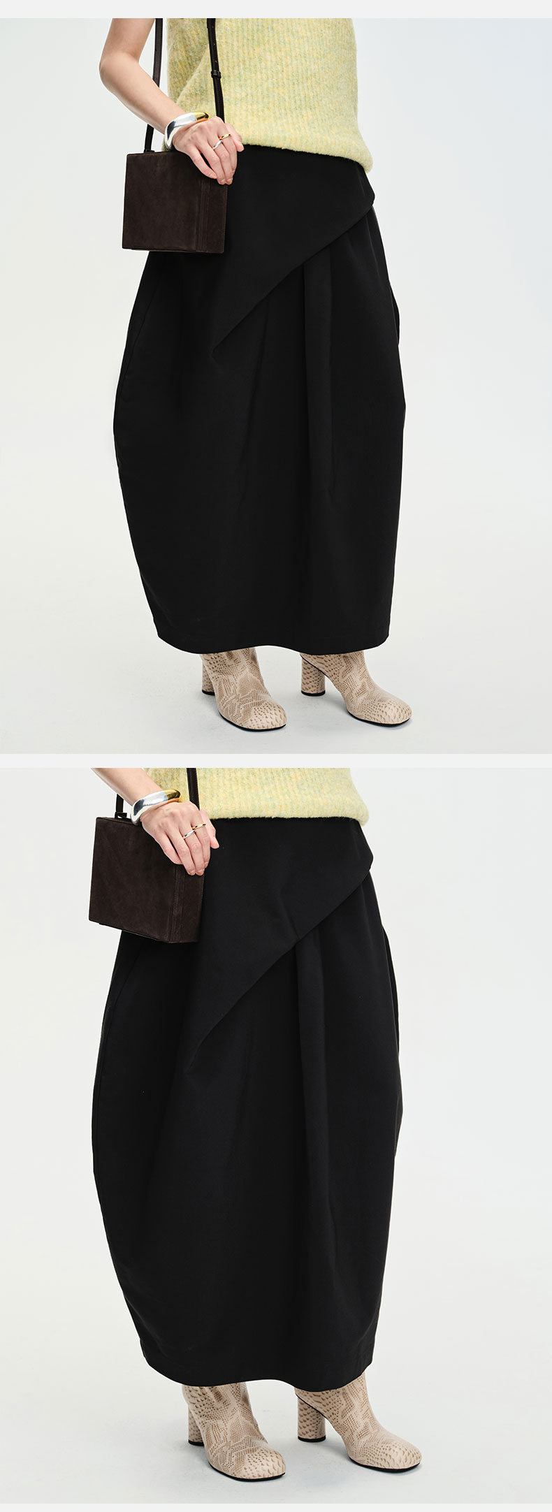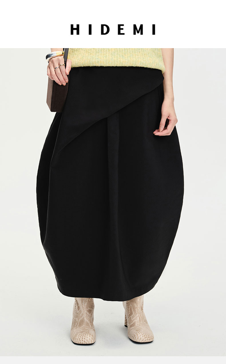 HIDEMI 美利奴羊毛简约设计感茧型套装 半高领毛衣/茧型半身裙