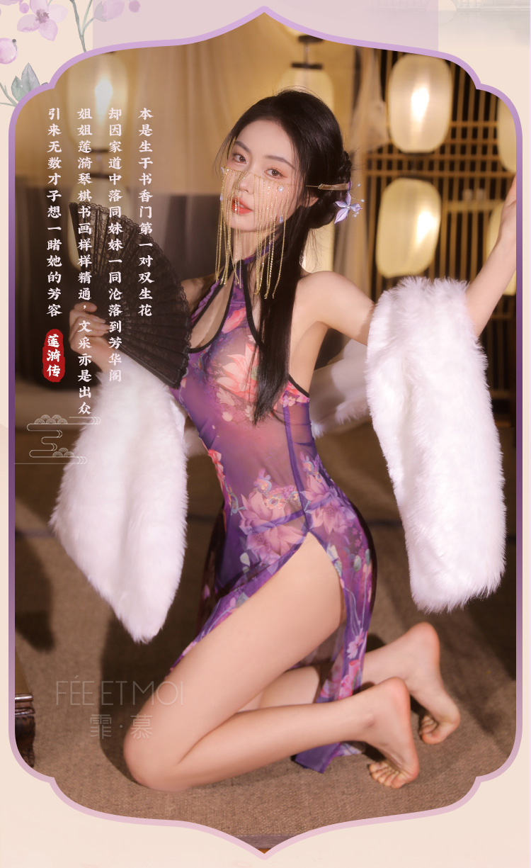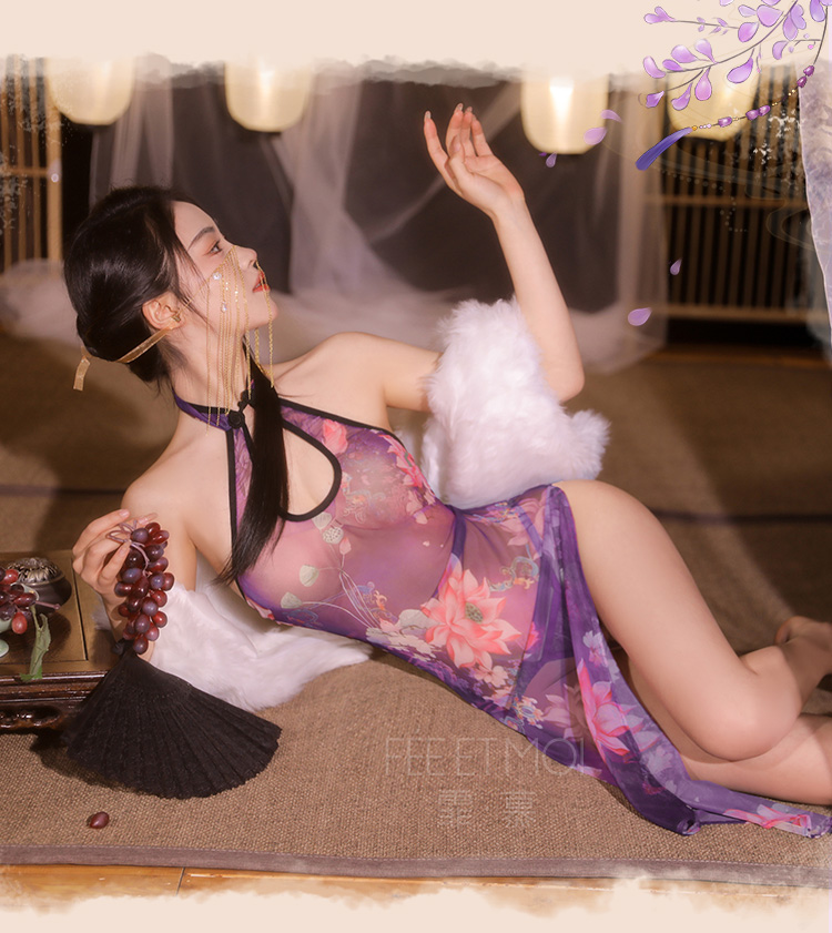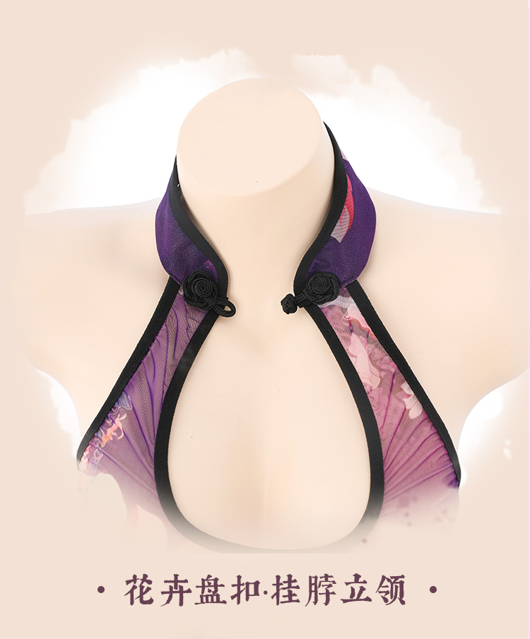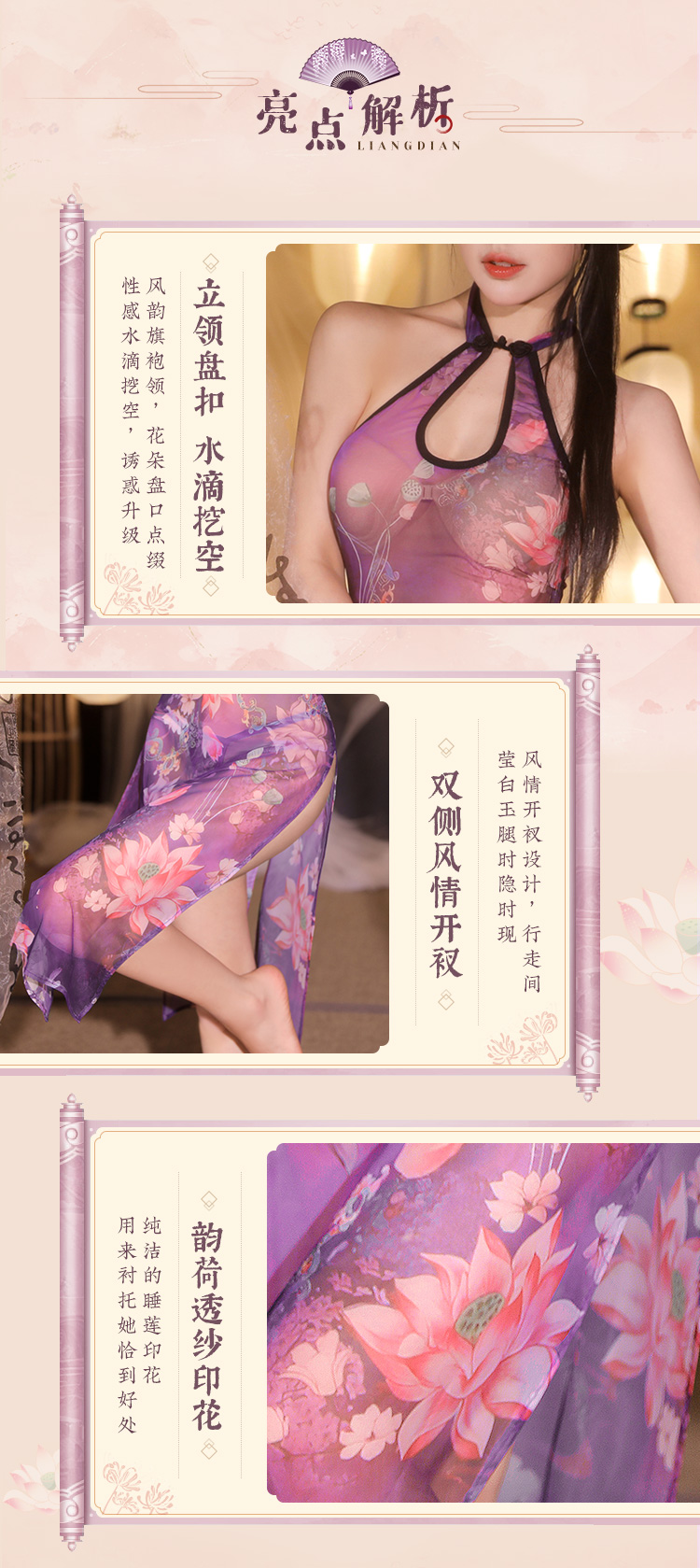 霏慕 忆江南繁莲紫襟透身旗袍6461 成人女士情趣内衣汉服性感衣服房事cos情趣紧身免脱性感睡衣女床上诱惑古风情趣内衣女级污度诱惑