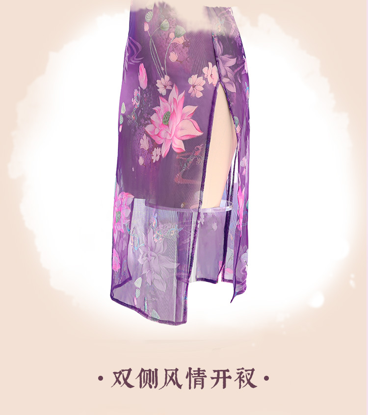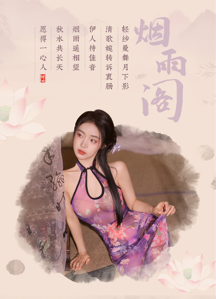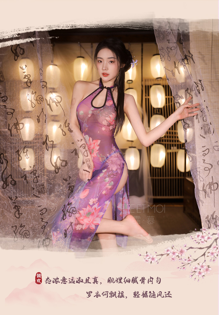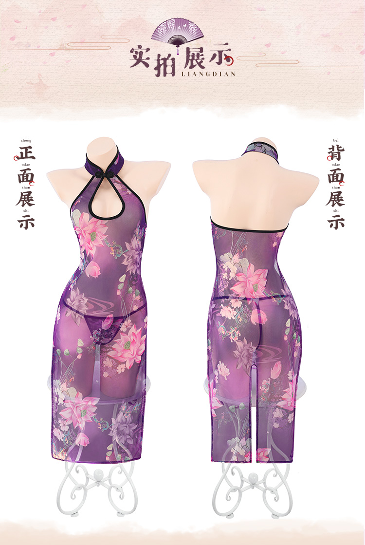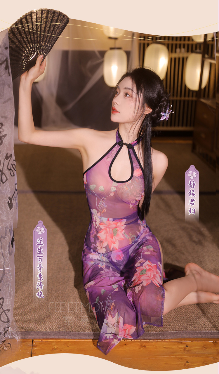霏慕 忆江南繁莲紫襟透身旗袍6461 成人女士情趣内衣汉服性感衣服房事cos情趣紧身免脱性感睡衣女床上诱惑古风情趣内衣女级污度诱惑