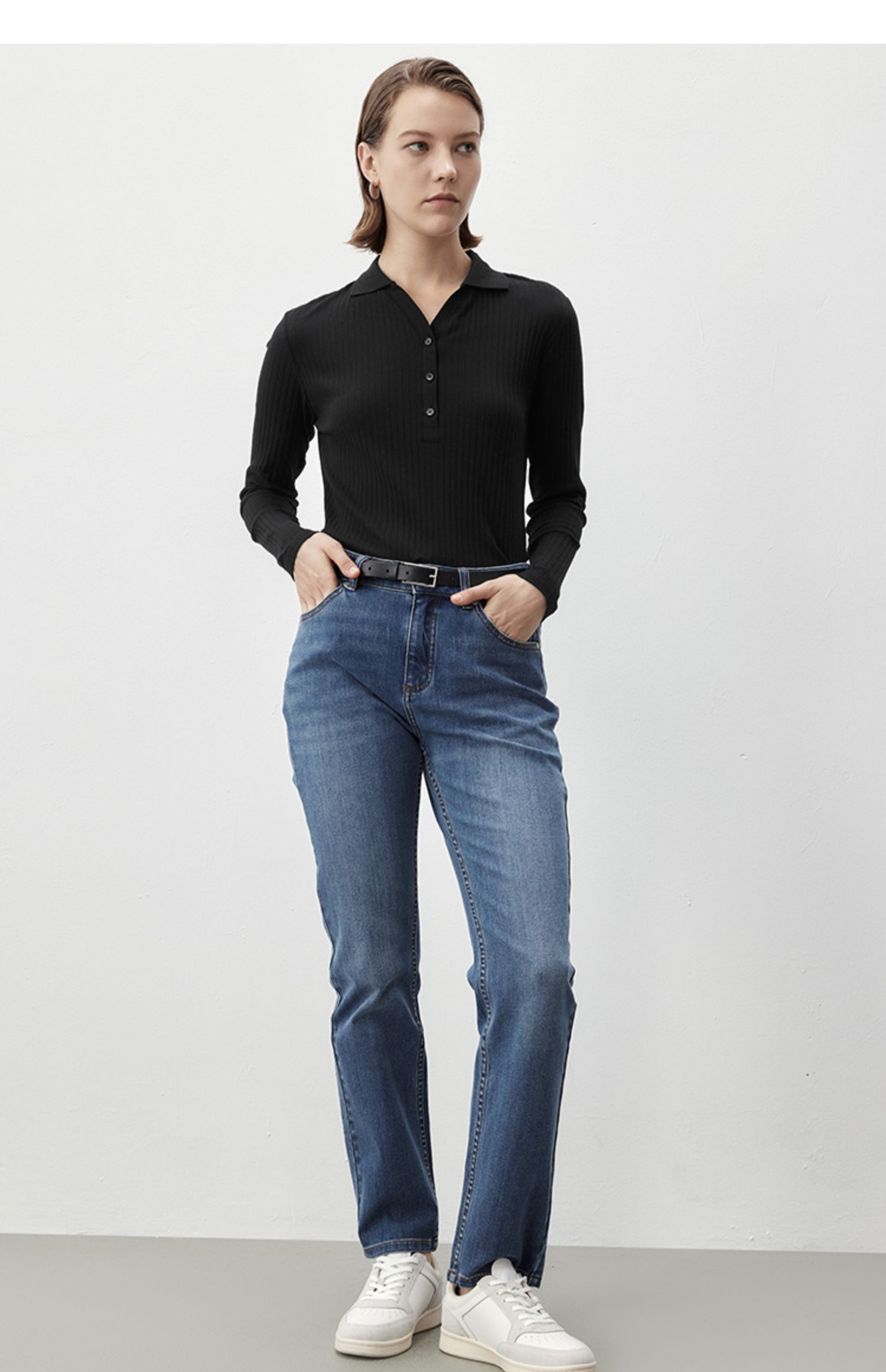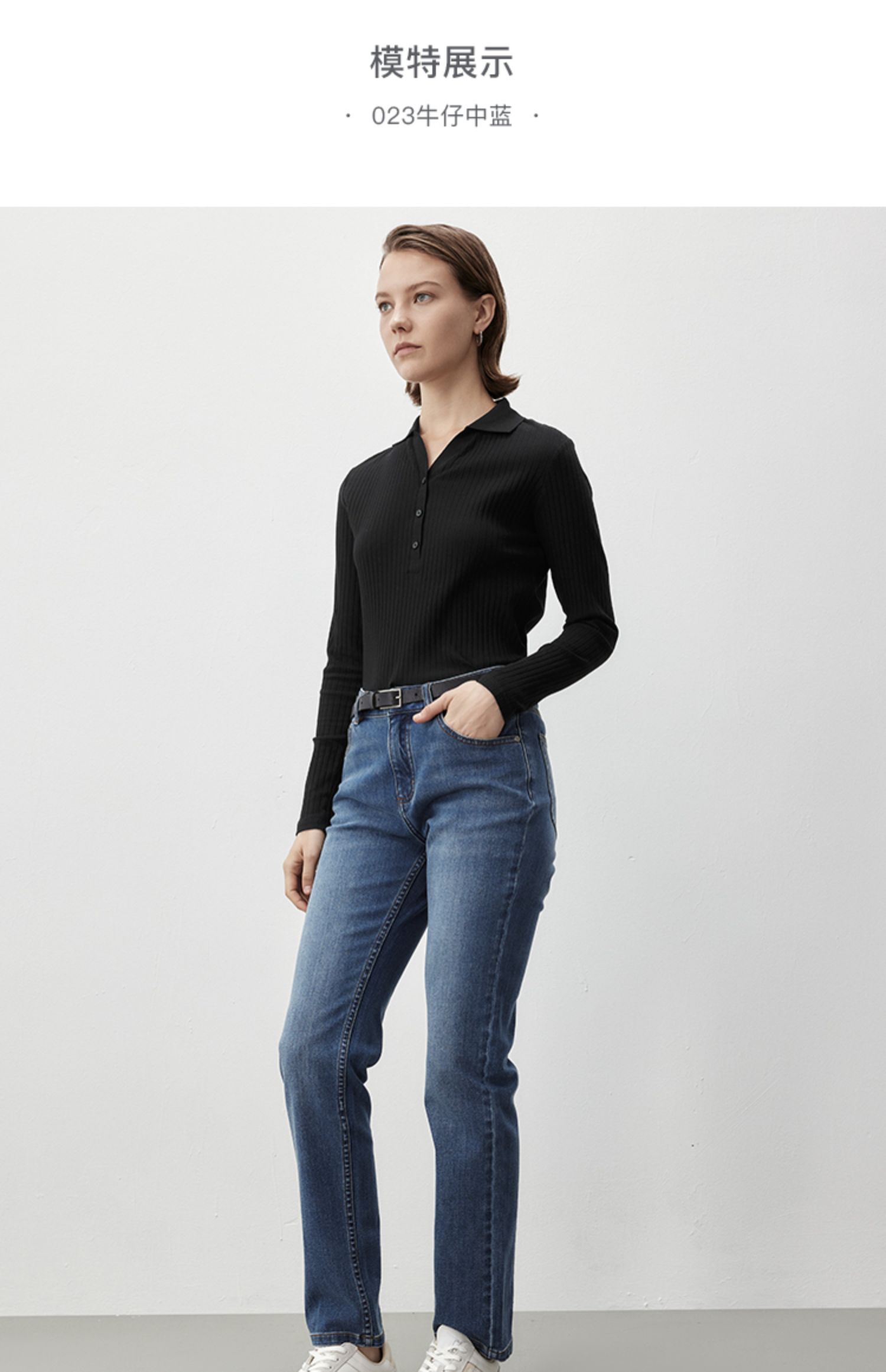 Marc O'Polo/MOP冬季新款时尚LINDA小直筒四面弹牛仔长裤女士