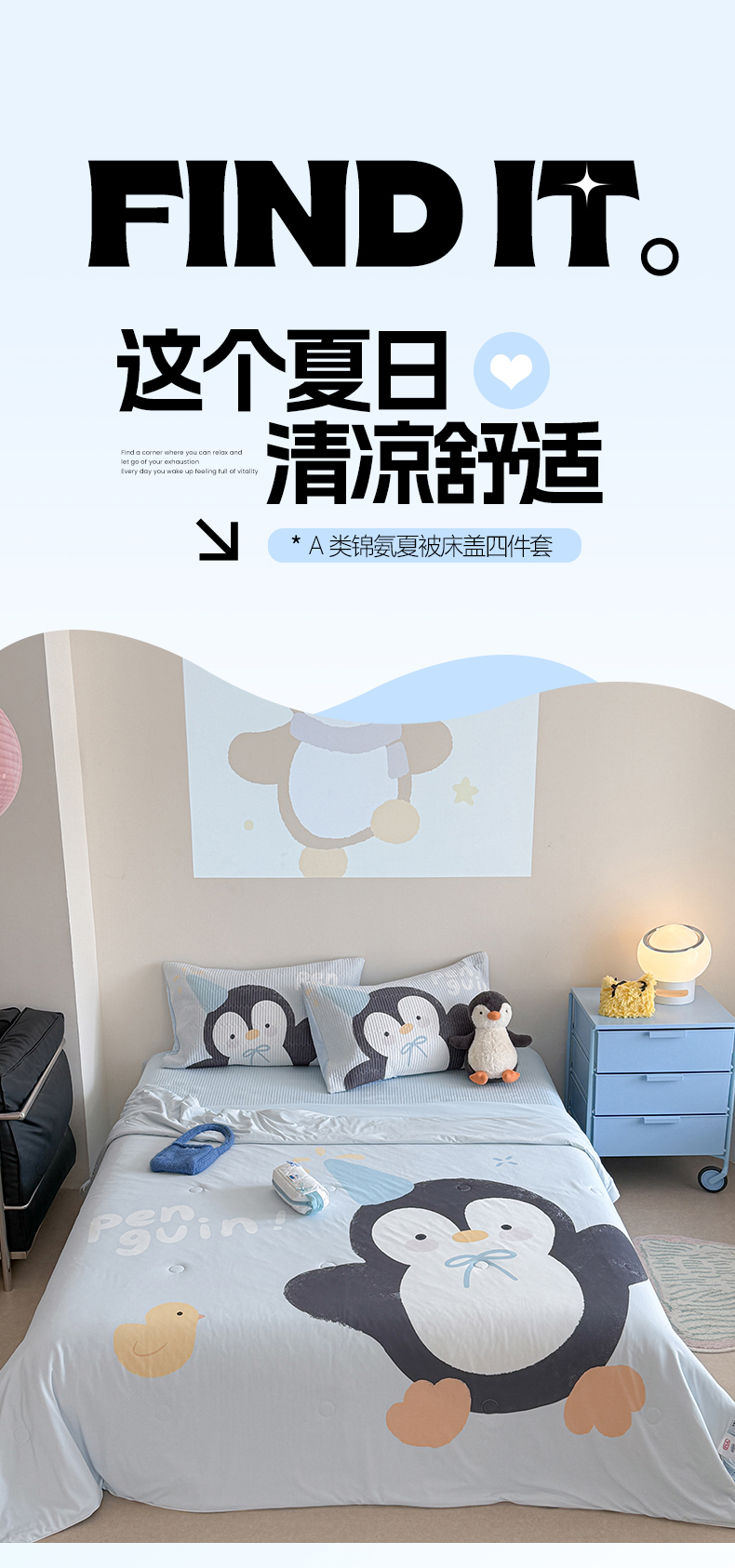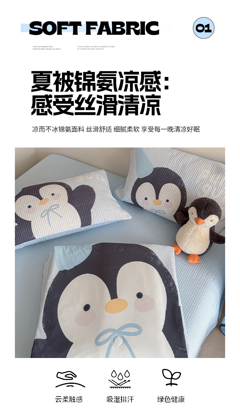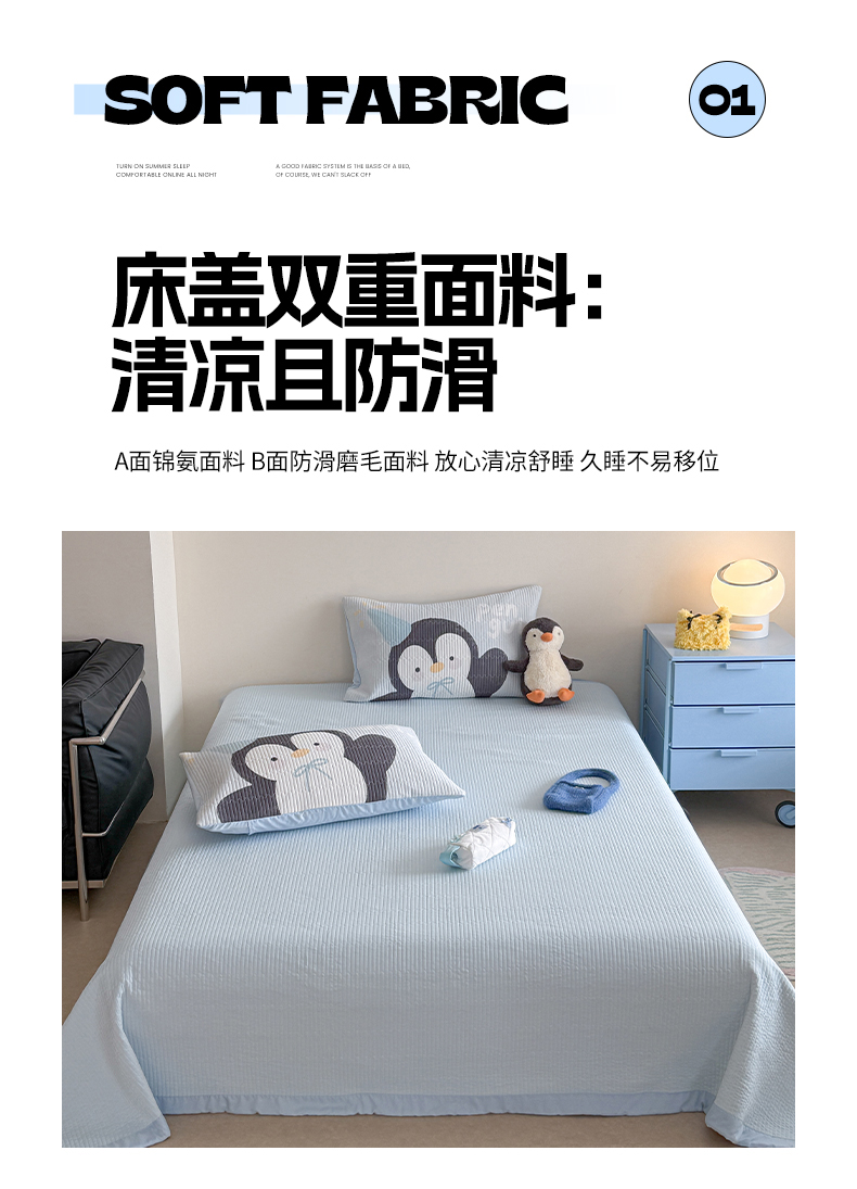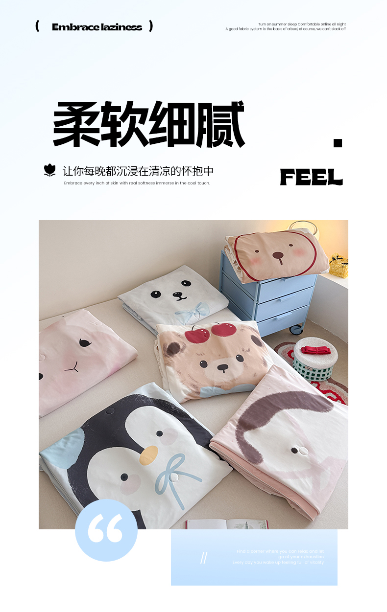 【防晒衣柔软冰凉面料】2026新款卡通冰皮床盖夏被四件套、单夏被
