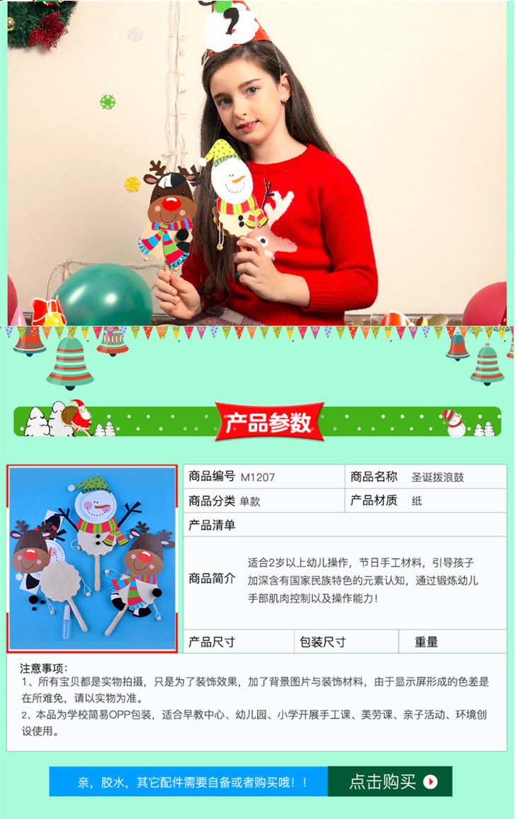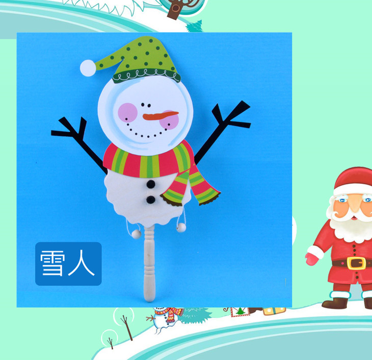 圣诞节小礼物手工diy圣诞雪人拨浪鼓创意装饰幼儿园材料包儿童