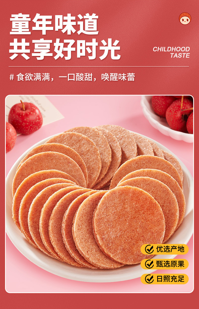 【鲜果打浆!酸甜软糯山楂片】配料只有山楂/白砂糖/饮用水,自然本味,老少皆宜!干条糕解馋果干果脯开胃健康小零食小吃休闲食品单独小包装