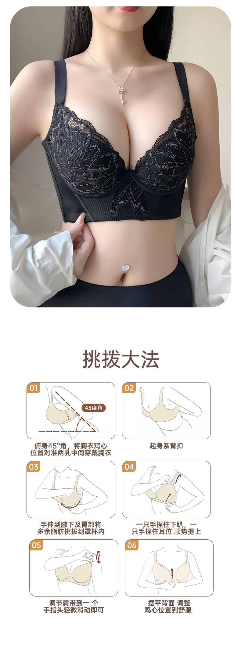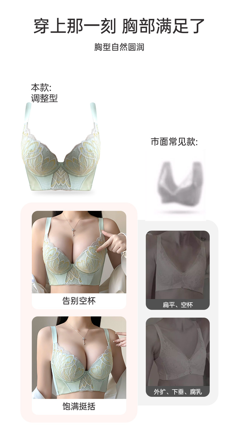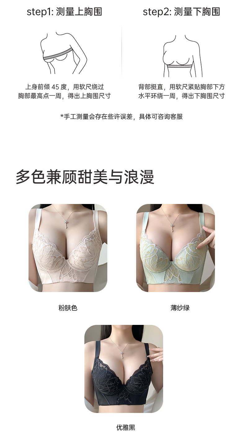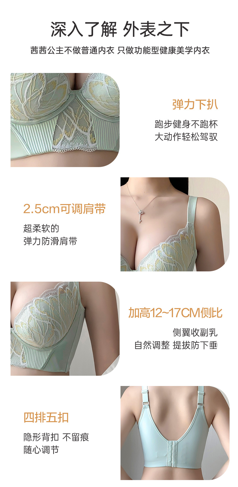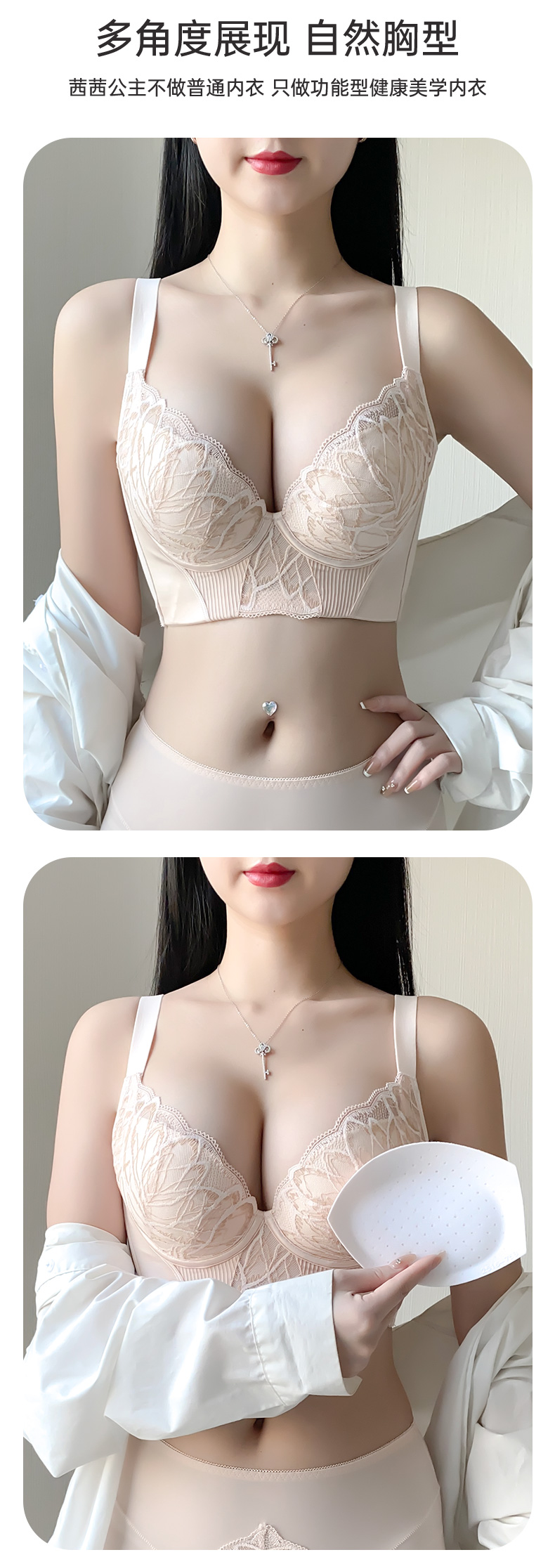 茜茜公主透气上托聚拢文胸侧收副乳防下垂蕾丝胸罩软 精油杯 无圈内衣 芙蓉千金精油杯调整型文胸