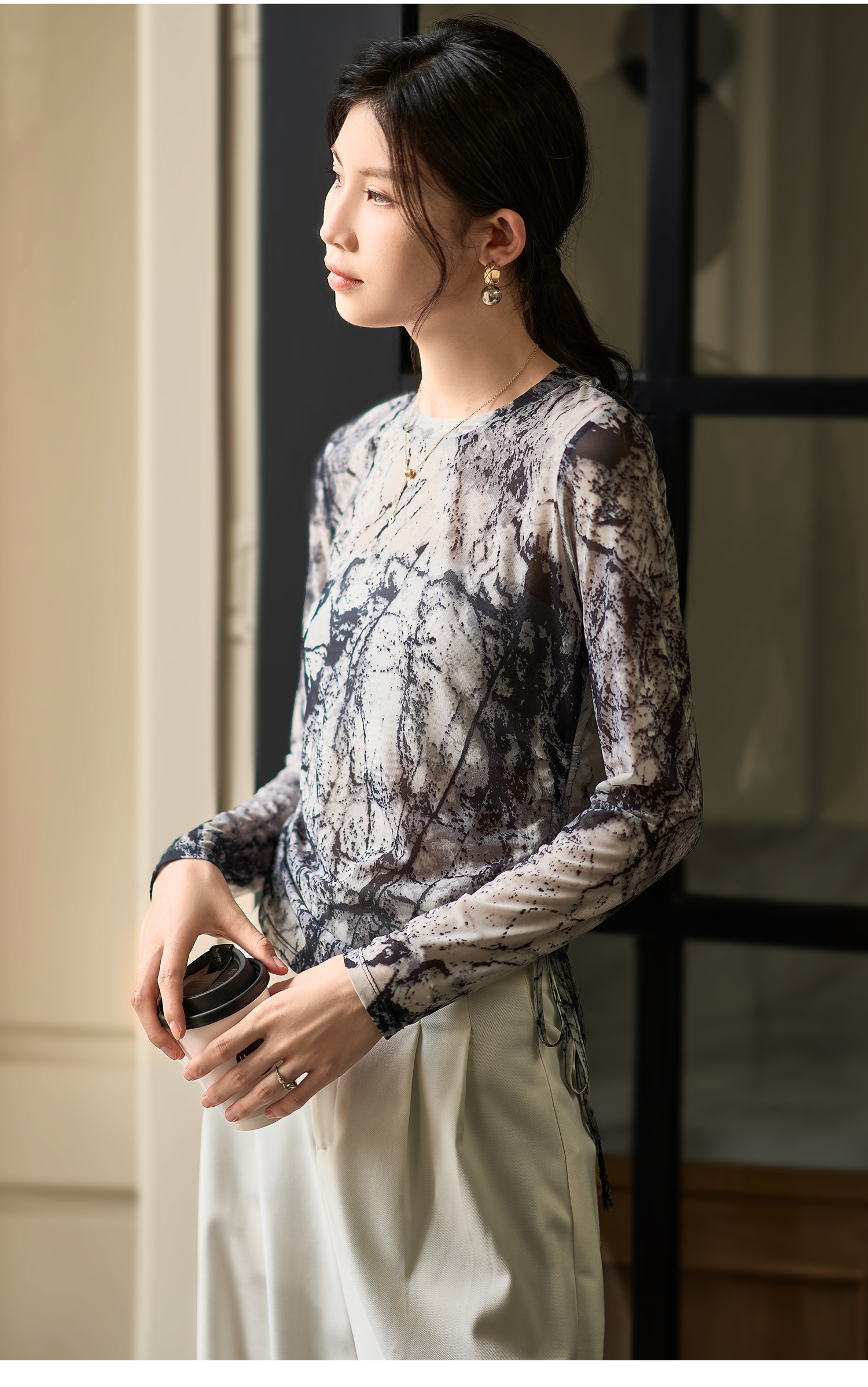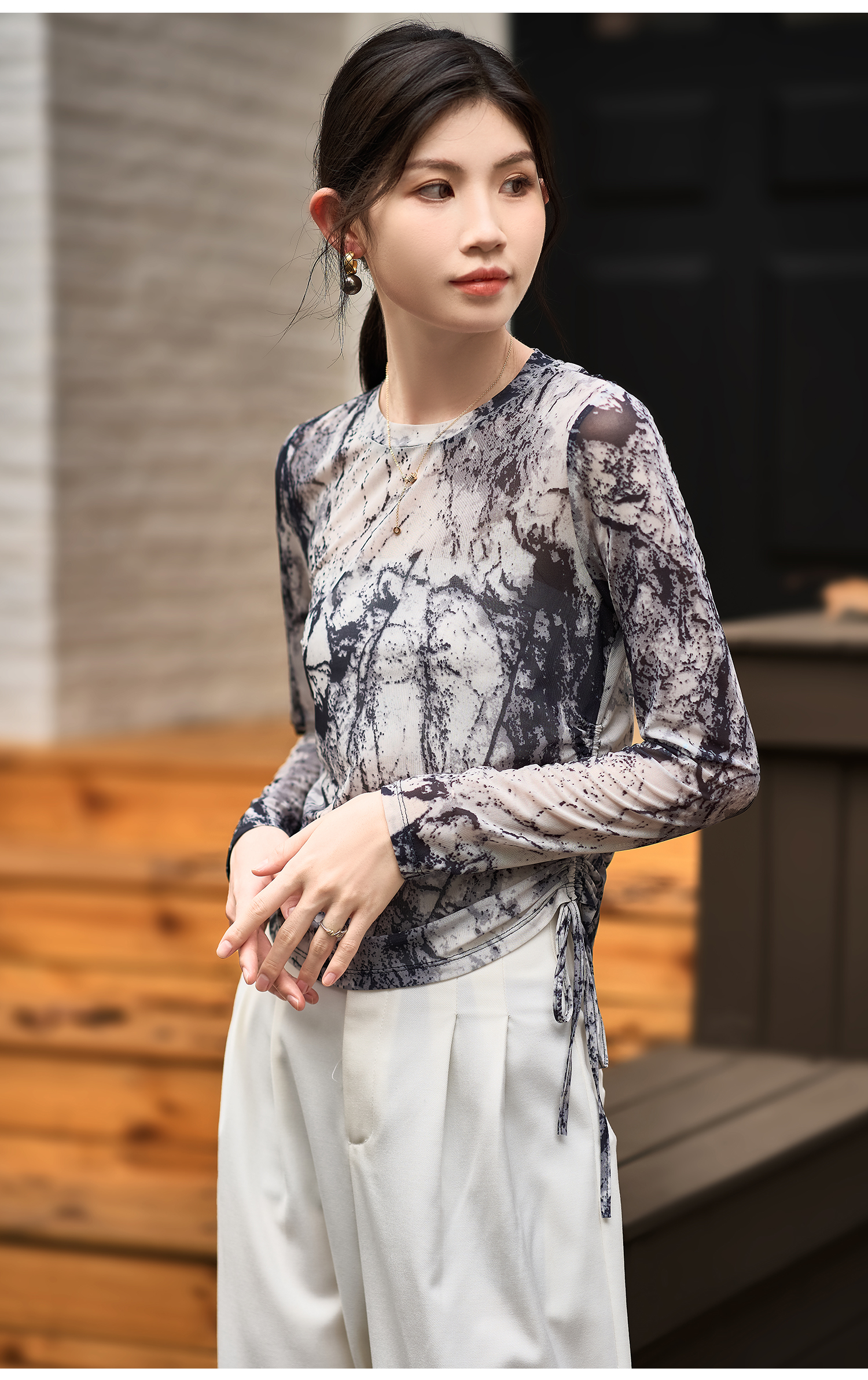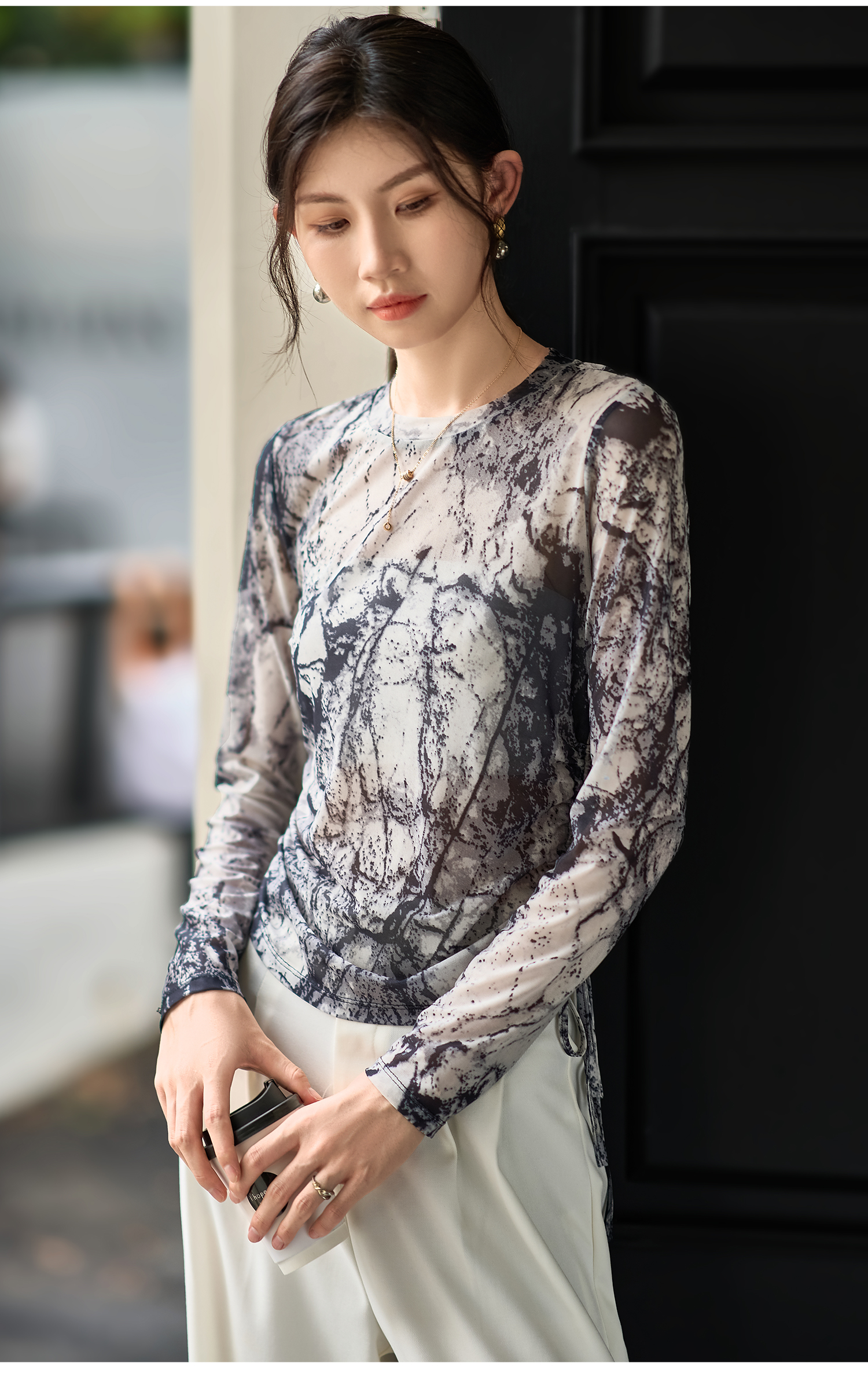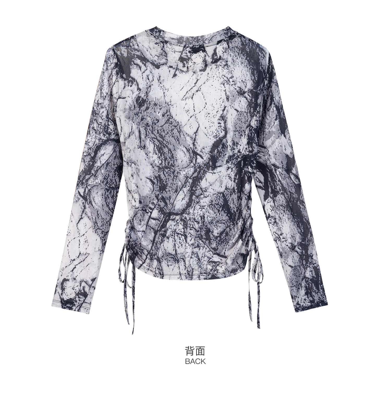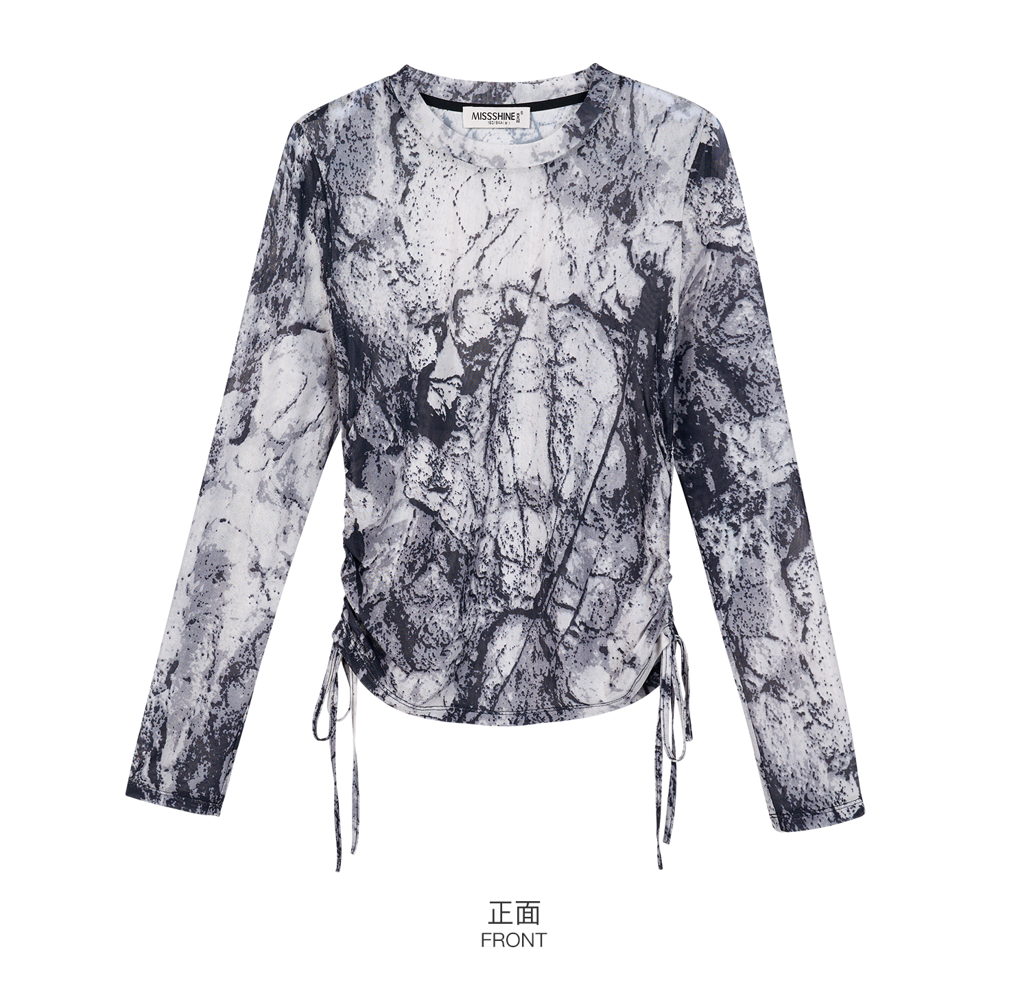 剩S 米思阳2026春季新款国风泼墨感网纱T恤轻薄透气长袖上衣女3578