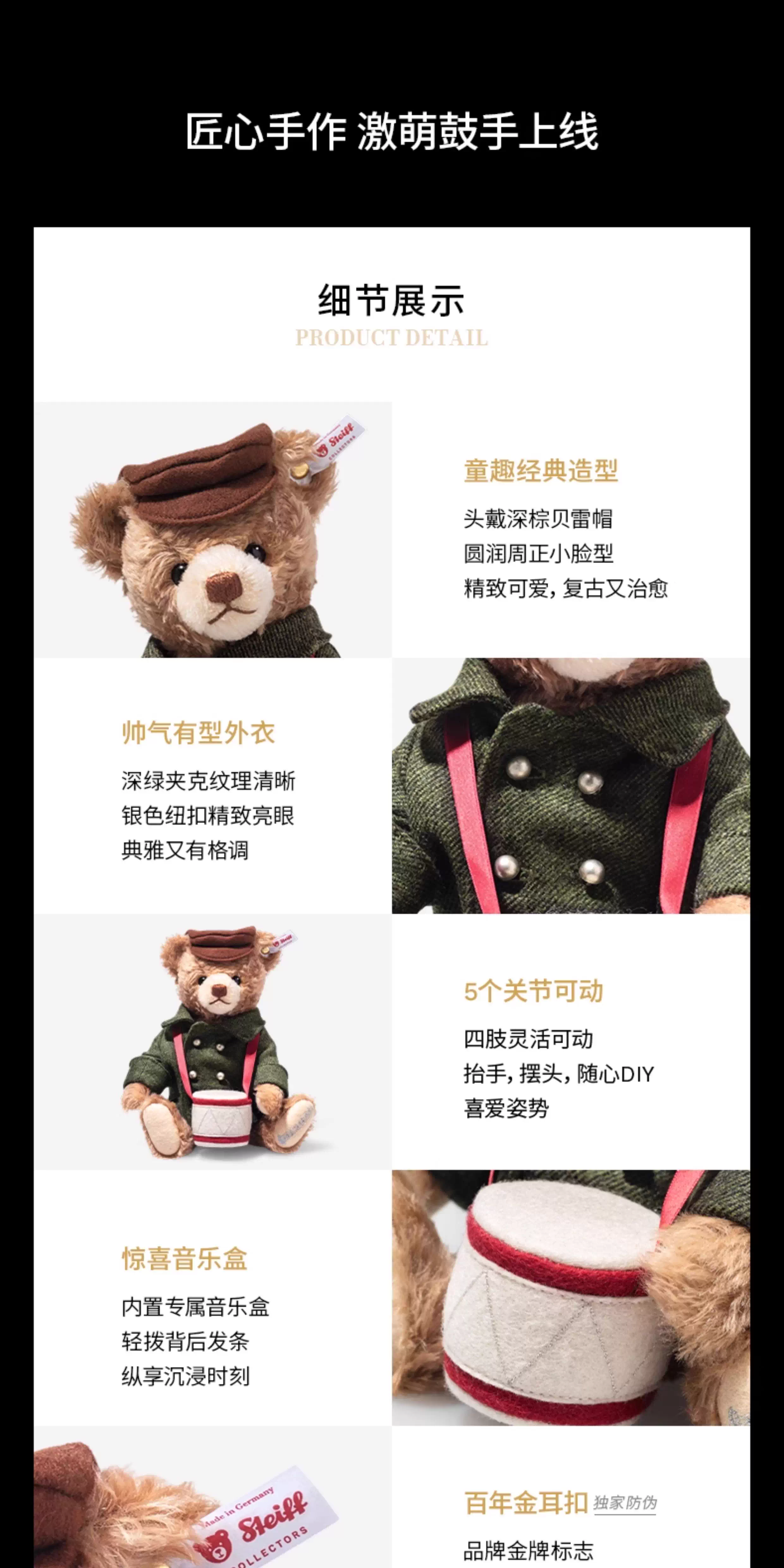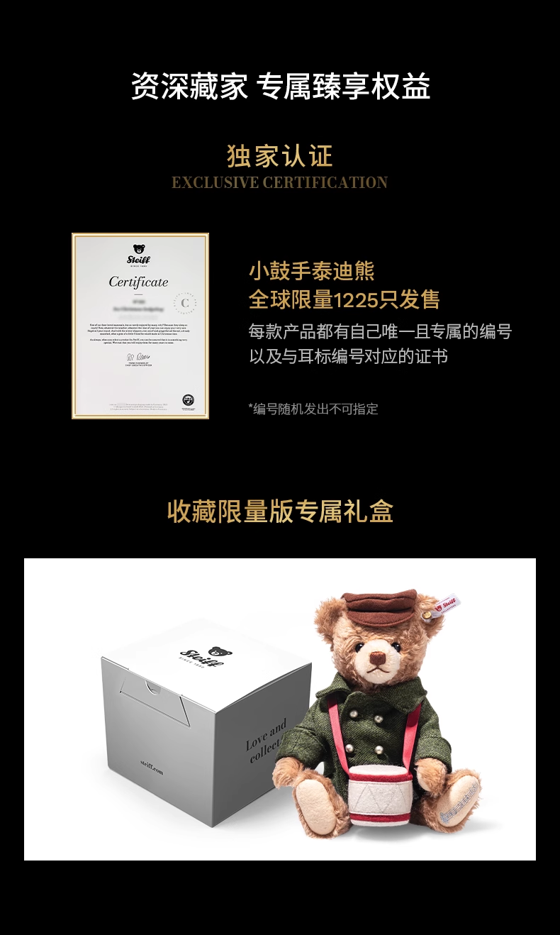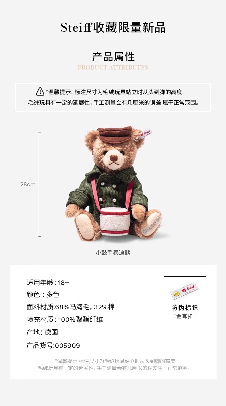 史戴芙收藏限量版-⼩⿎⼿泰迪熊(28厘⽶)STEC005909