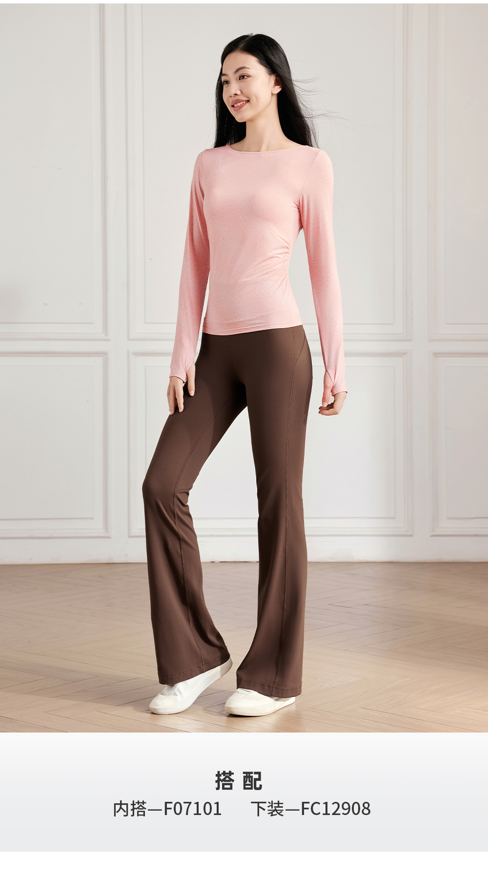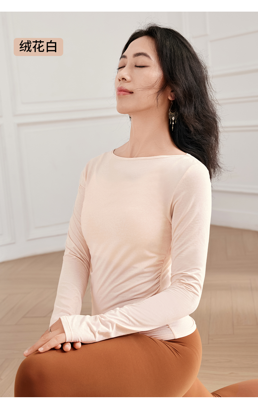 F14363一字领抽褶瑜伽长袖