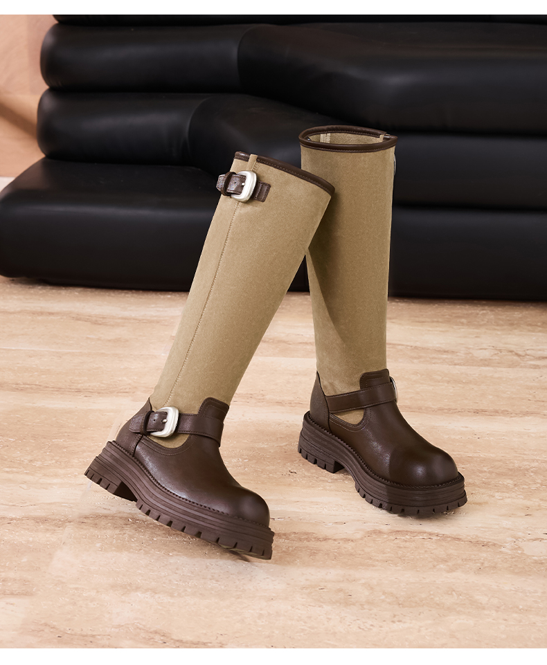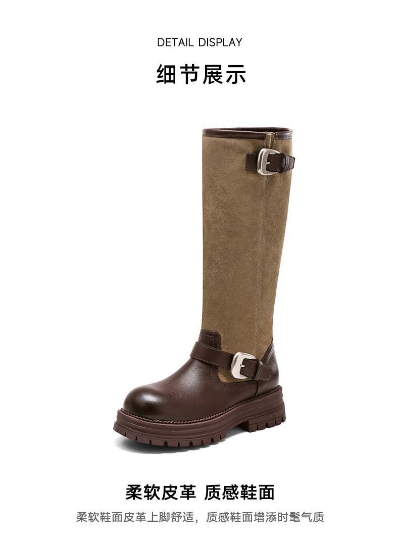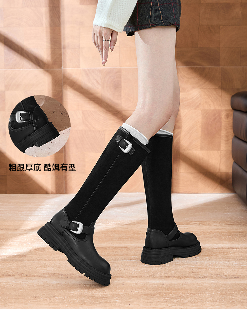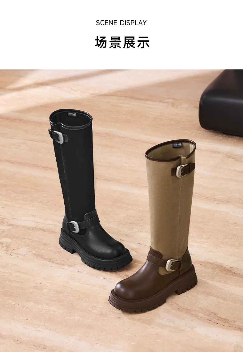 【筒高可选】星期六复古英伦风双扣带骑士长靴SSD3117C49/SSD3116C48