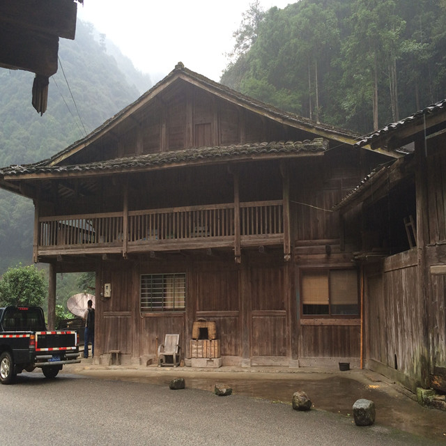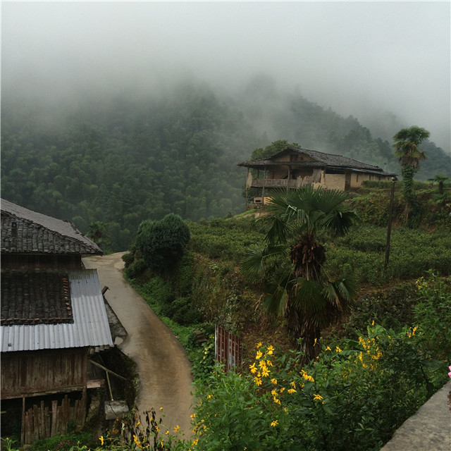 (上图)在行驶一个多钟头下车休息时,我们来到了这样的纯木头房子里避雨。一个村庄两三户人家,到达茶山需要经过差不多三道以上的管制。所以自驾游根本就不可能进到原始的茶园。看到这样的建筑我们知道距离此行的目的地又近了一步。