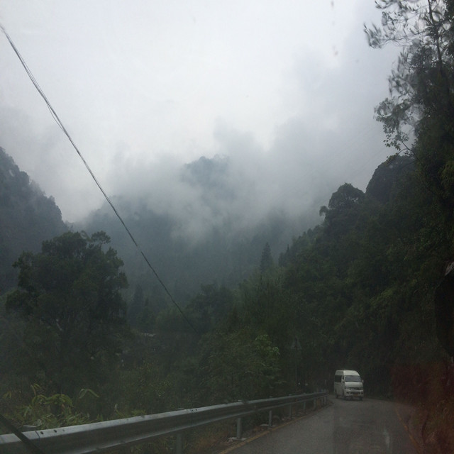 (上图)每次原产地寻访的路上都会一波三折,这不是,在我们到达的第二天,武夷山整晚的倾盆大雨,到了第二天早晨也没有停下来的意思。我们冒雨向产茶区挺进,在狭窄泥泞的山路上行驶,遇到对面快速行驶过来的车辆紧急逼停,险象环生。