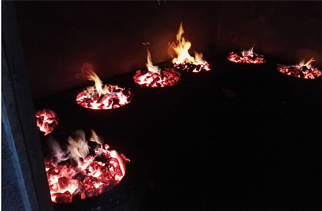 (上图)正山小种口味独特入口回甘与烟熏有很大的关系,也是决定一款正山小种很关键的步骤。炭火高温蒸发水分,使茶叶干燥适度,地面燃烧松柴片,明火浓烟,使茶叶在干燥的过程中吸收松香。