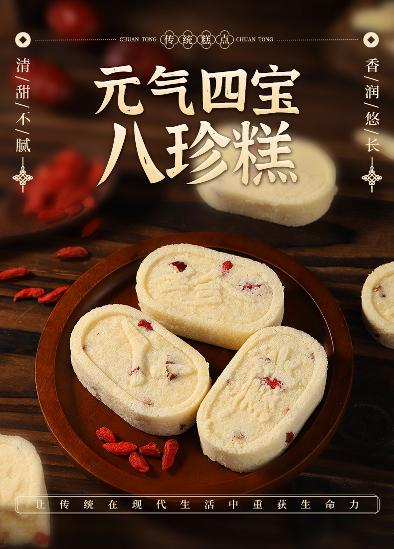 【四时精华❗️元气四宝八珍糕】无添蔗糖,精选添加黄芪/党参/麦冬/西洋参+八珍粉,用料讲究不含糊!茯苓糕芡实传统糕点代餐零食品rui