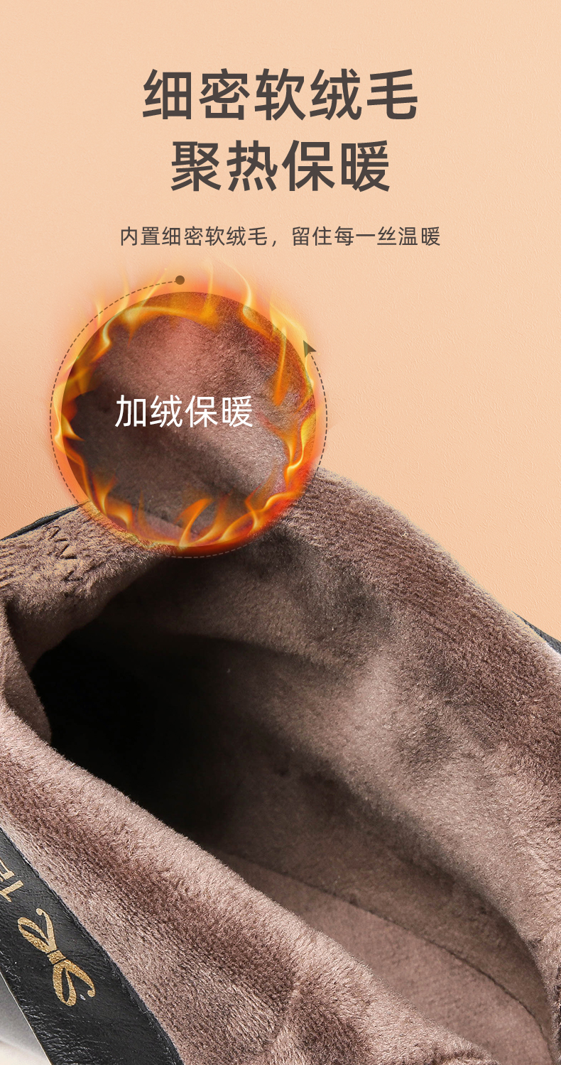 Signew/信诺 新款加绒保暖棉靴真皮软底舒适妈妈鞋 8M280-26