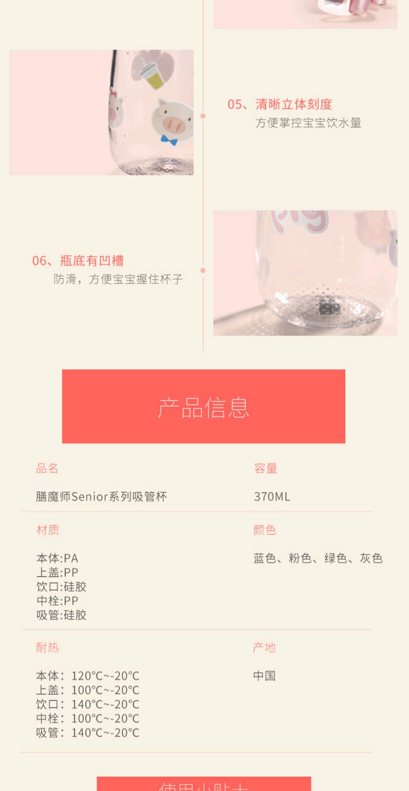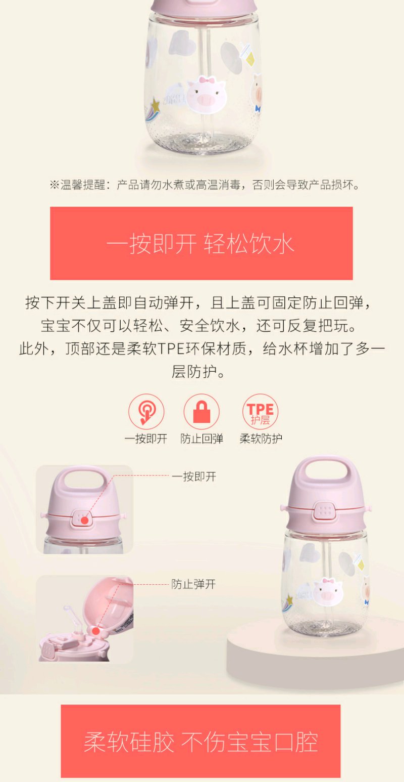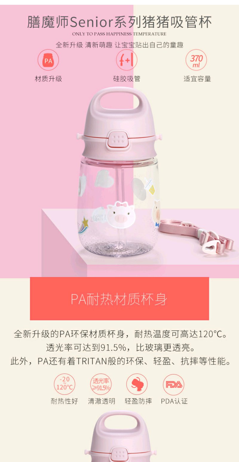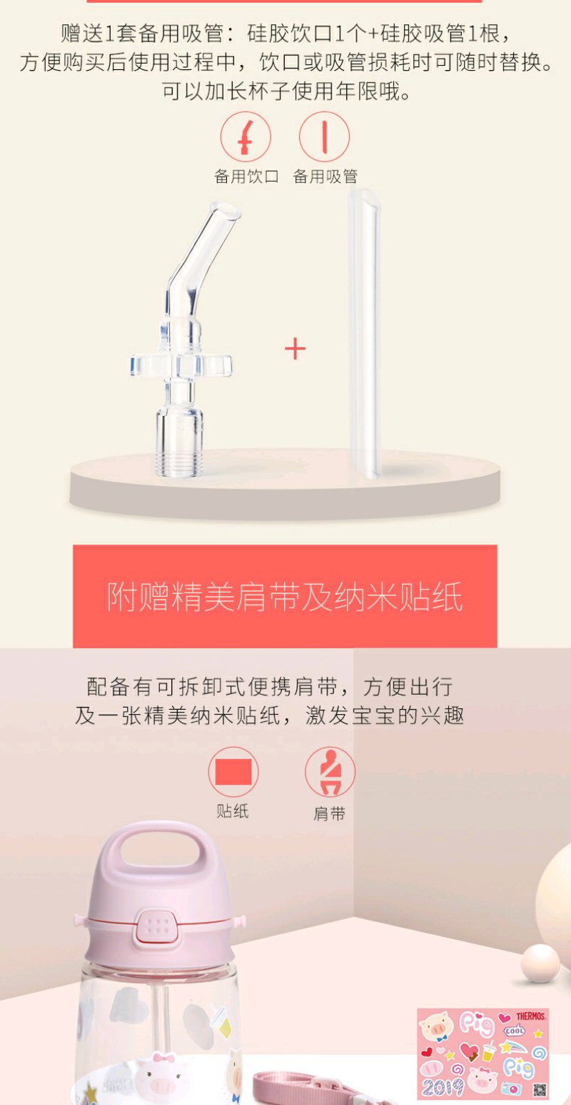(超值)膳魔师 儿童吸管杯 猪猪便携水杯 学饮杯 恐龙杯 370ml