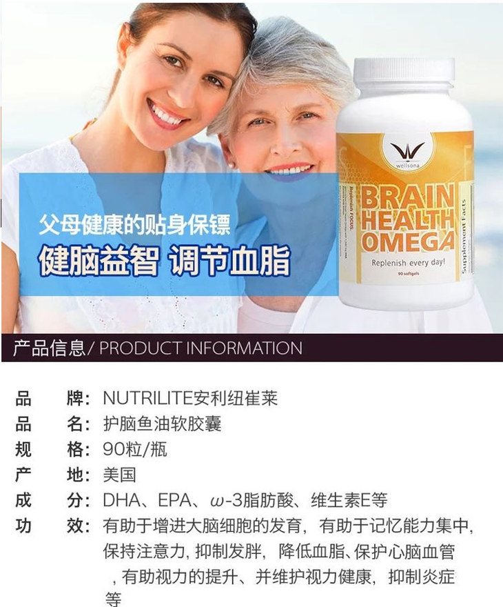 美版 NUTRILITE安利纽崔莱 护脑鱼油软胶囊中老年父母 90粒/瓶JPY带授权招加盟代理