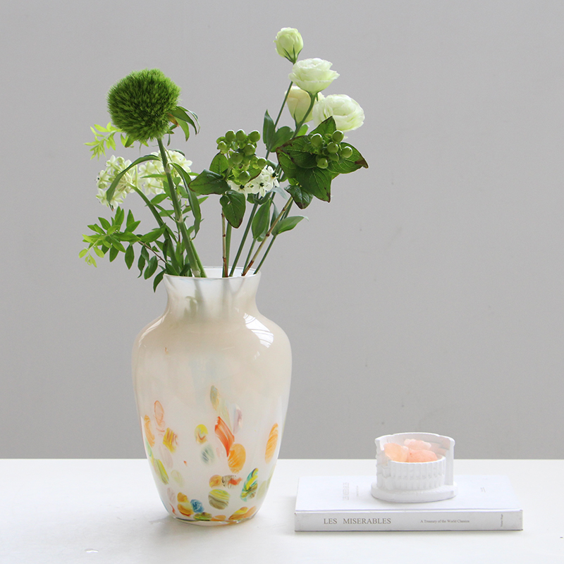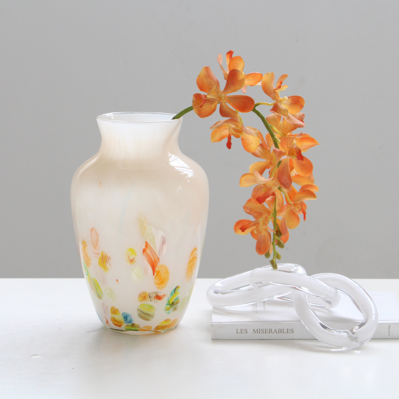 艺术法式奶油高脚手工玻璃花瓶中古风灯插花鲜花酒店样板房装饰瓶