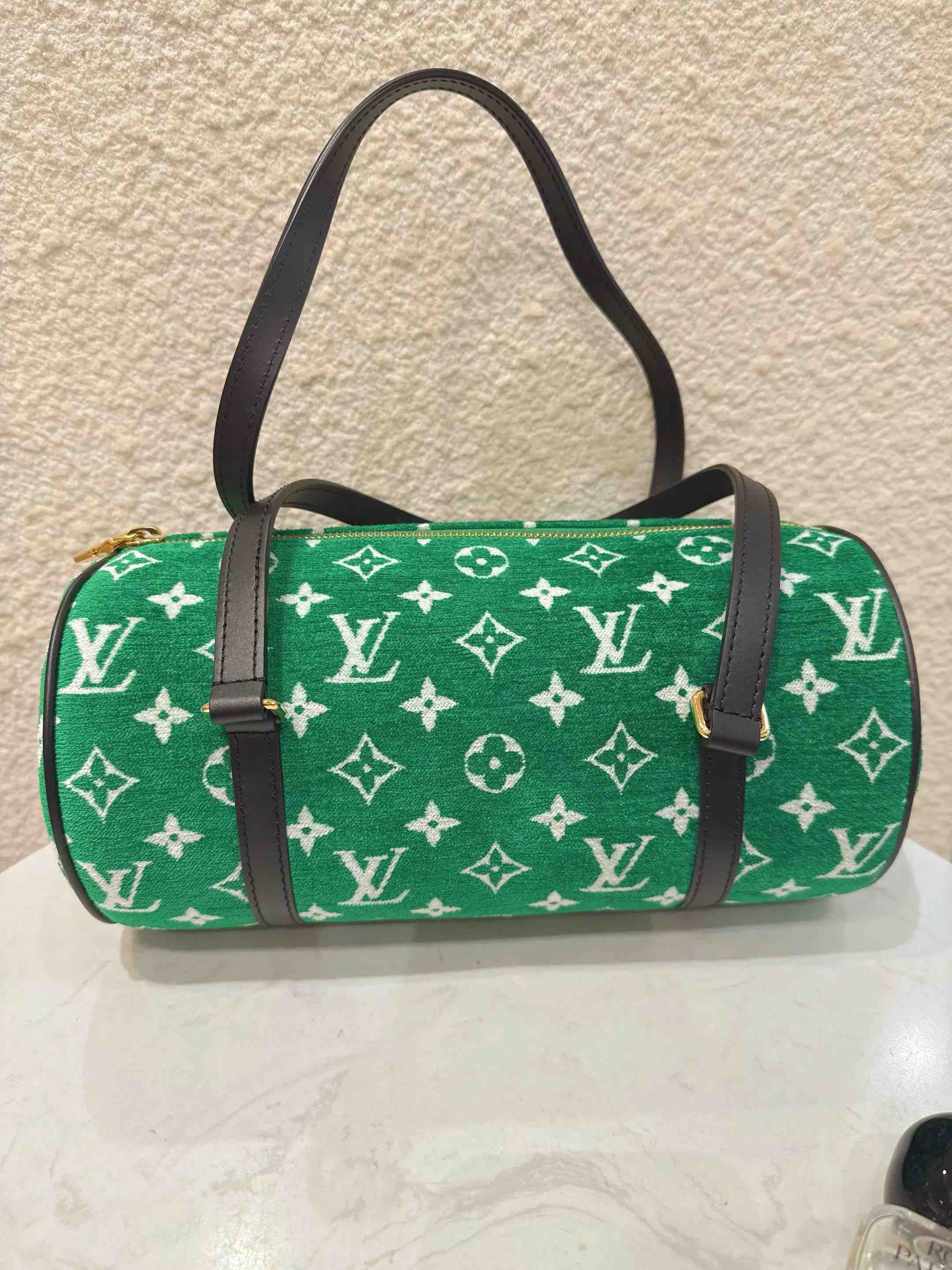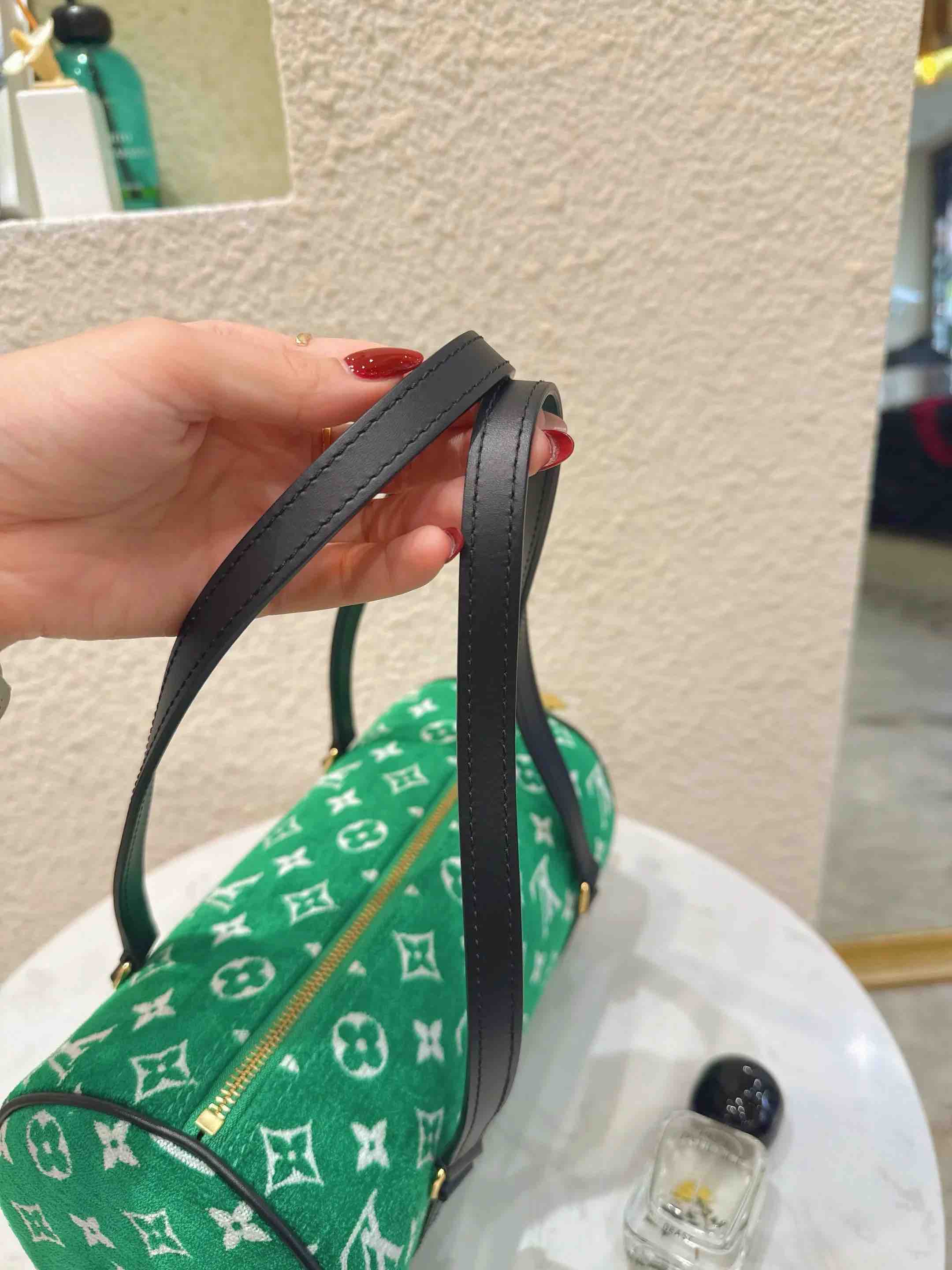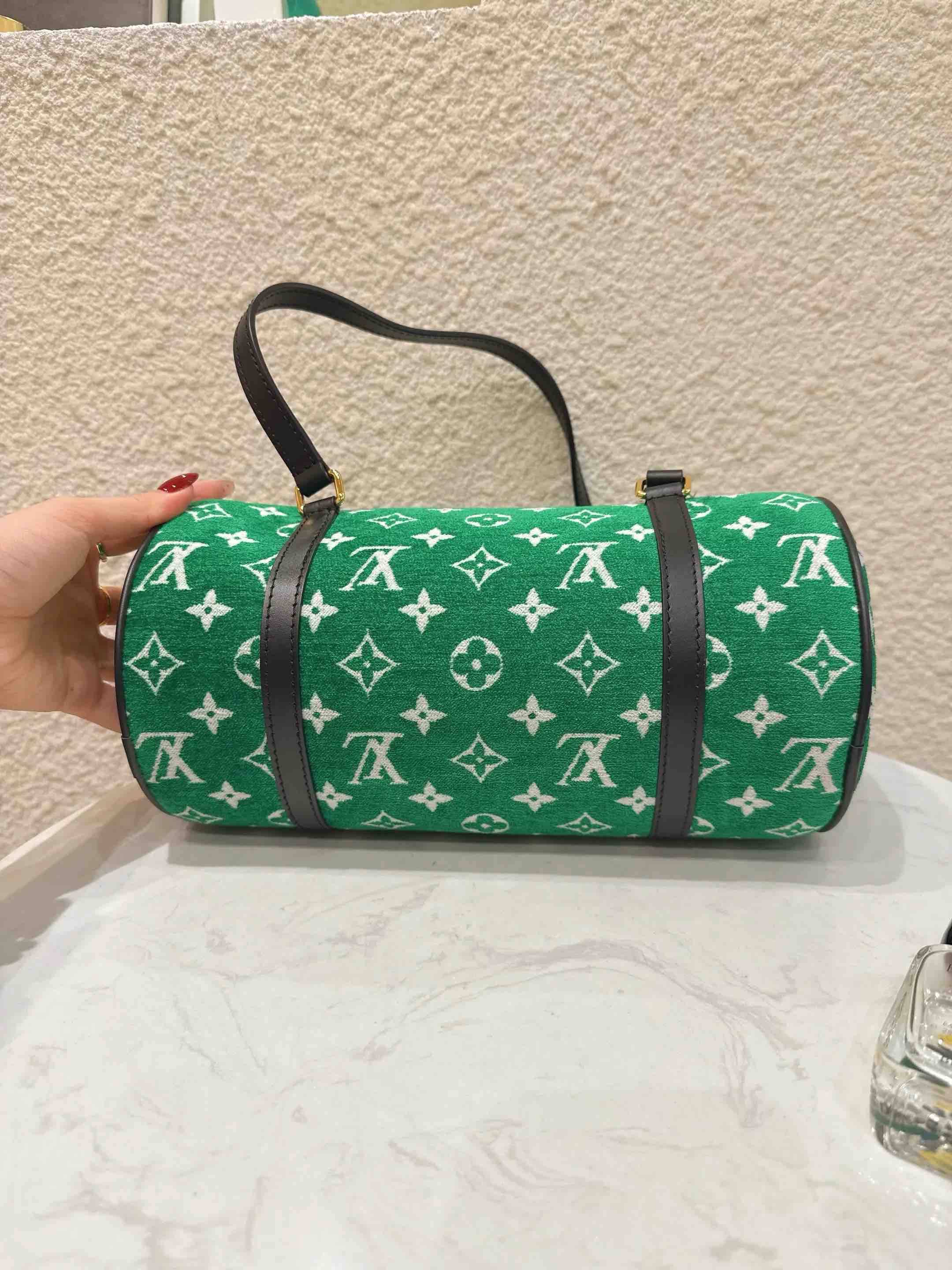 【商品详情】正品二手 LV 22年限定 巴比龙 绿色 提花 天鹅绒 圆筒包🍸98新 26*14 配件:防尘袋。个性时尚复古