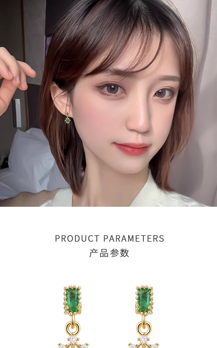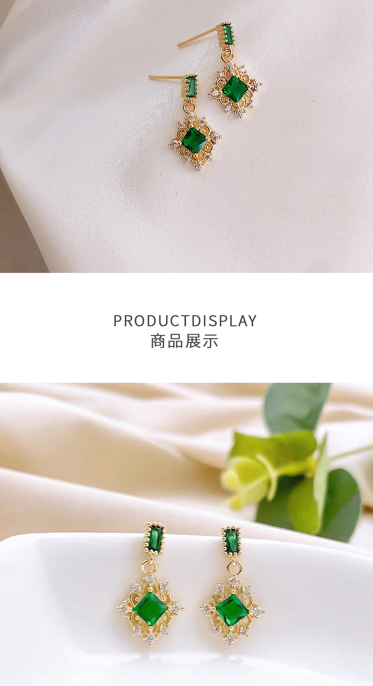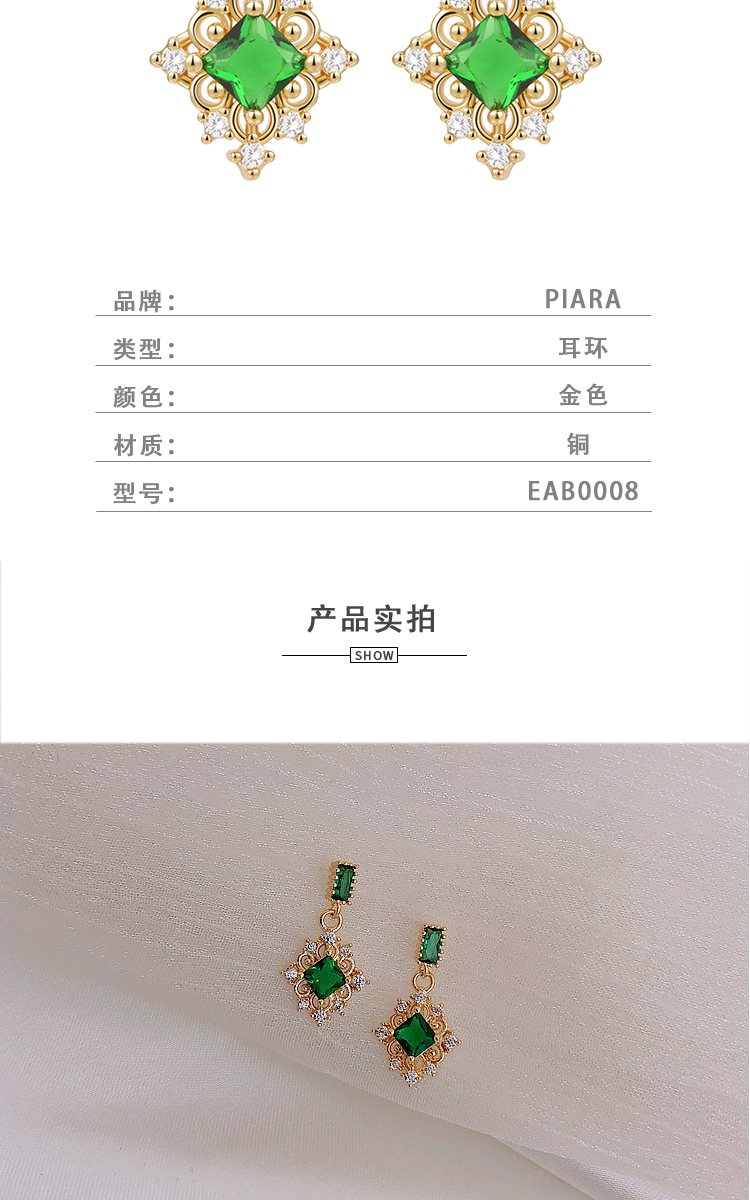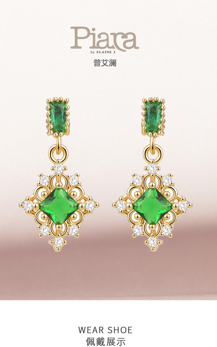 PIARA复古宫廷祖母绿宝石满钻耳钉EAB0008