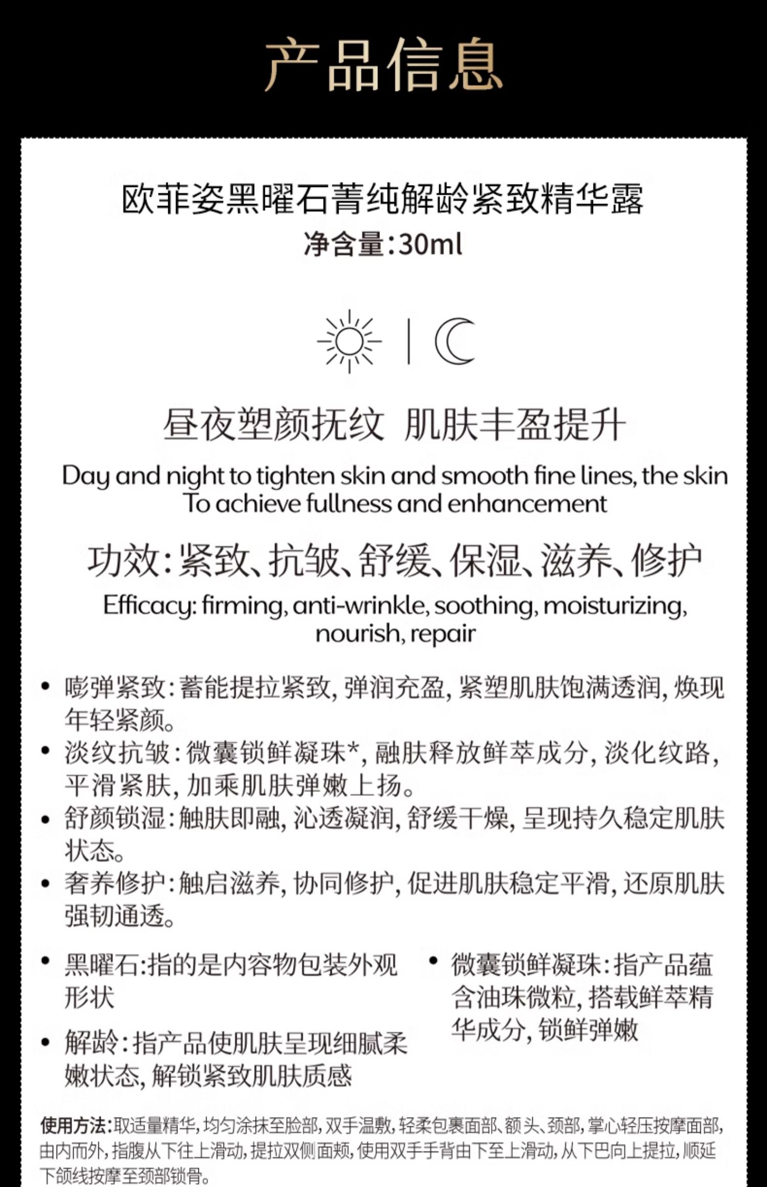 新品上市🎊欧菲姿 黑曜石菁纯解龄紧致精华露 30ml