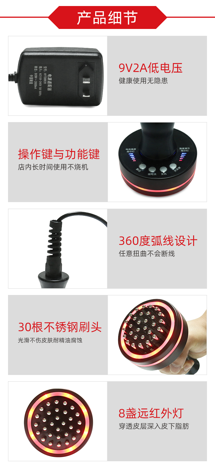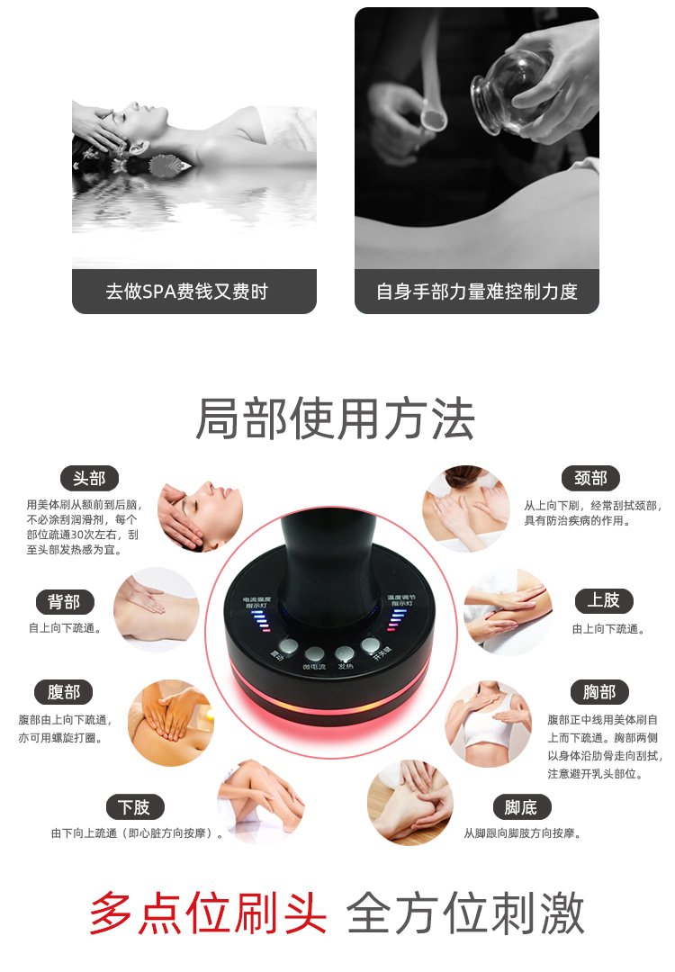 远红外发热微电动养生经络刷按摩器美体刷刮痧仪器原价216元会员价180元