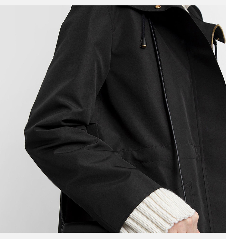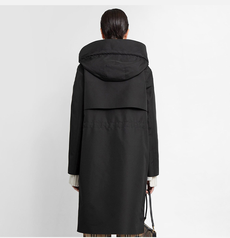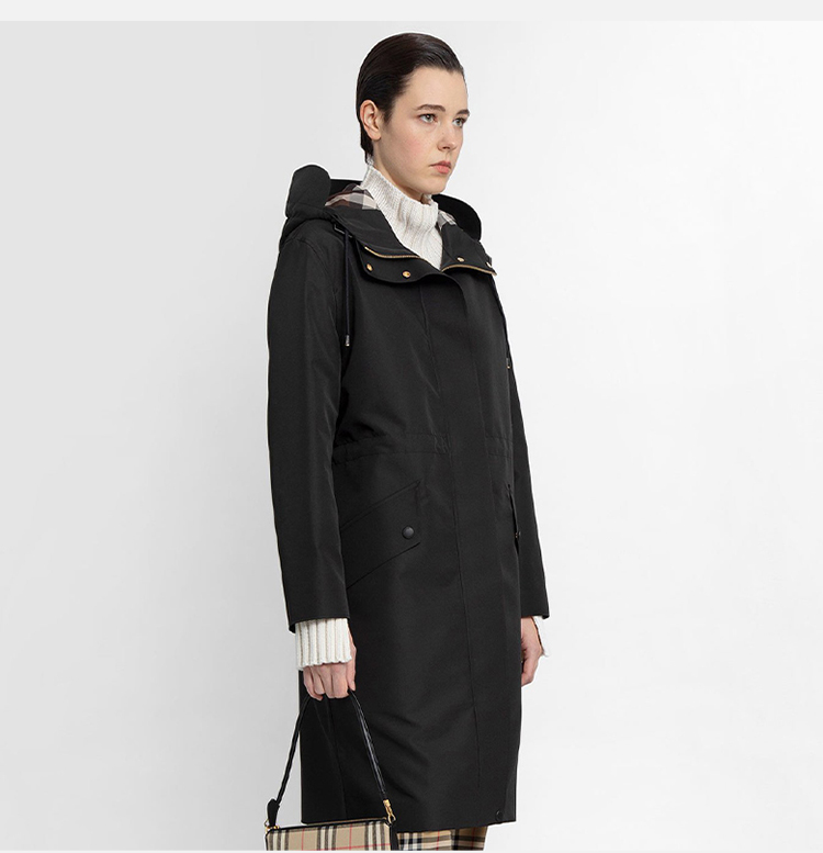 BURBERRY 巴宝莉 女士连帽派克长款大衣 黑色 8048814 A1189