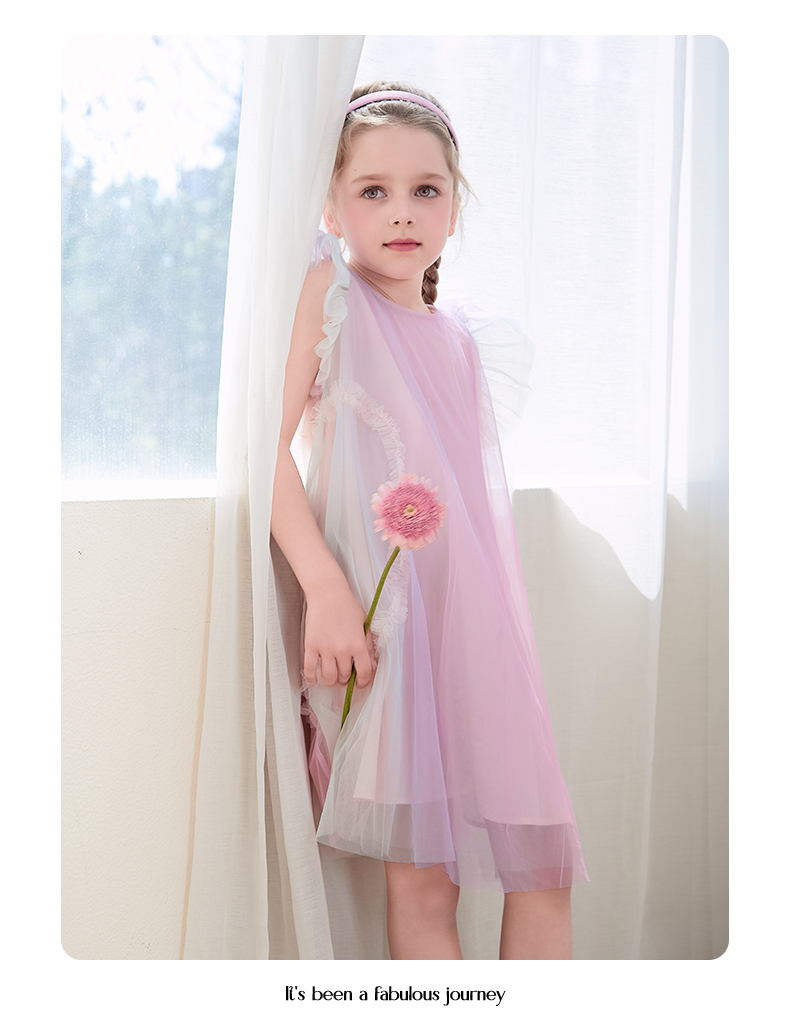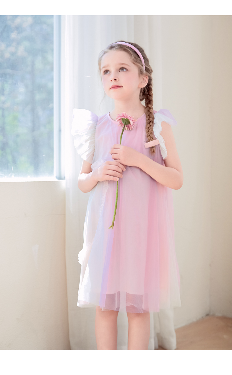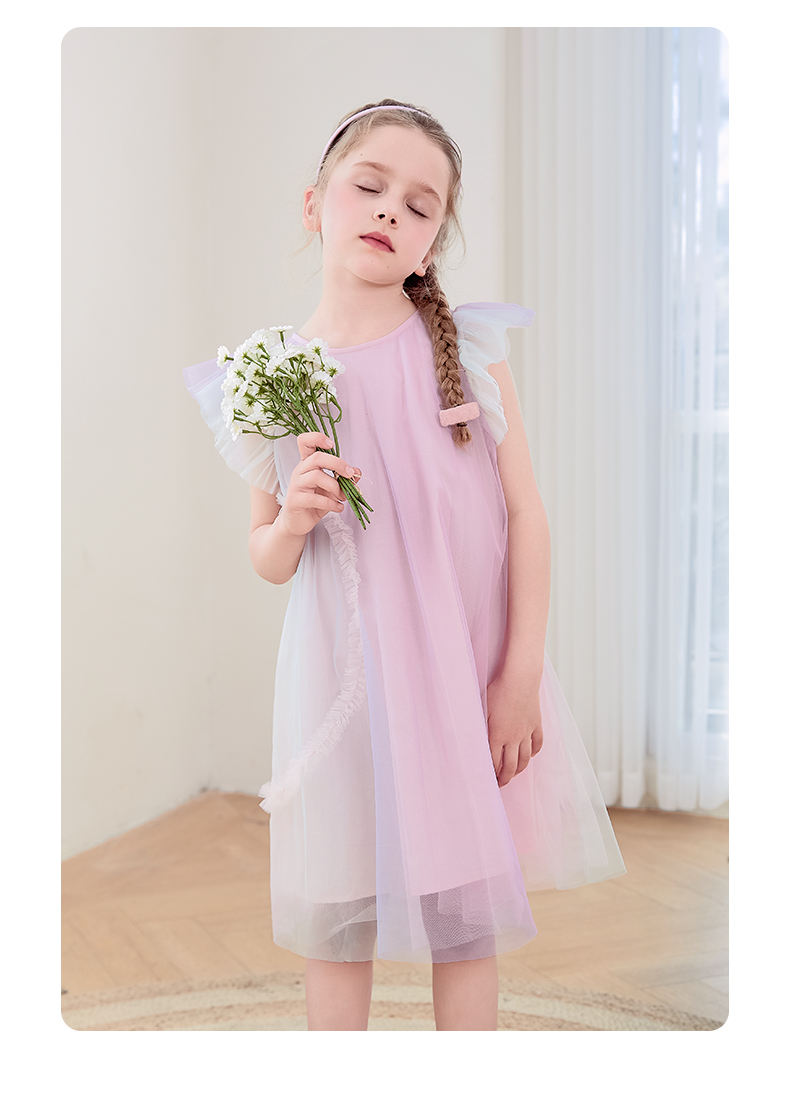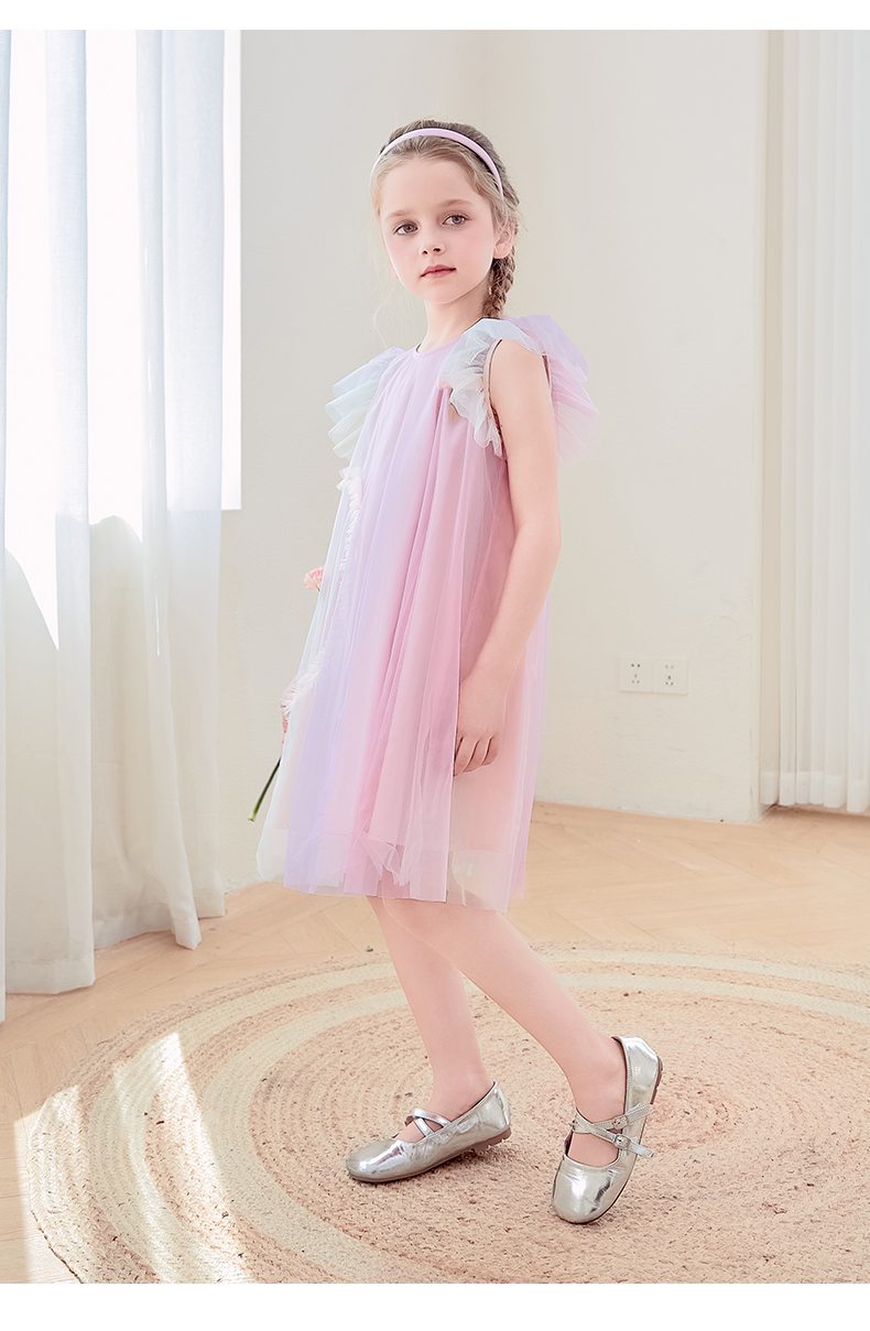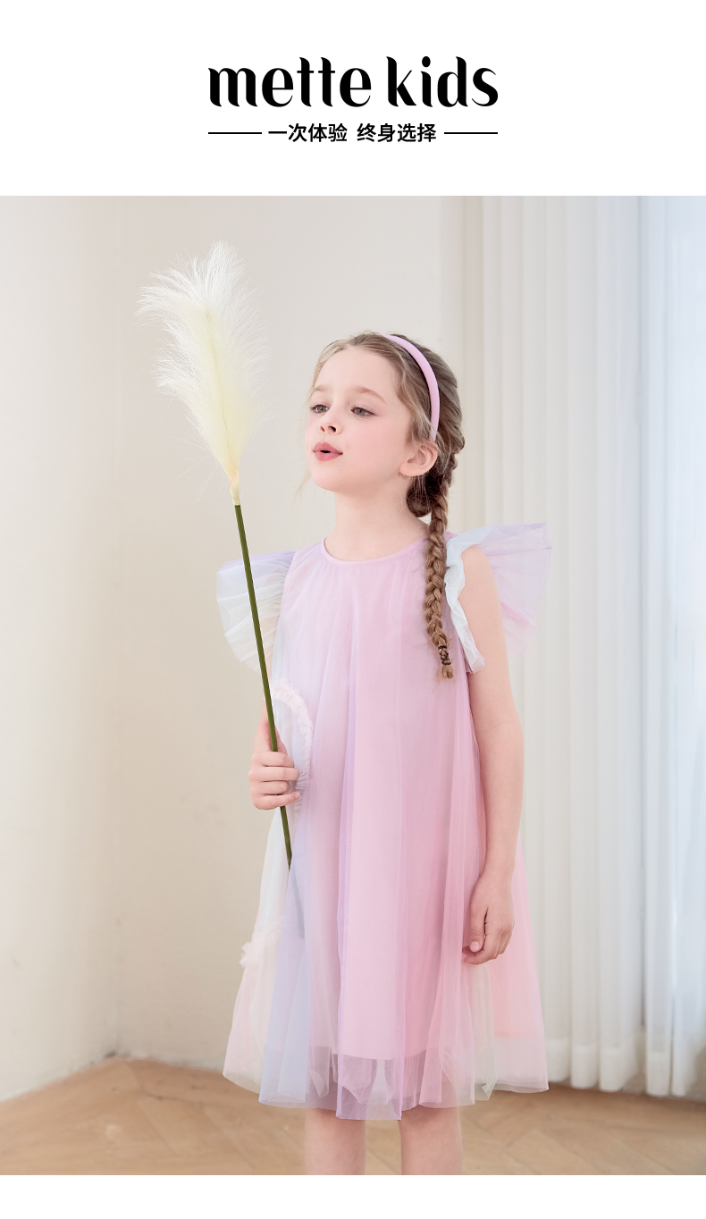 mettekids女童连衣裙2024夏新款儿童甜美网纱公主裙女孩彩色裙子