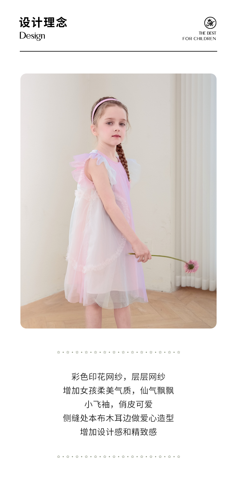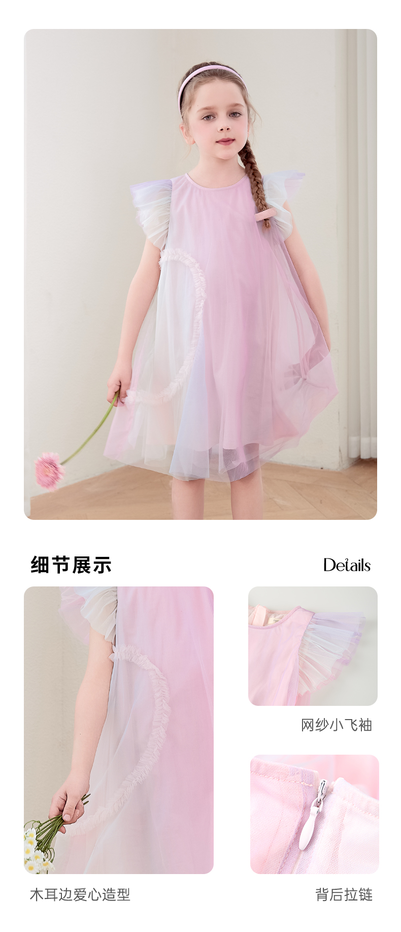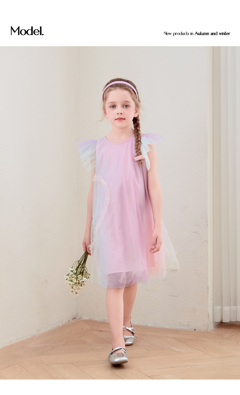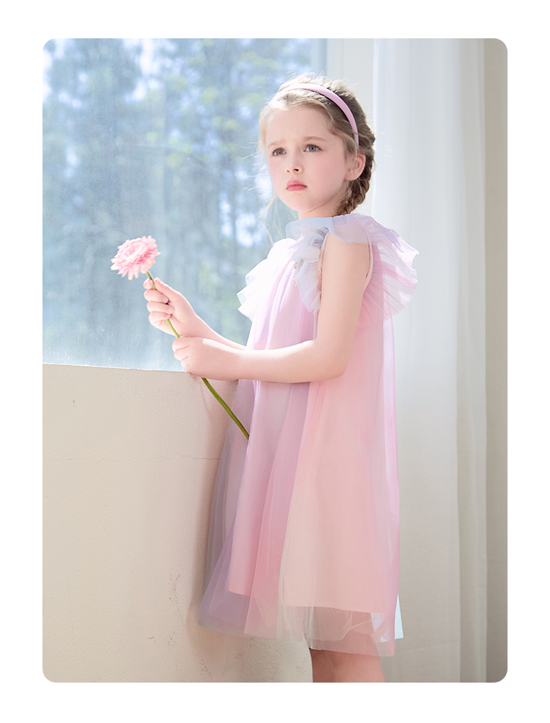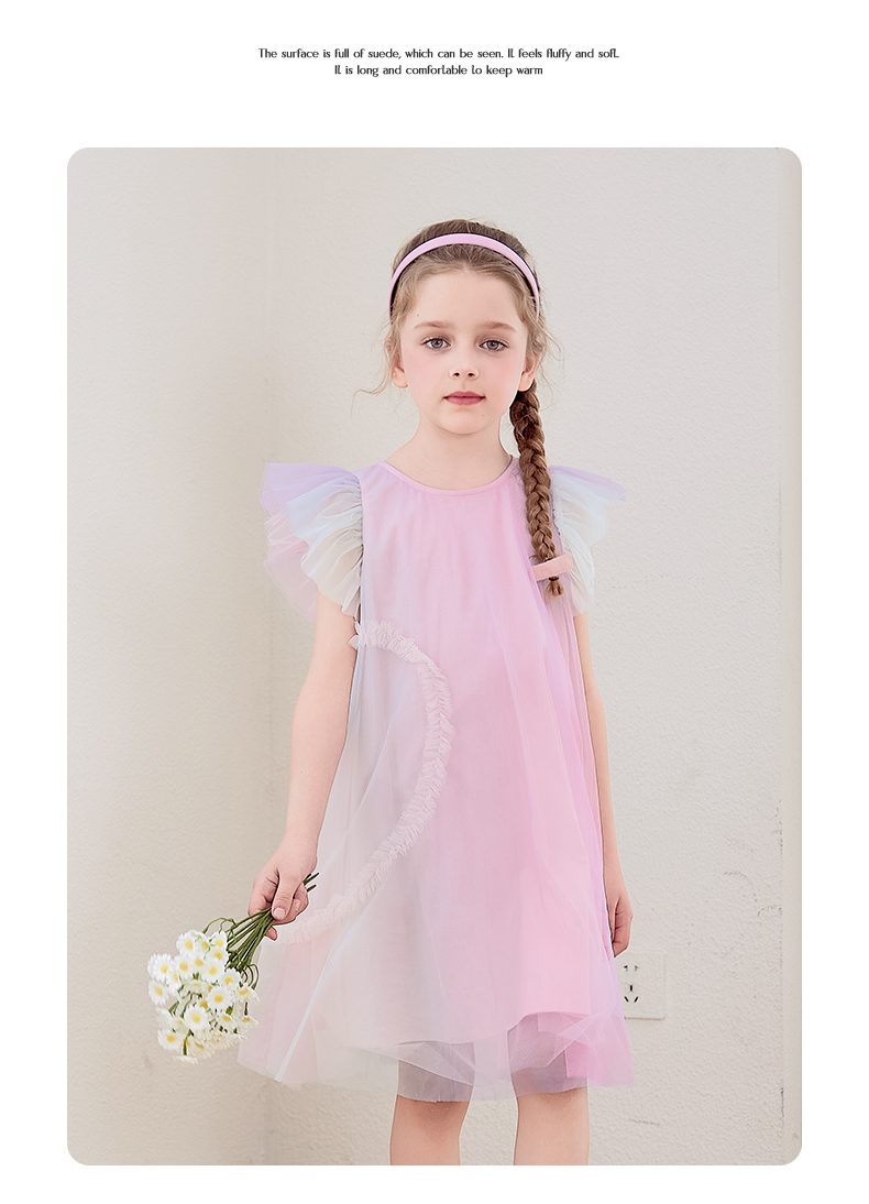 mettekids女童连衣裙2024夏新款儿童甜美网纱公主裙女孩彩色裙子