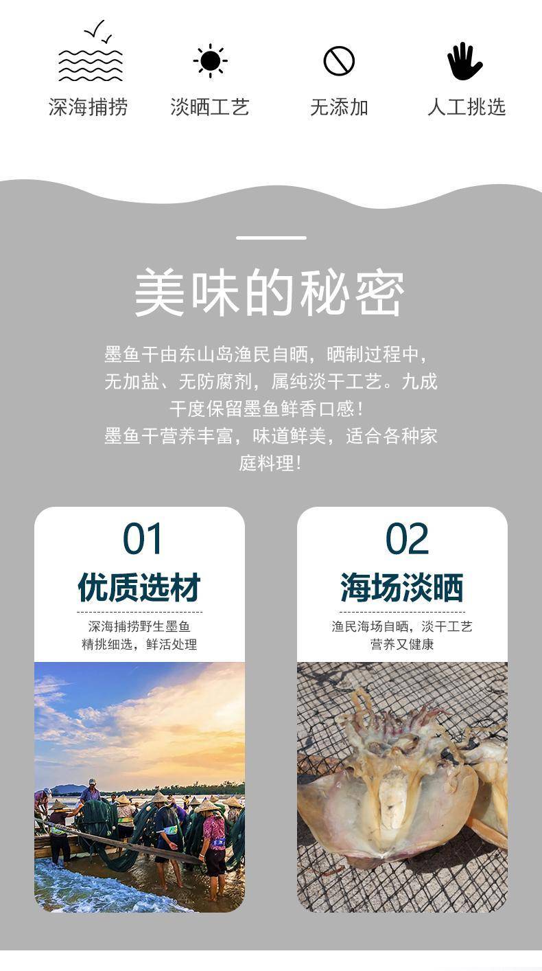 1. 选用优质野生墨鱼,海风自然晾干,无添加,无防腐剂,无漂色。