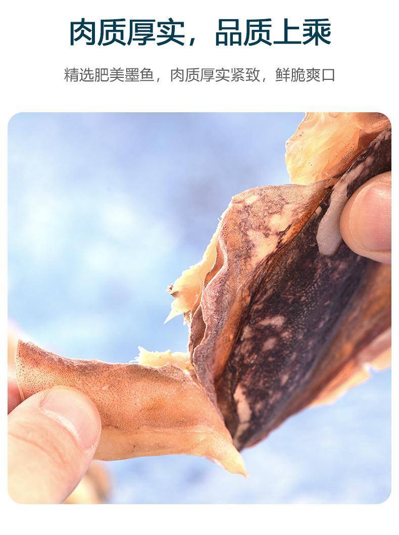 5.我们的墨鱼干都是每月新鲜晒制,韧性足、口感香醇、吃起来有嚼劲。