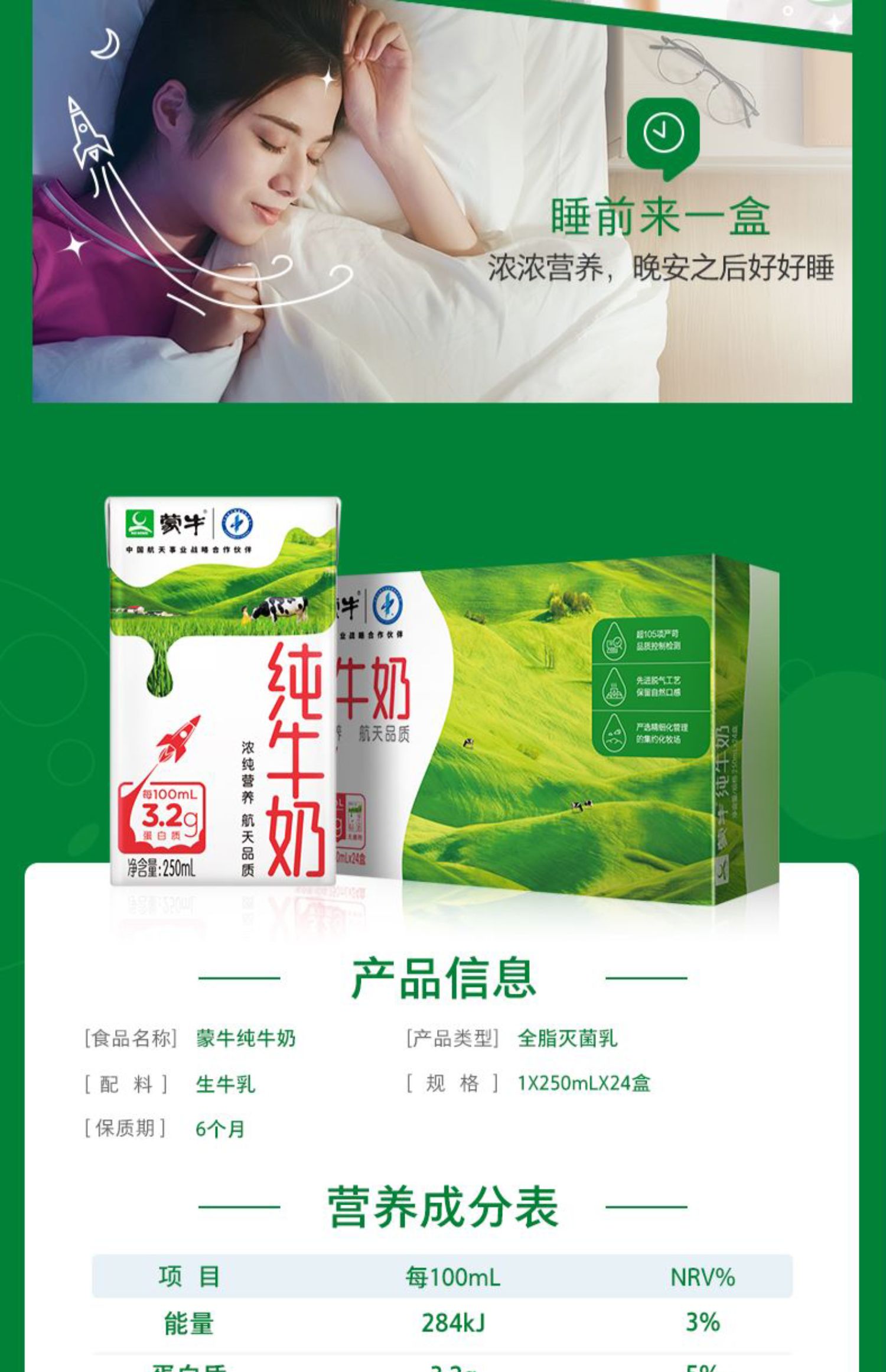 蒙牛纯牛奶利乐包250ml×24盒 10月日期