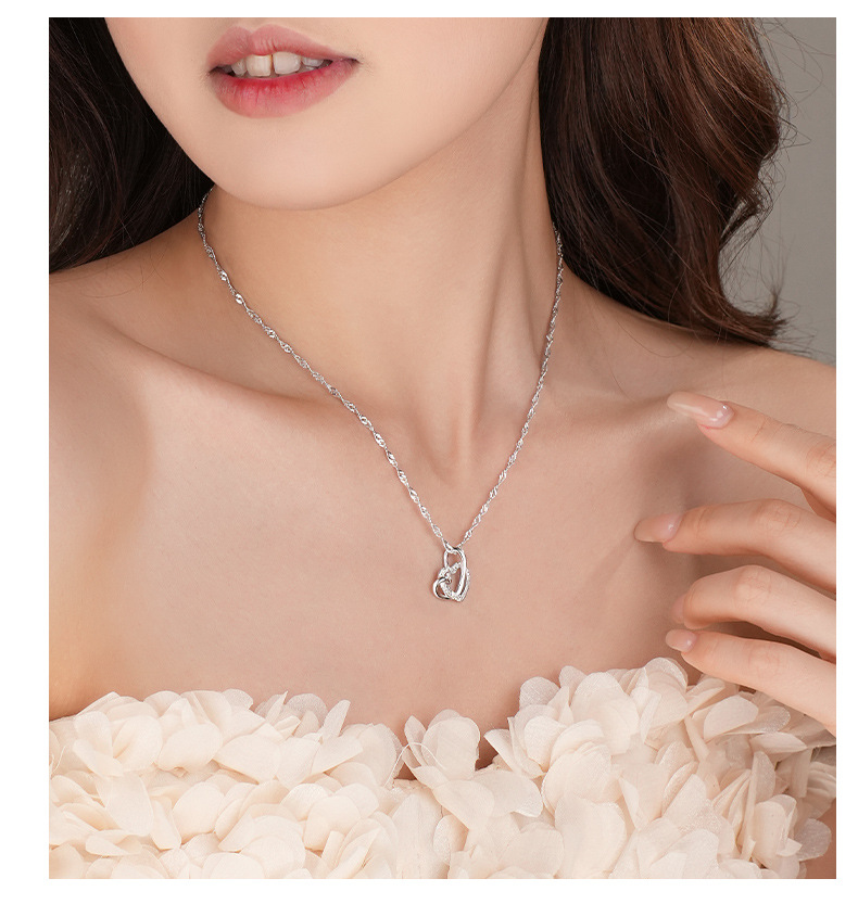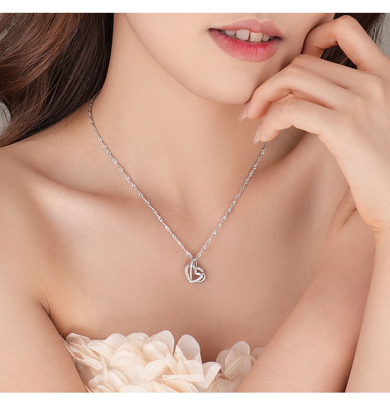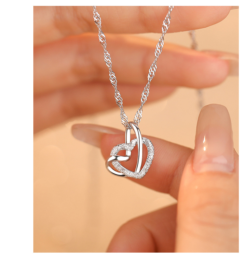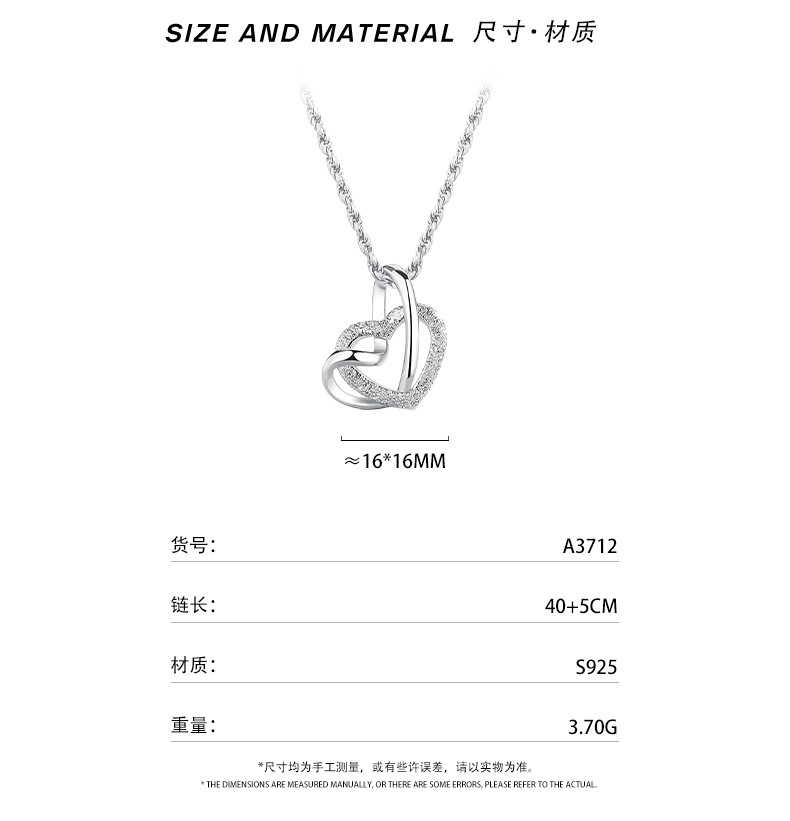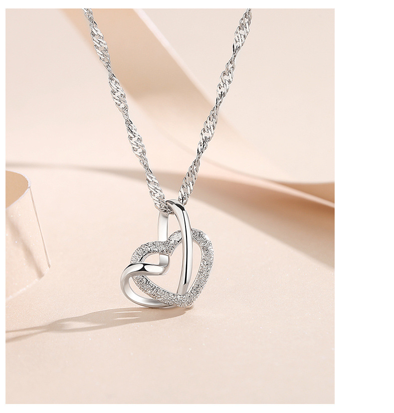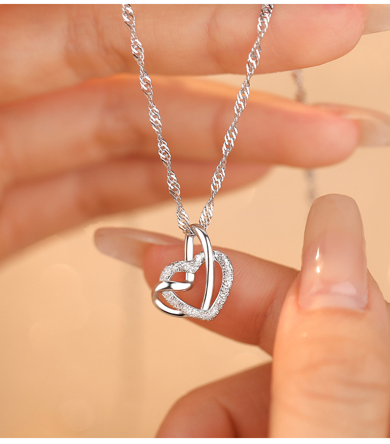 【心心相印】s925纯银双爱心镶锆石磨砂项链【DML-A3712】