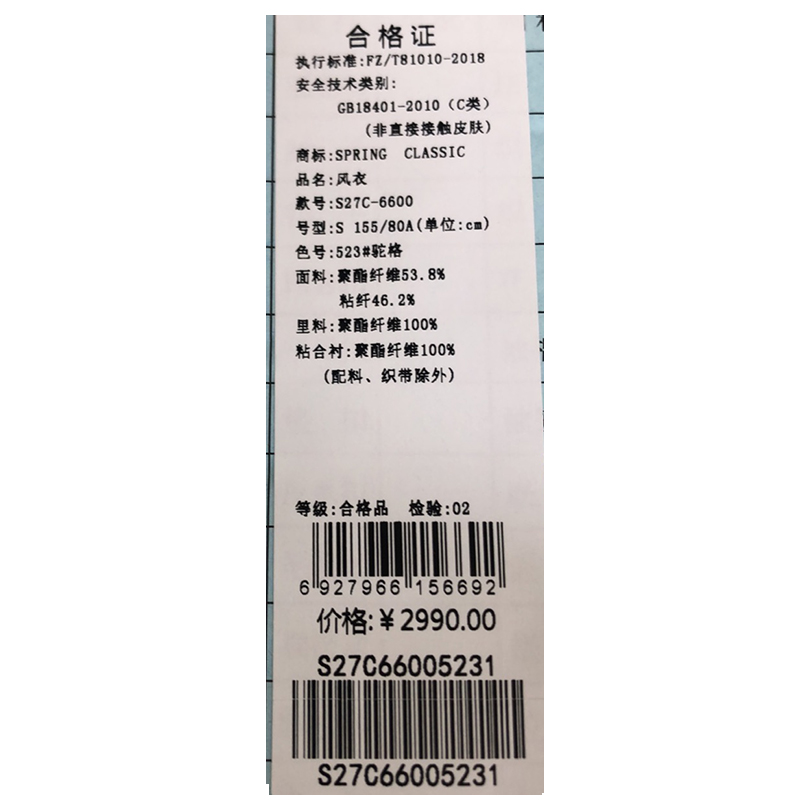 西贝伦风衣S27C6600
