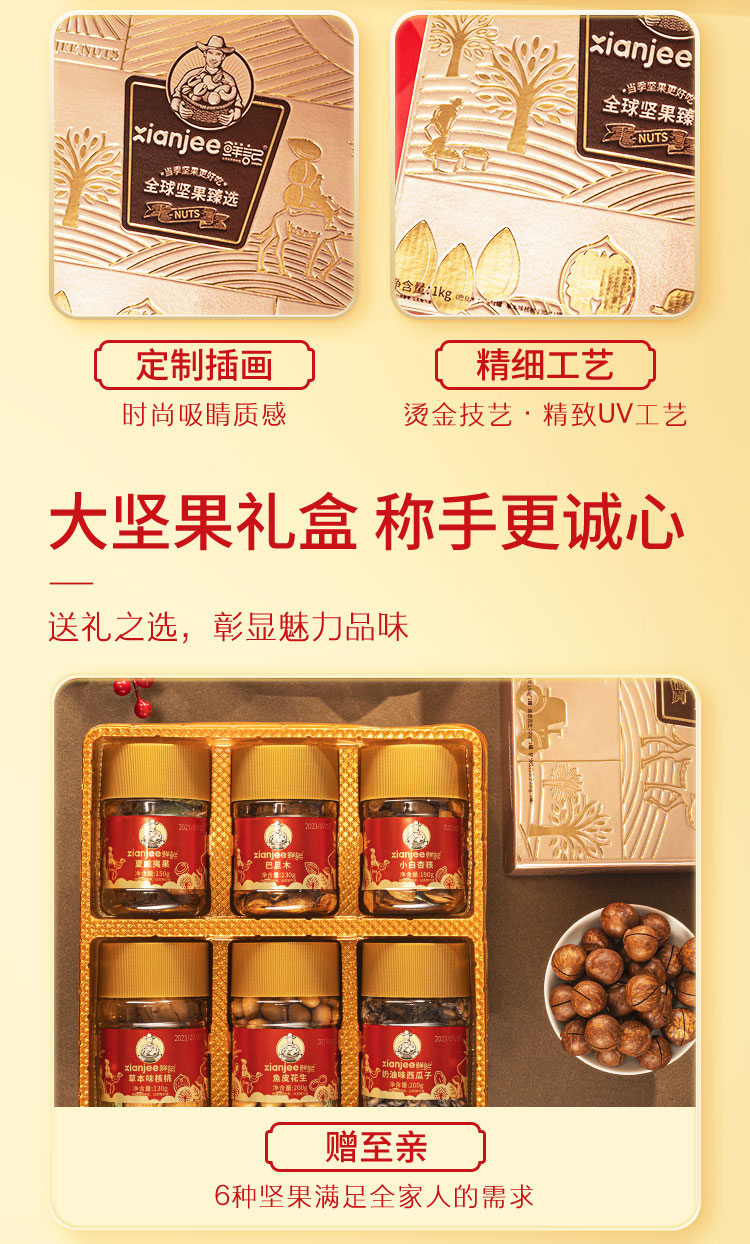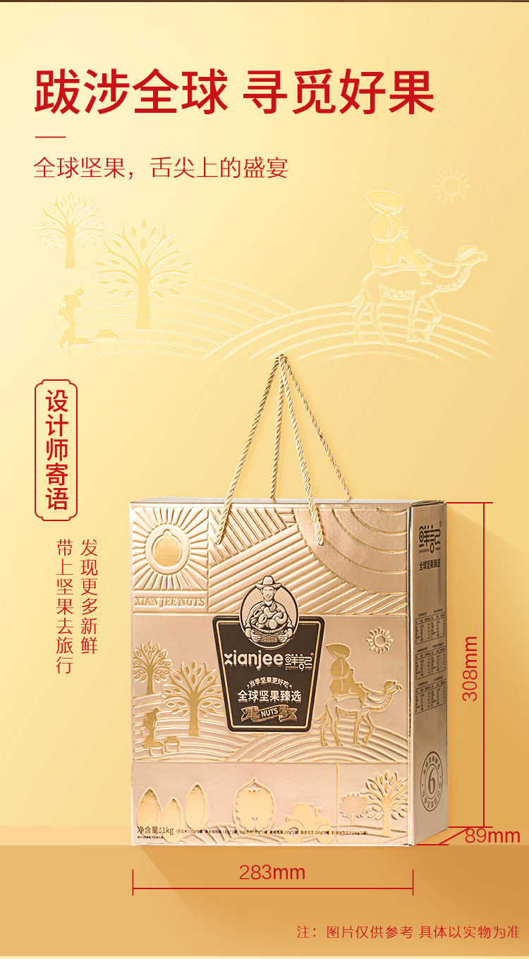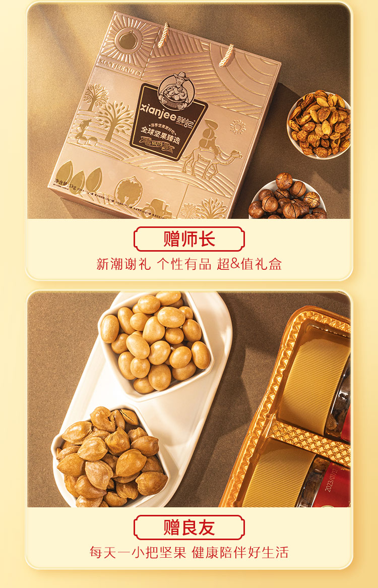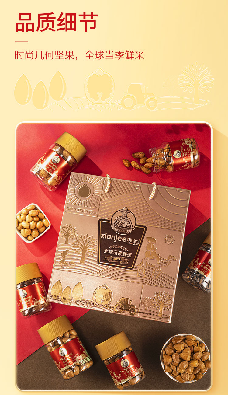 鲜记 全球坚果臻选1kg 匠心品质 以礼传情 精美礼盒装 送礼优选 48小时发货