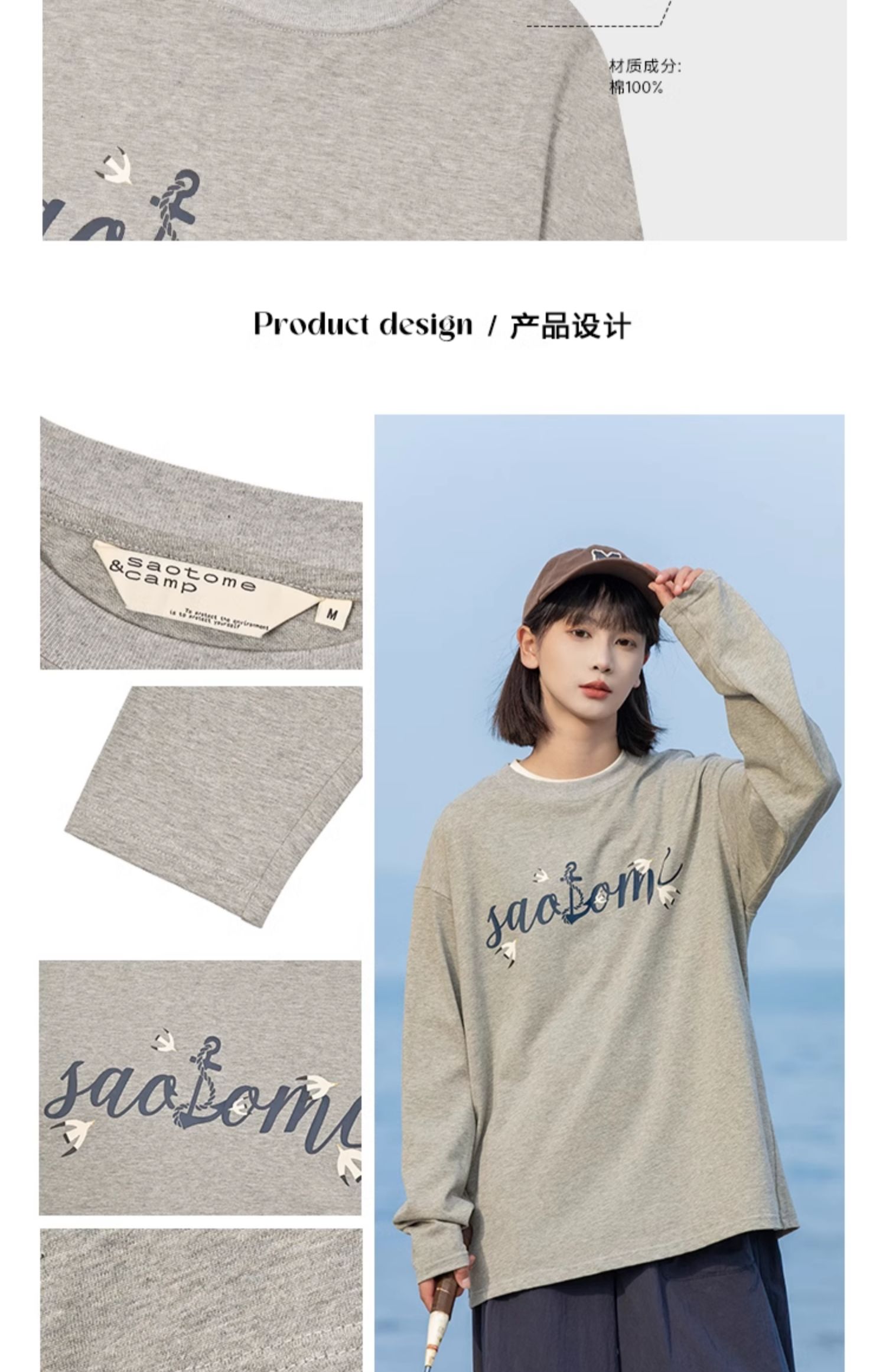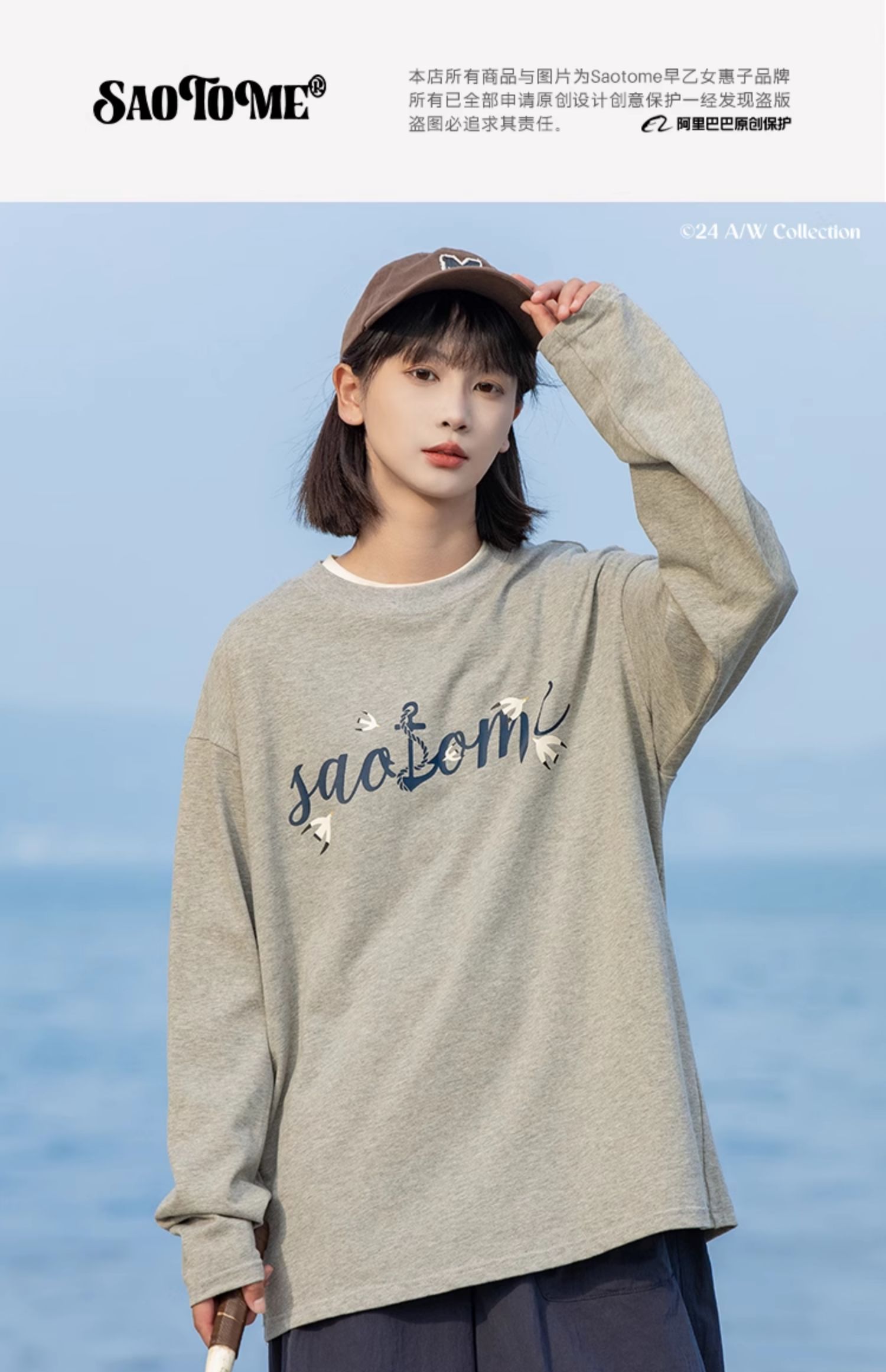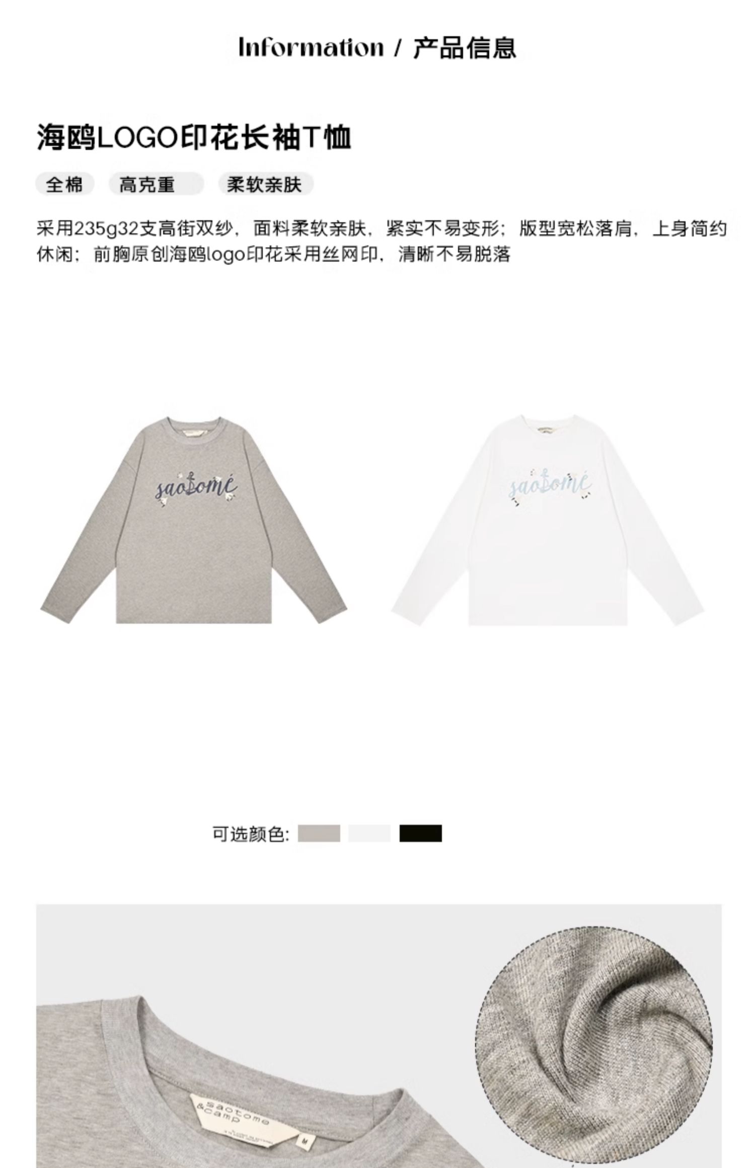 早乙女惠子saotome/STMCX243160/海鸥LOGO印花长袖T恤