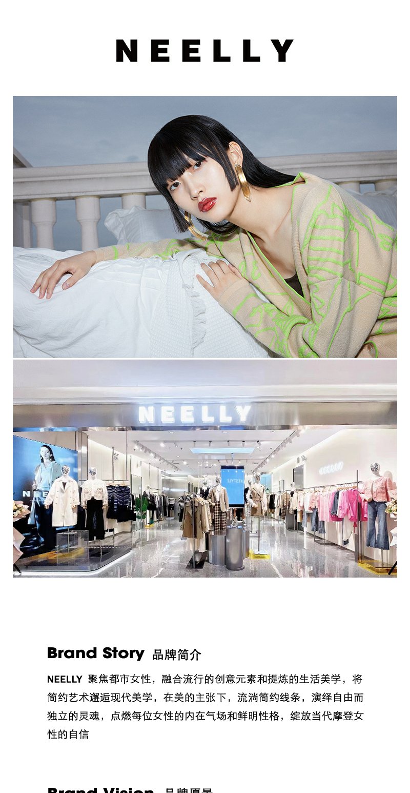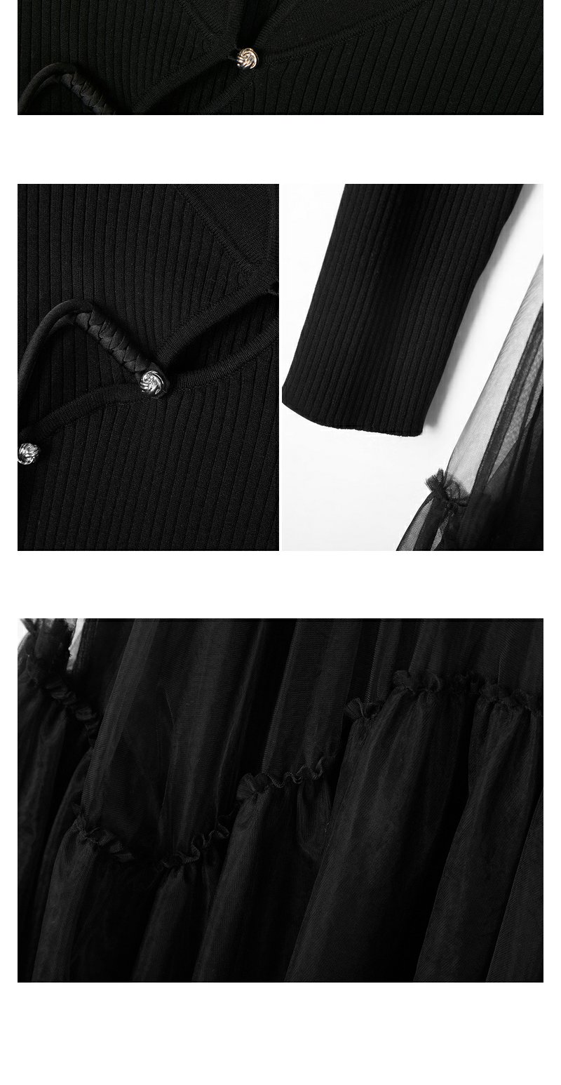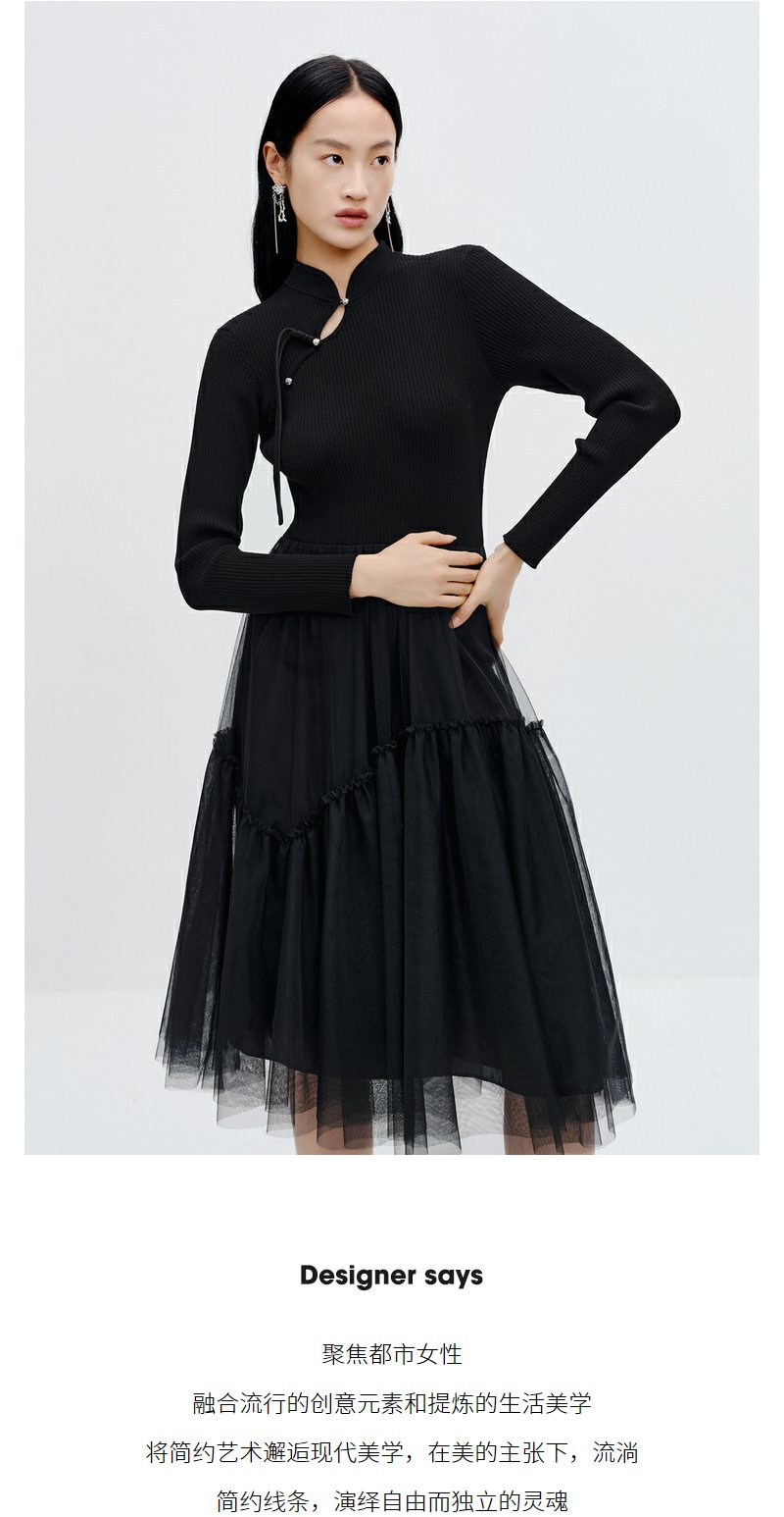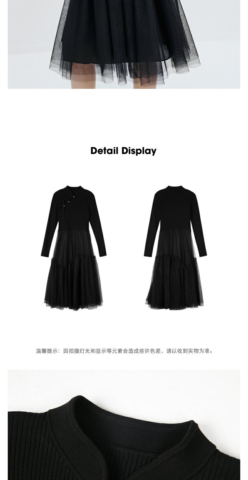 NEELLY纳俪商场同款针织网纱拼接连衣裙2023秋新款黑色新中式长裙N23083Y01146