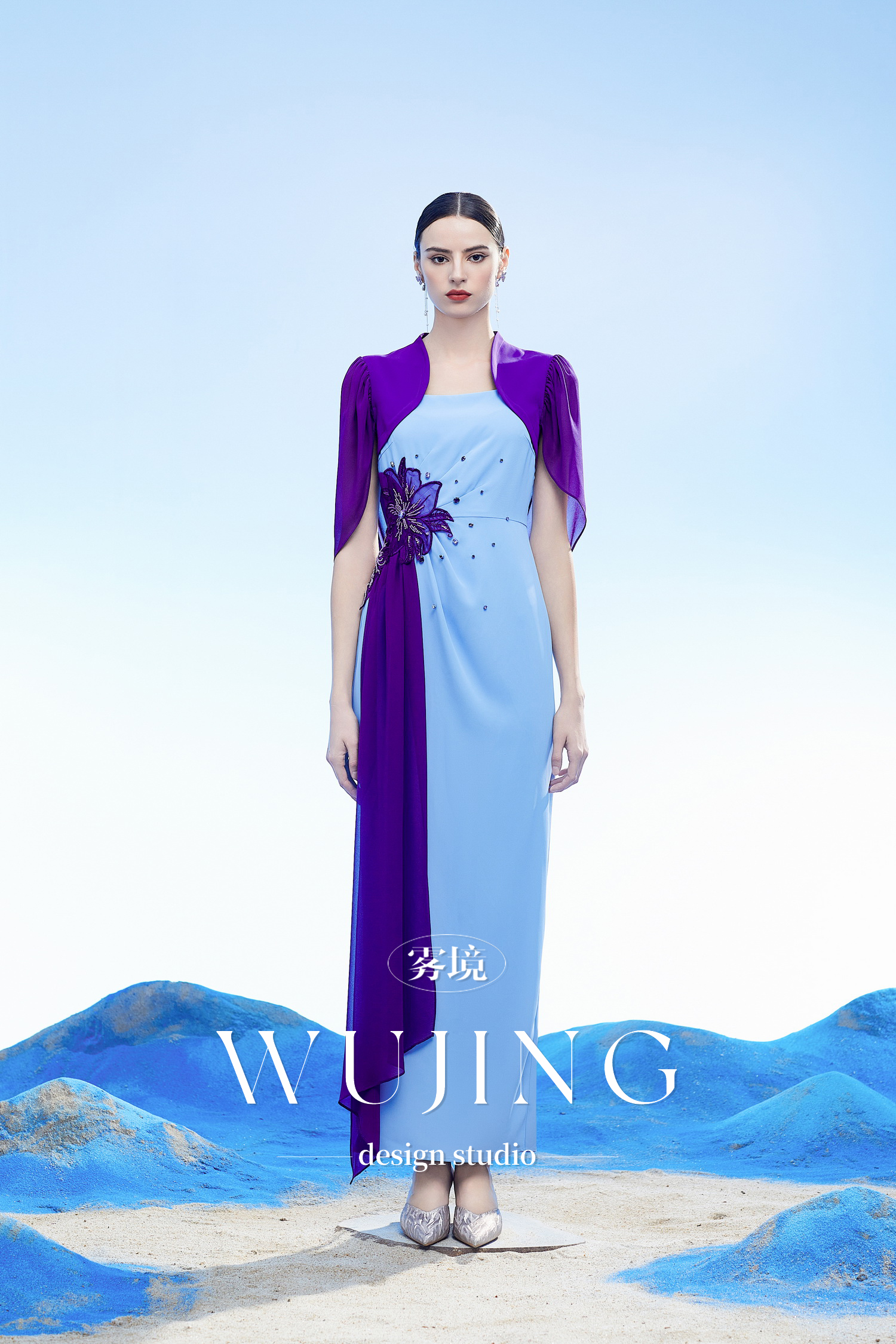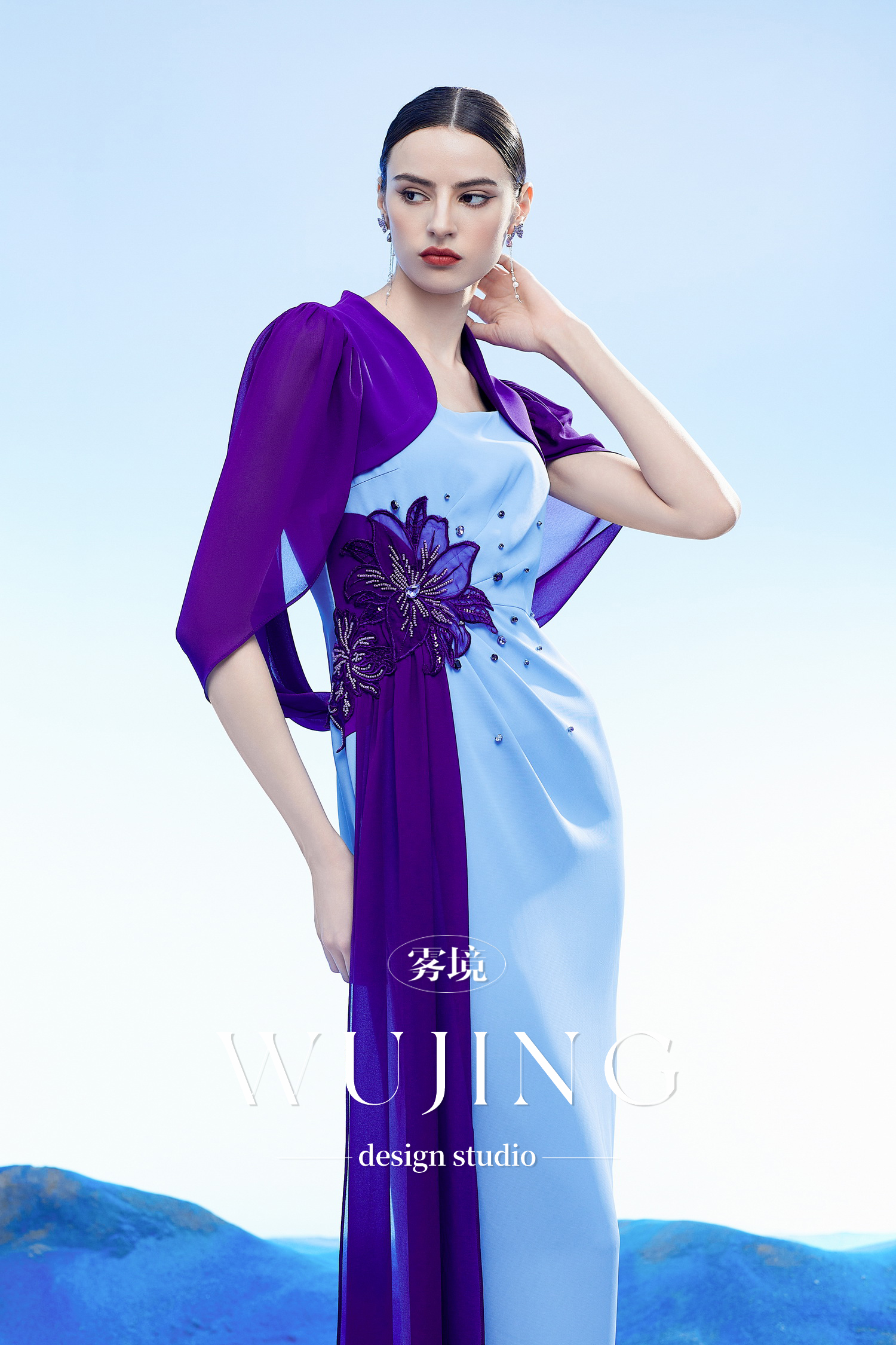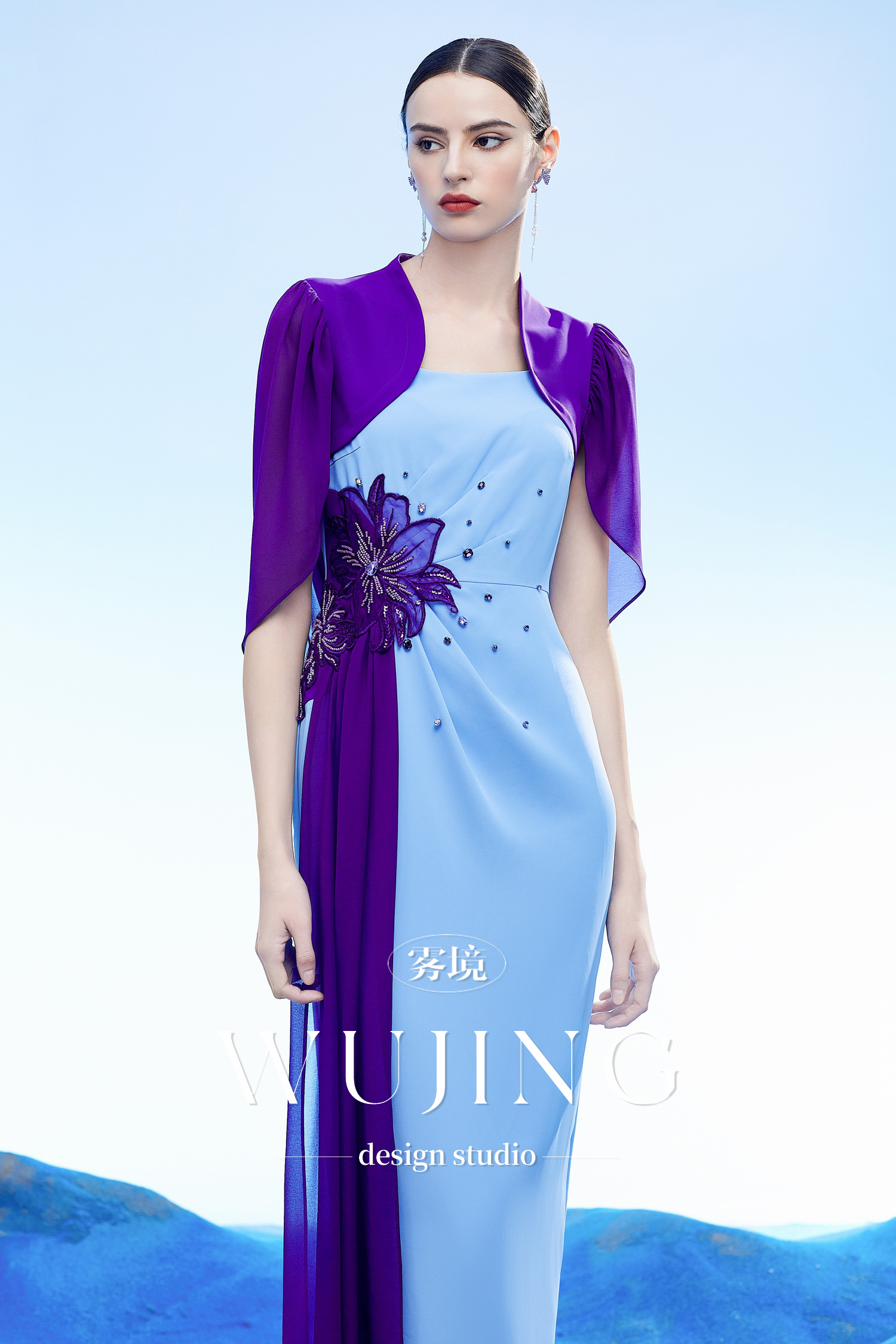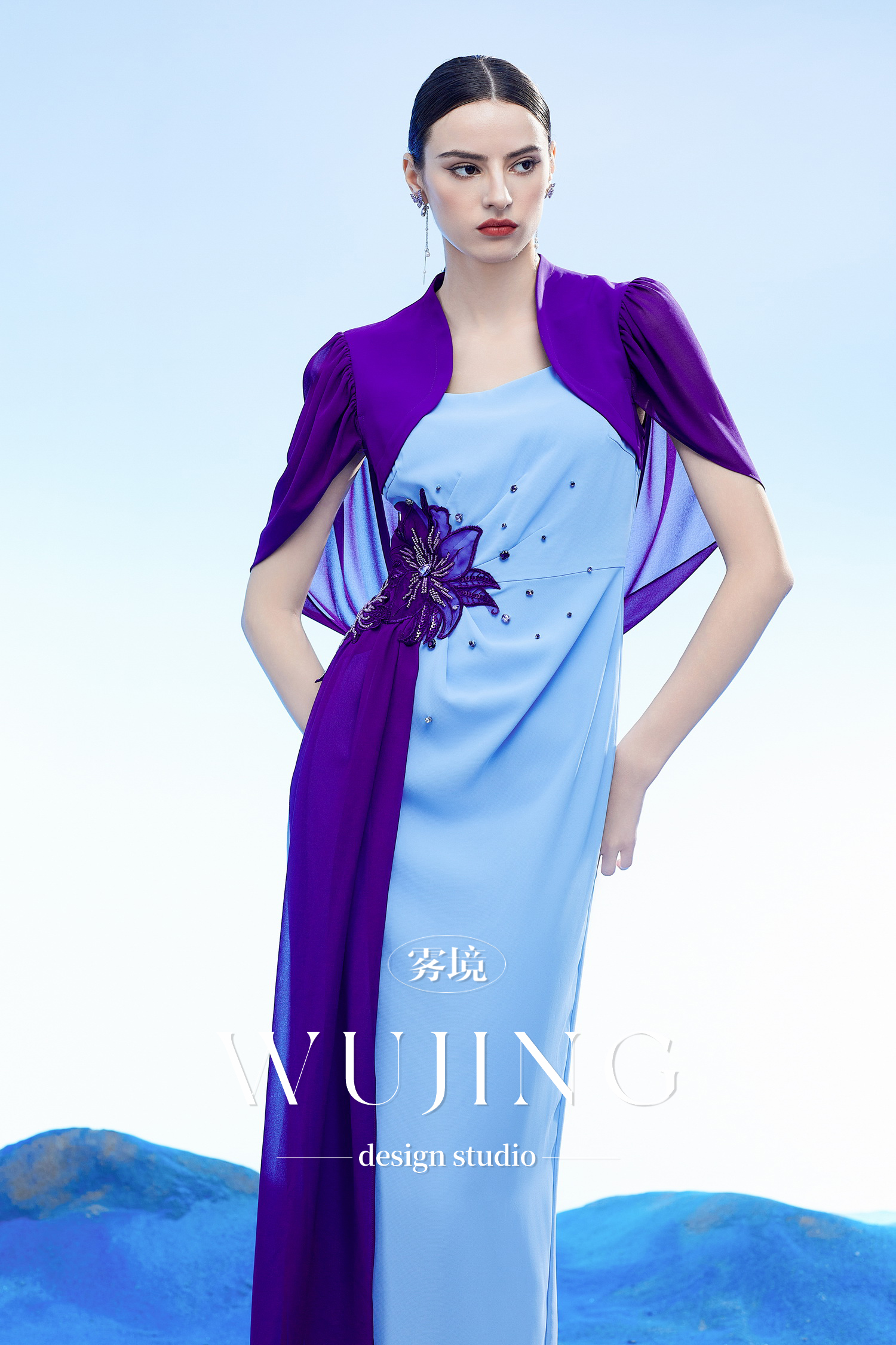 3204055 梦回云阙 韩国进口水晶乔其纱进口纹理蜂窝缎进口斜纹锦连衣裙 雾境
