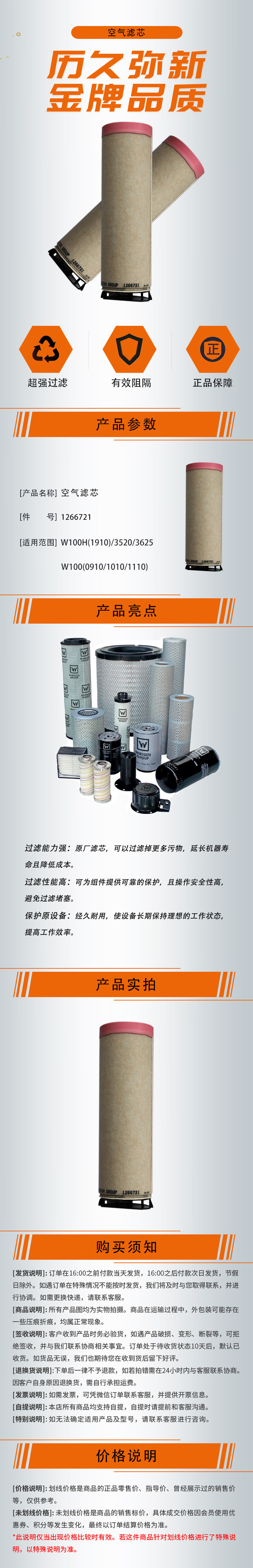 【空气滤芯1233721】 适用于W100H(1910)/3520/3625